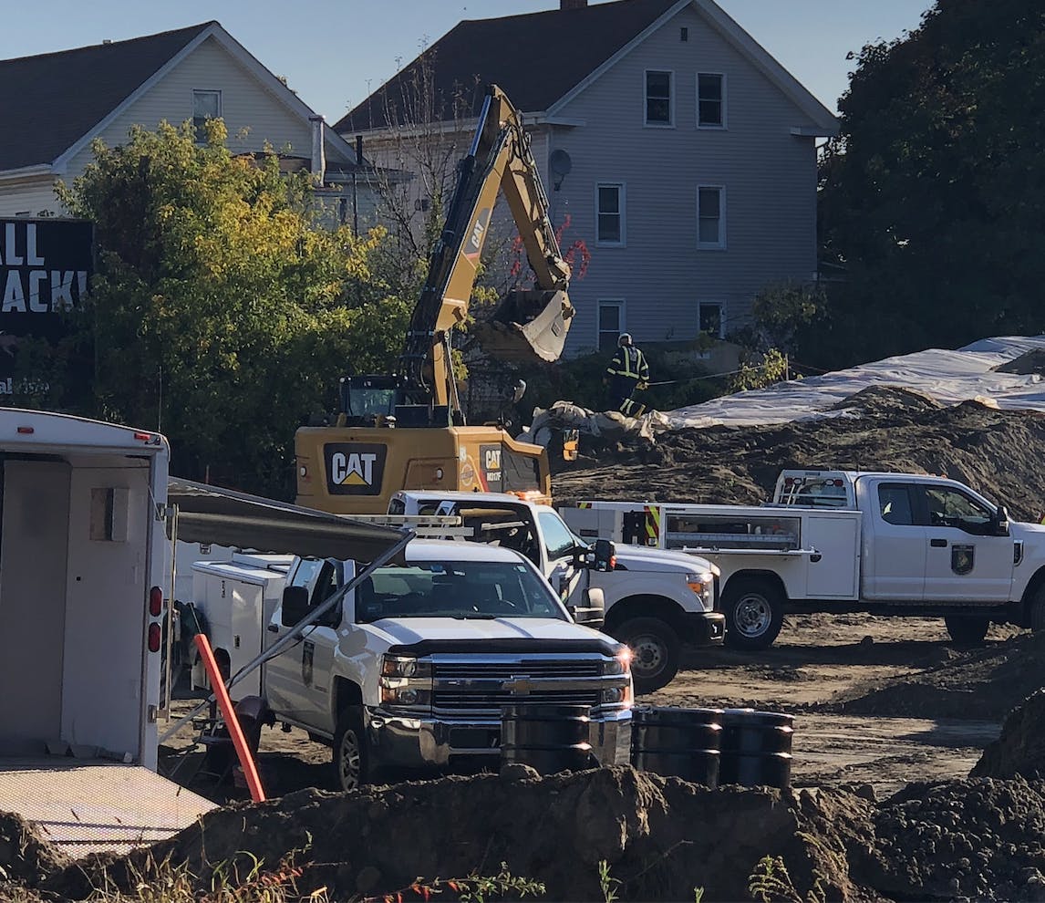 About a dozen investigators and Enforcement officers of DEM were onsite, with a backhoe and investigative trailer on location.