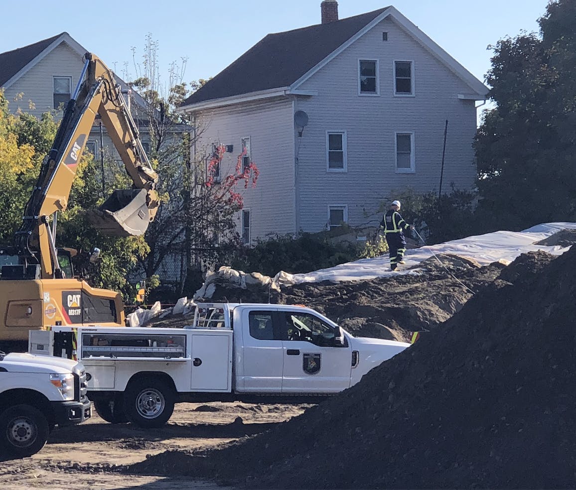 "Today teams from DEM’s Office of Emergency Response and Division of Law Enforcement are sampling soil at multiple locations at the 6/10 interchange site as part of an ongoing investigation," said Michael Healey of RIDEM.