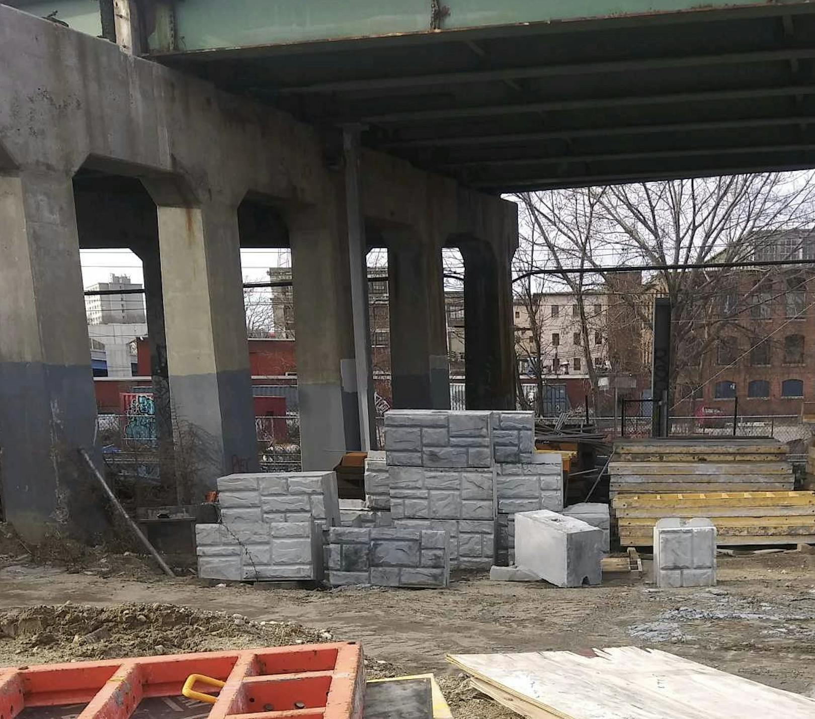 The concrete blocks are being used in a new retaining wall being installed on the privately owned Weymouth property.