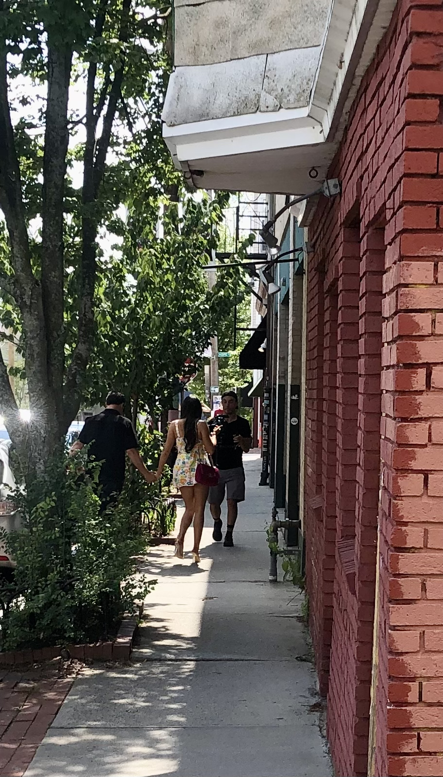 In the highly choreographed scene, the couple can be seen driving on Wickenden Street in Fox Point a pink Jeep before pulling over to walk into the Diamond Bar.