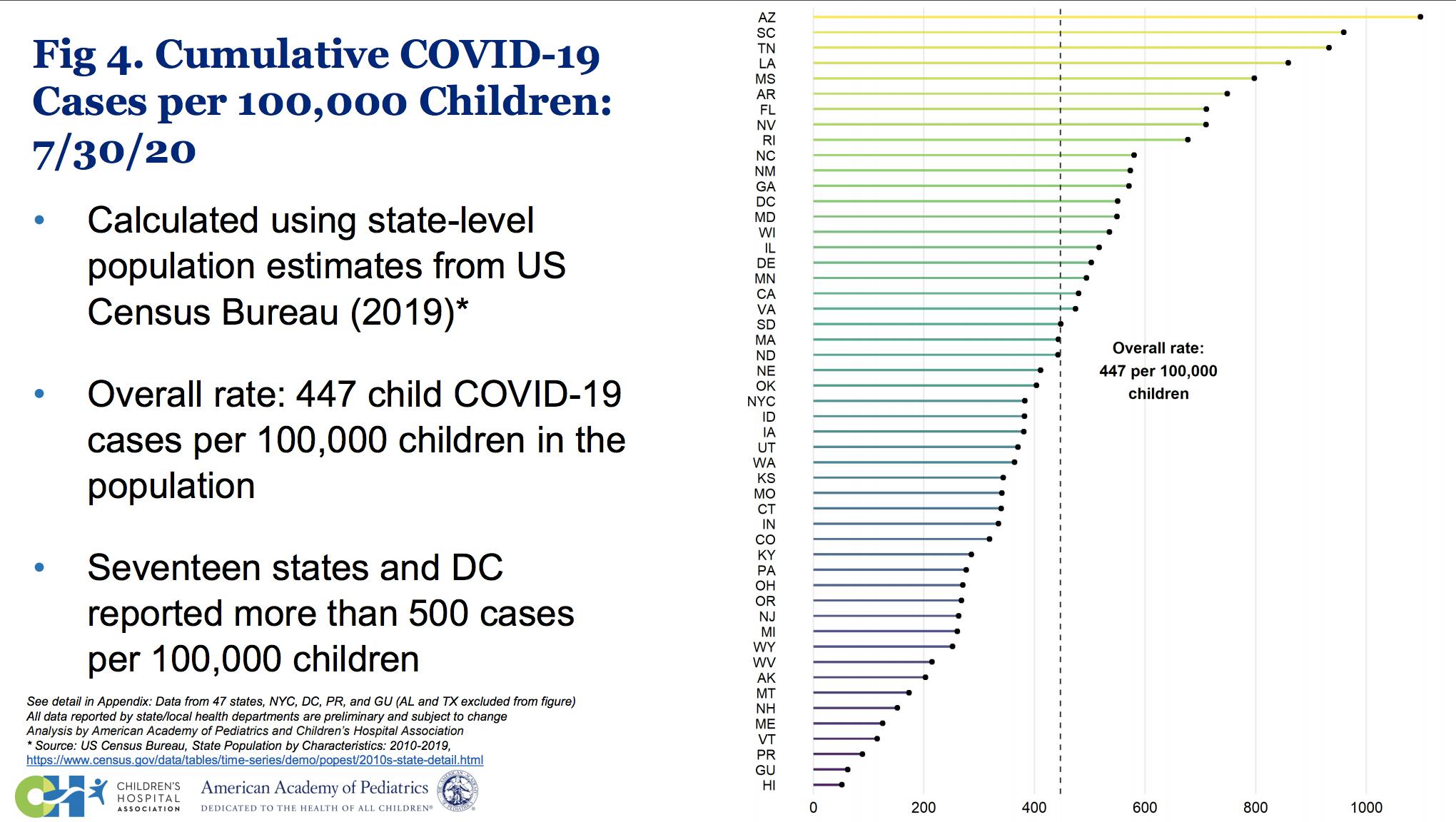 Rhode Island ranks 9th overall for cases per 100,00 for children. Fine warns that the data in the AAP study reports the definition of children that varies significantly by state.
