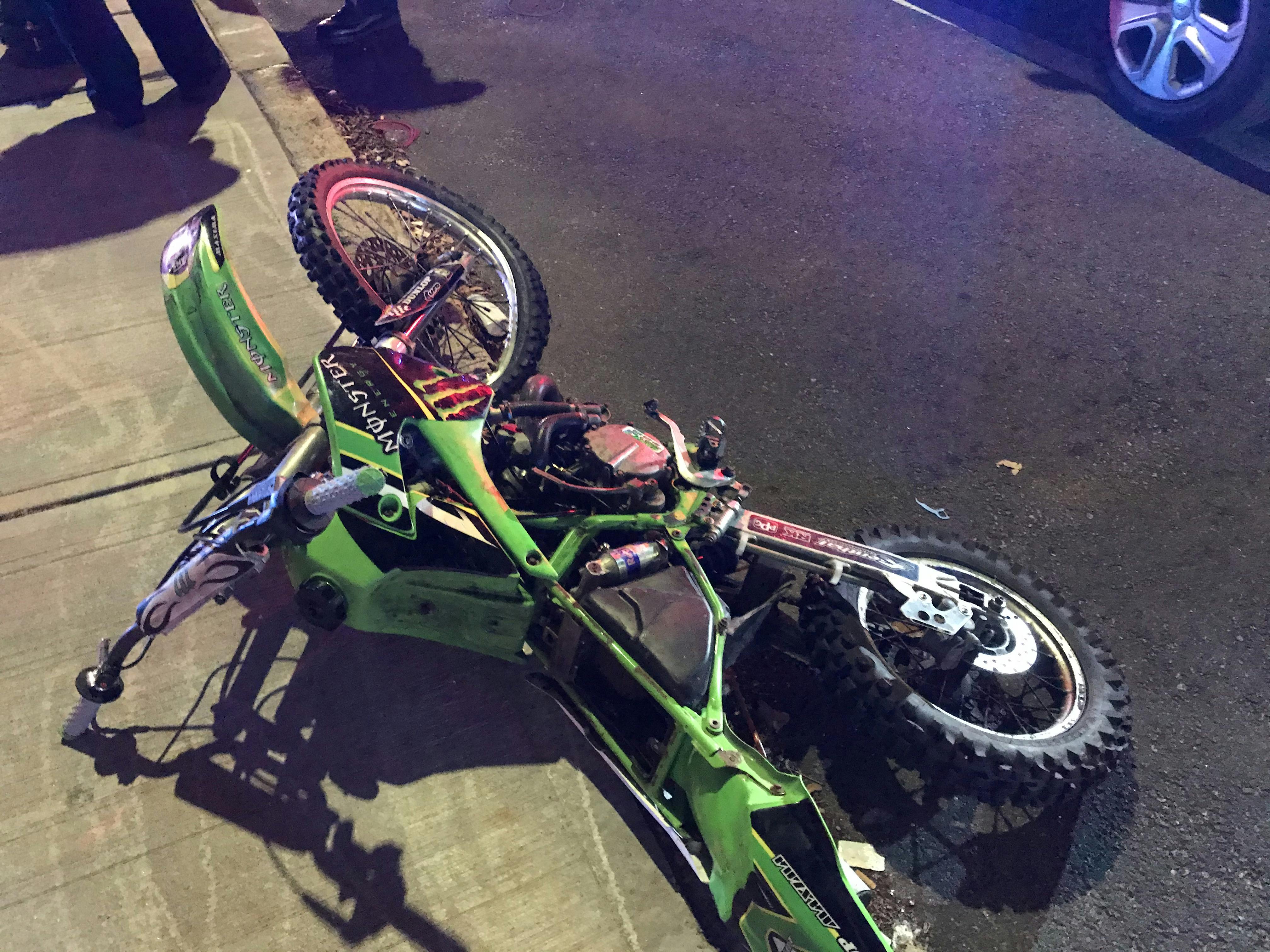 Earlier in the night on Friday in Providence, GoLocal photographer Richard McCaffrey was onsite minutes after an off-road motorbike hit a vehicle on Smith Street