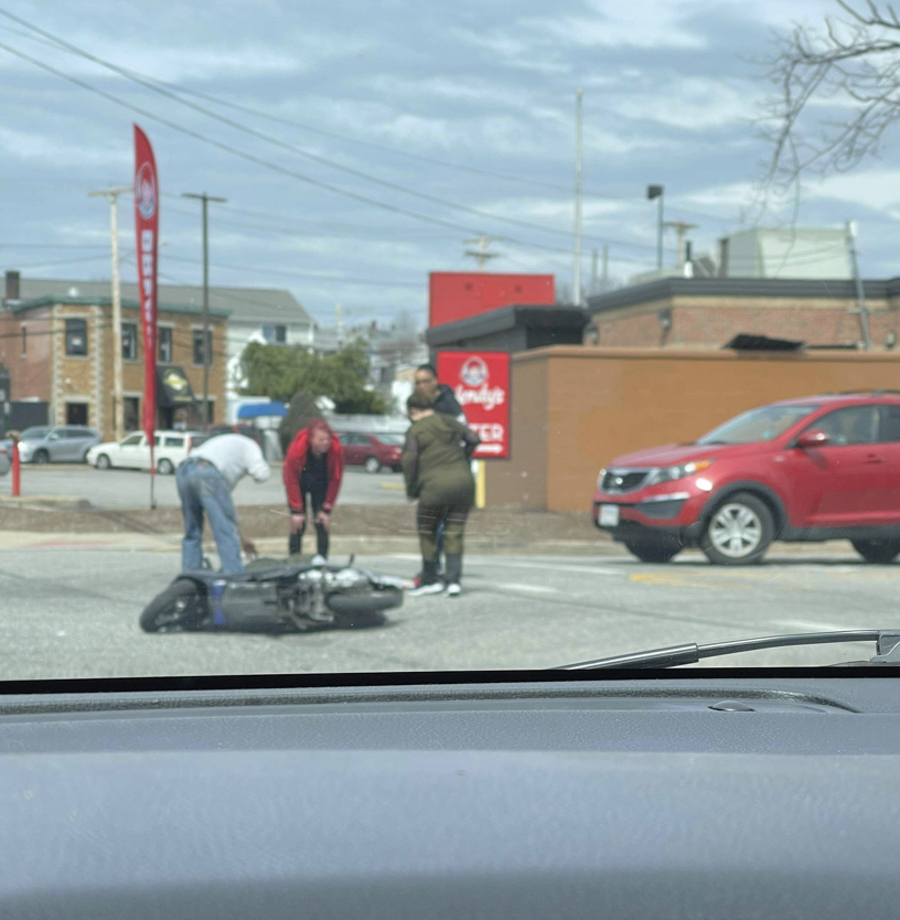 The accident on Monday. Photo: Anthony Sionni A female moped operator is facing multiple charges after a crash with a car on Charles Street in Providence — including driving on a sidewalk.
