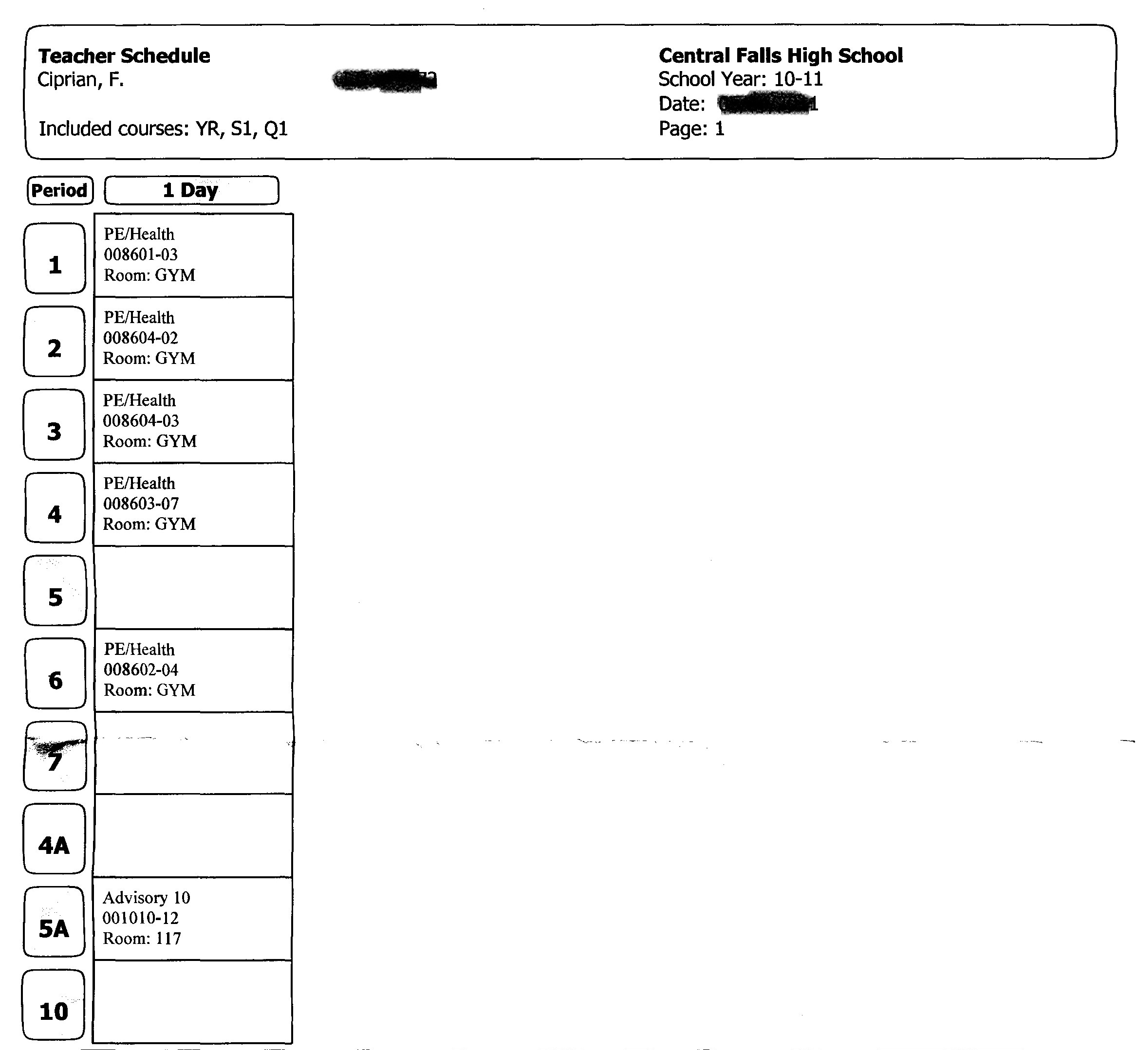 A document obtained by GoLocalProv shows that Ciprian actually was scheduled to teach five classes and oversee an advisory on a daily basis—more typical for a long-term substitute than a day-to-day substitute. He is even identified as a “teacher” on the schedule. (See below for a copy of the schedule.)