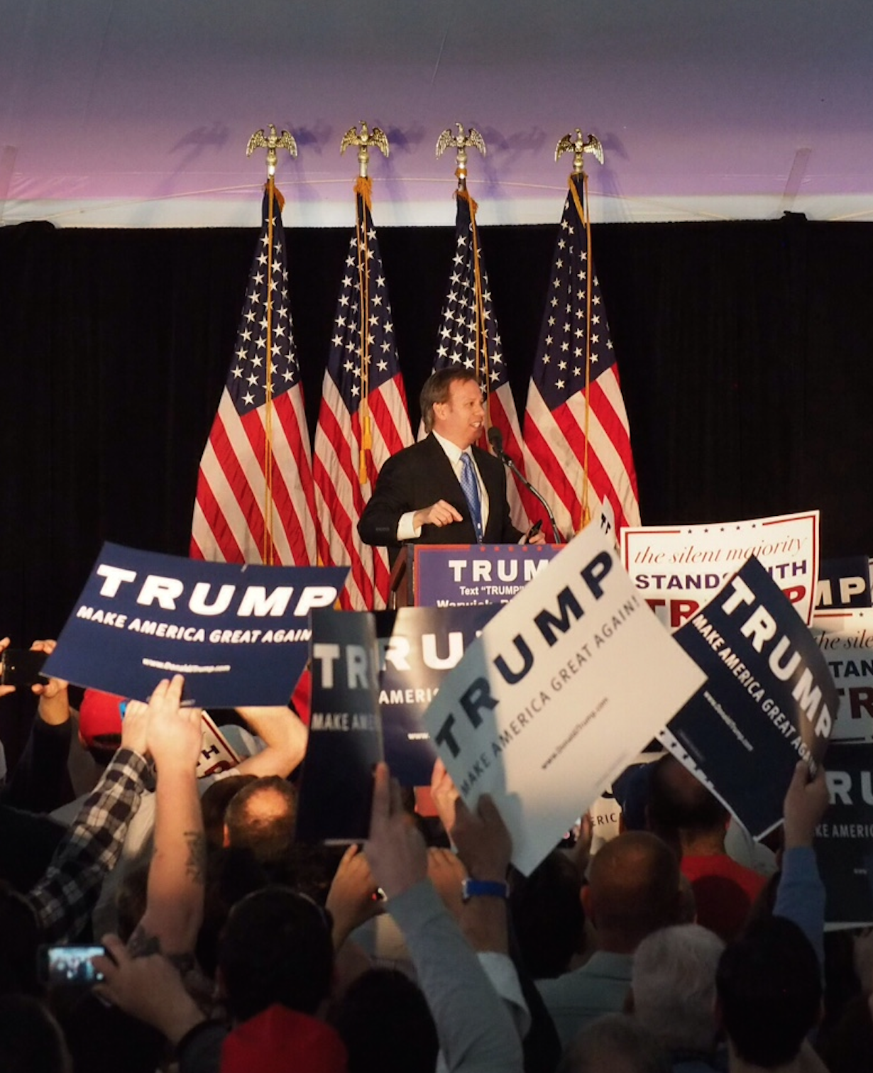 DePetro served as MC at the Trump rally in Warwick this springPreviously, Trump had called for a ban on Muslims coming into America, but during his speech at the GOP Convention he recast the ban to be limited to those wanting to enter the country from countries where he considers terrorism to be unchecked.