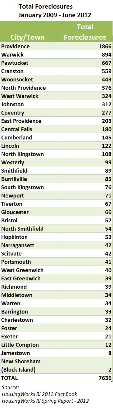 But Providence isn’t the only community that has suffered from hundreds of foreclosures in recent years. Warwick, Pawtucket, Cranston and Woonsocket all saw at least 443 homes lost since the beginning of 2009.