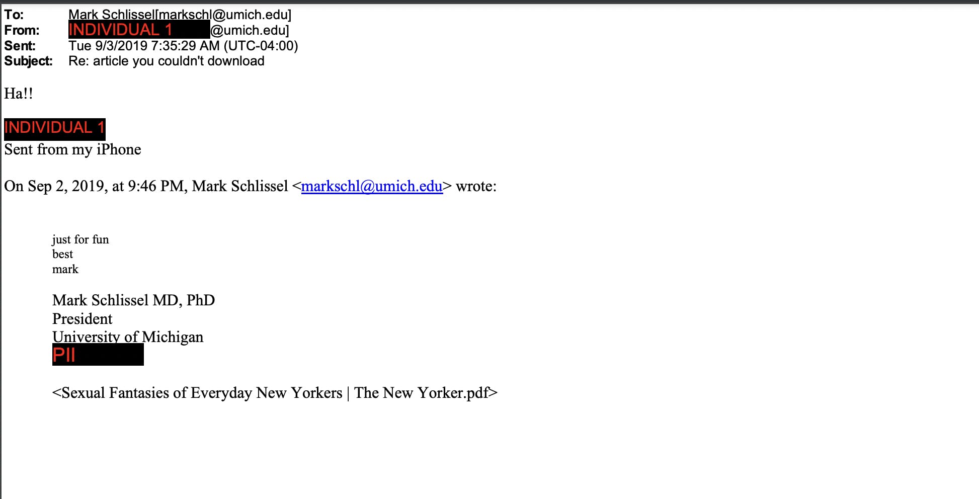 Michigan released more than 100 pages of emails sent by President Mark S. Schlissel, M.D., Ph.D. to a staffer.