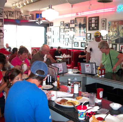 Photos of Tommy's Diner, which is thirty minutes to the south of the Strategy Group in Ohio, show the same red booths, chairs, photos on the wall, and art-deco chandeliers as seen in the background of the latest Fung ad.