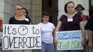 Carcieri is in his last year in office—but Heroux said she hoped the rally sent a message to the next governor. She said it wasn’t “good government” to say you don’t understand something and use that as the reason for vetoing it. She said groups involved in the issue would press for the bill to be re-introduced in the next session.