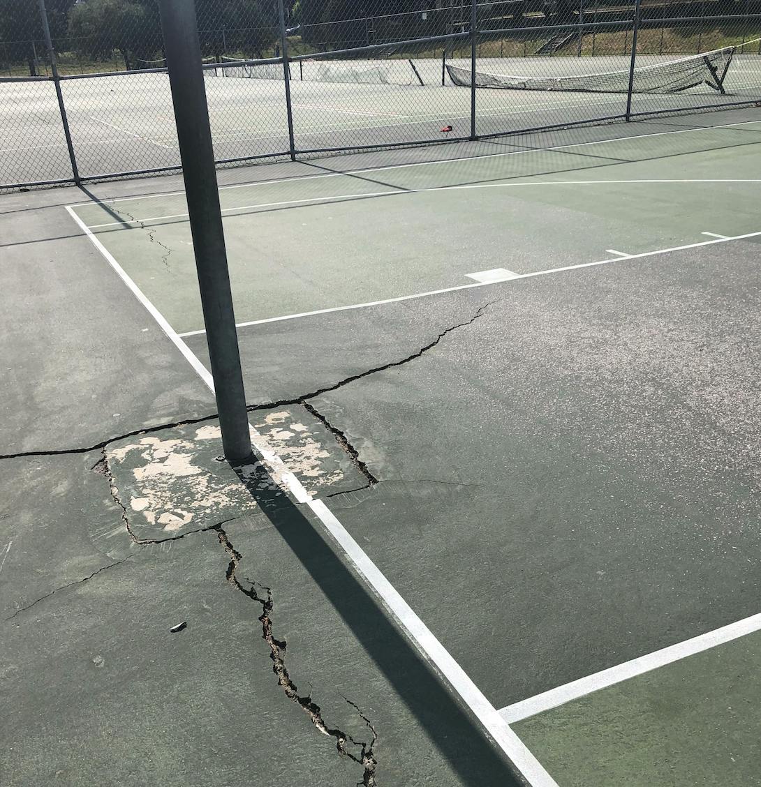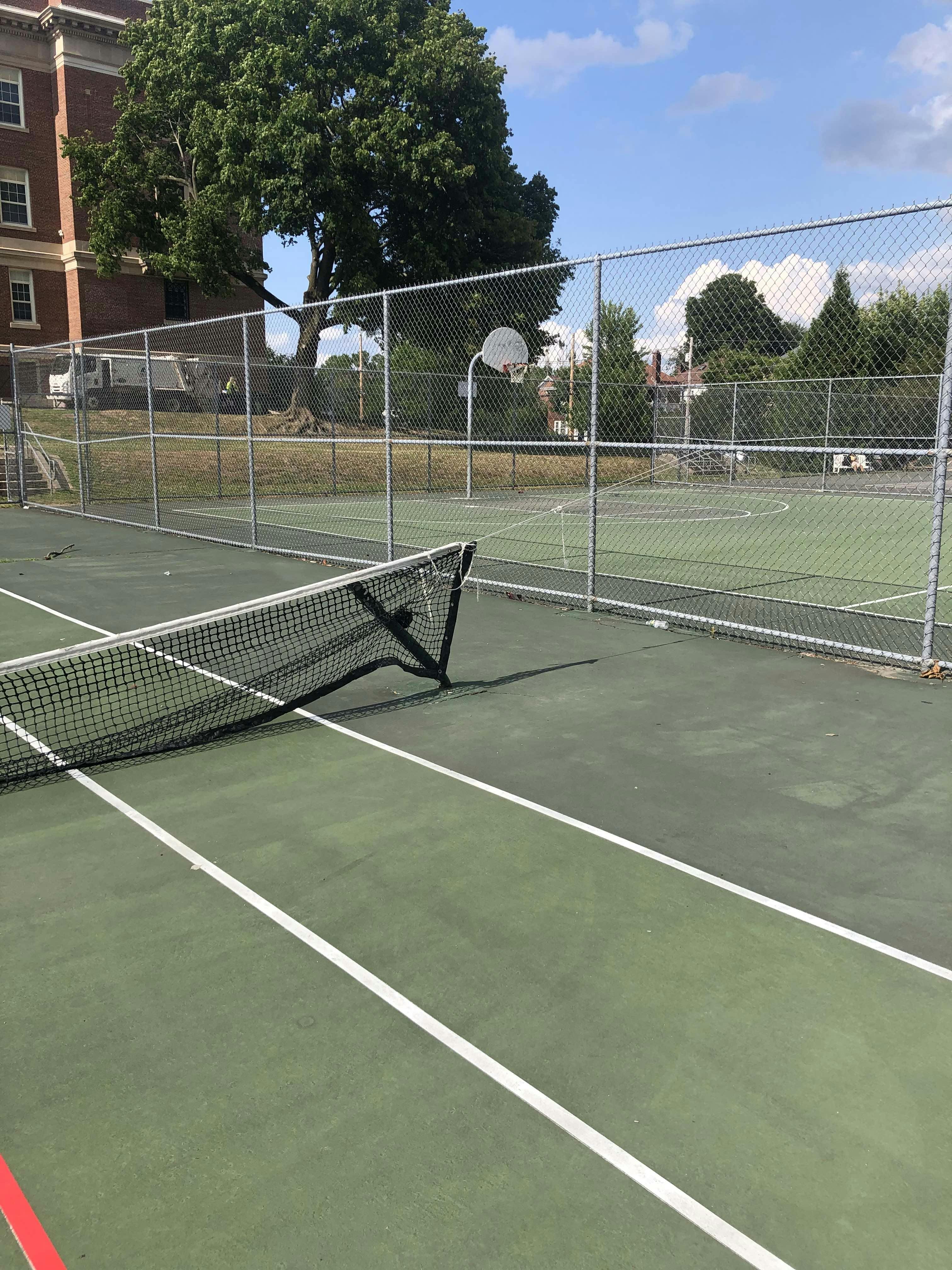 Today, the five tennis courts and one basketball courts are in disrepair.