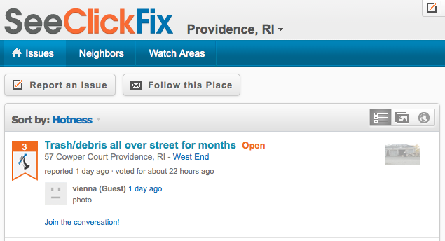 GoLocalProv.com will serve as host to the SeeClickFix platform in Rhode Island, a tool that enables the public to report neighborhood issues.