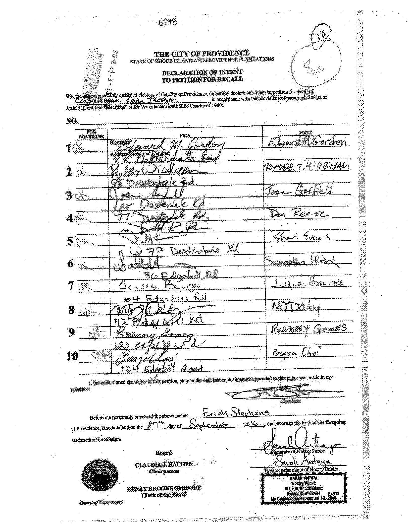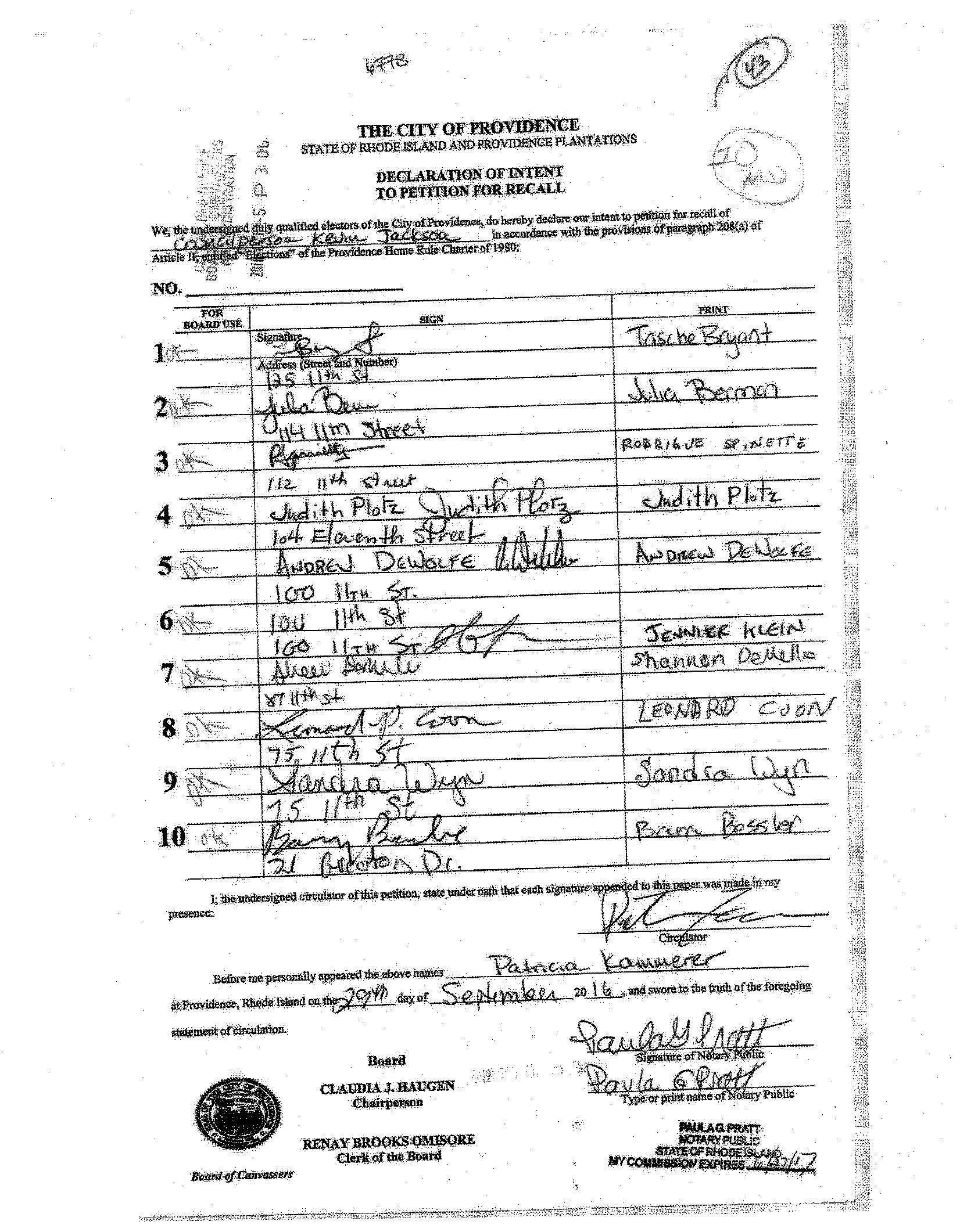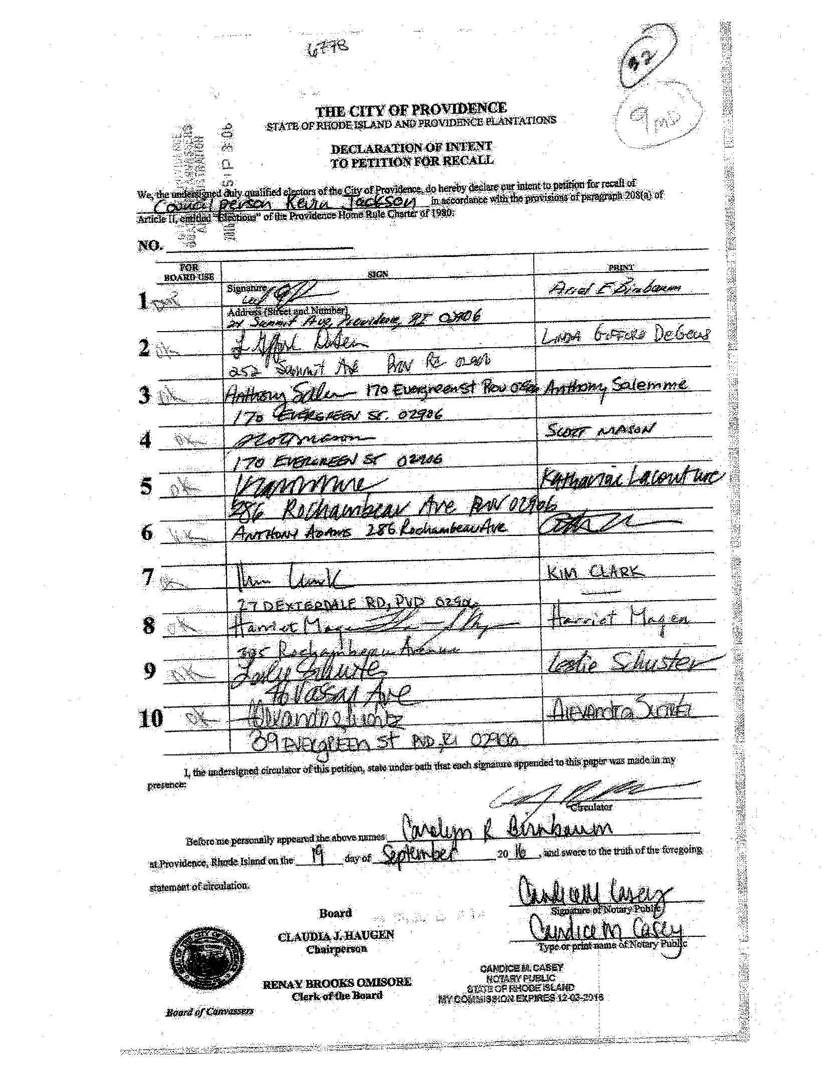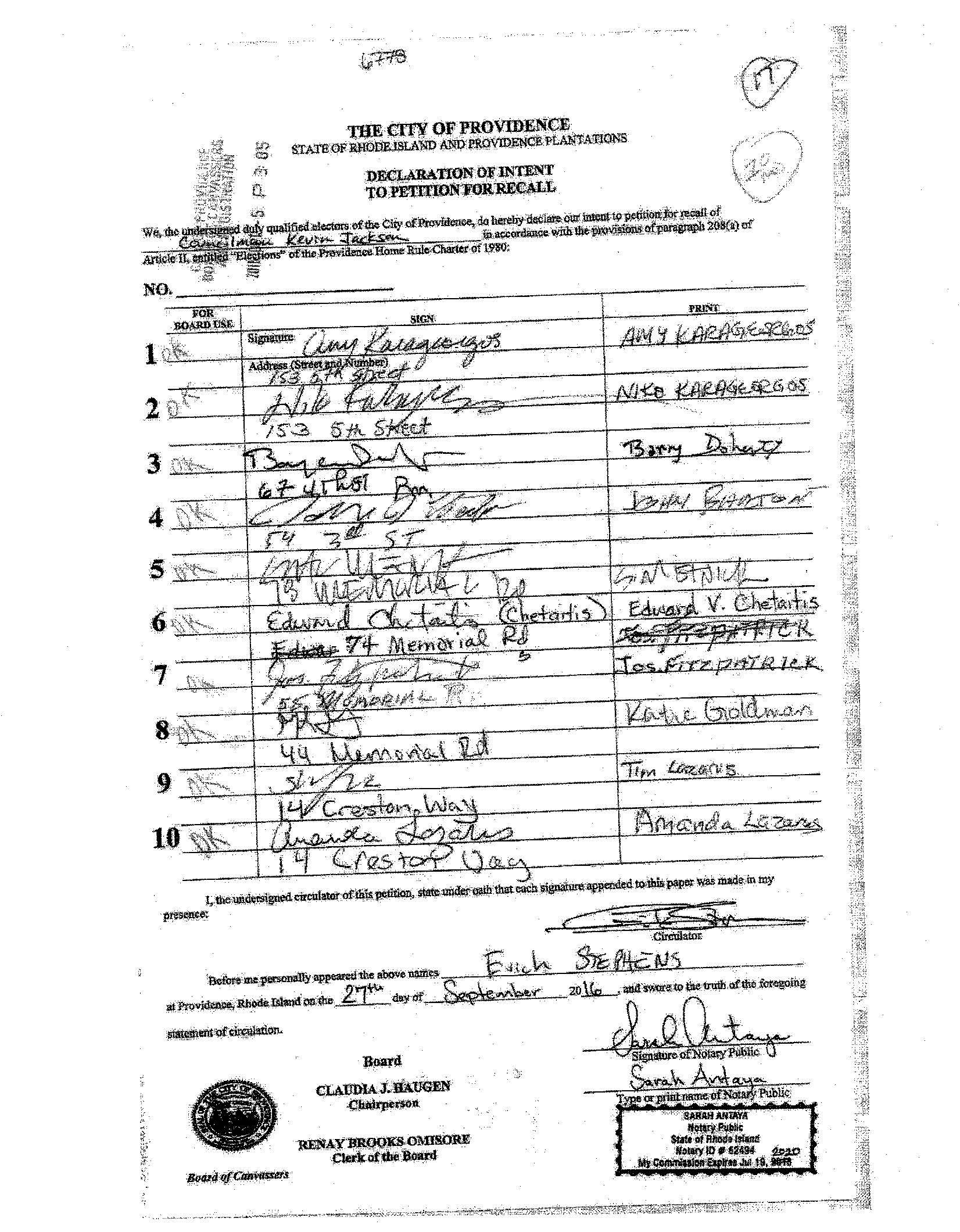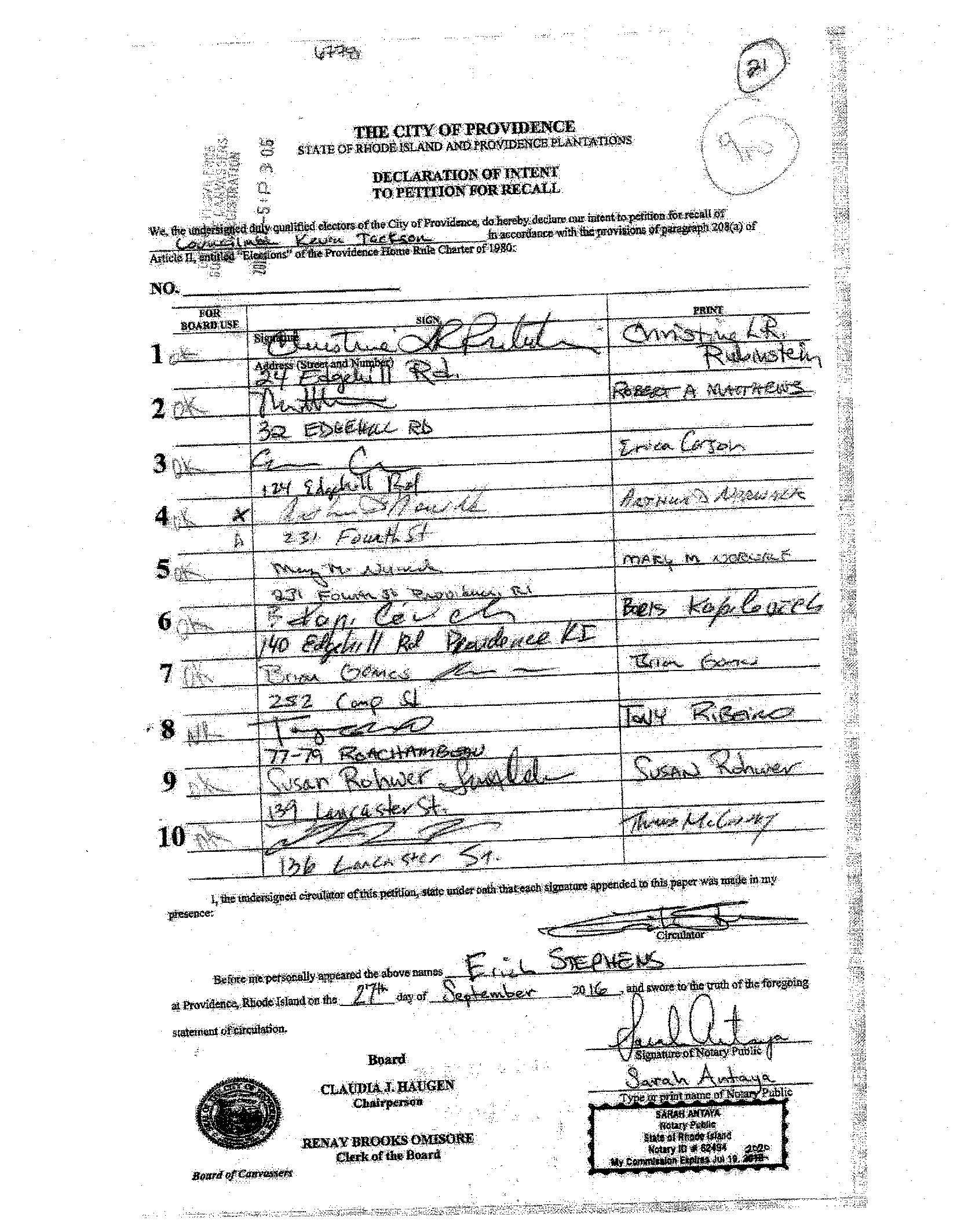 Organizers in the effort to recall Councilman Kevin Jackson were on hand at Nathan Bishop Middle School on the East Side of Providence on Election Day, to collect signatures in the effort to remove the longest sitting City Councilman.