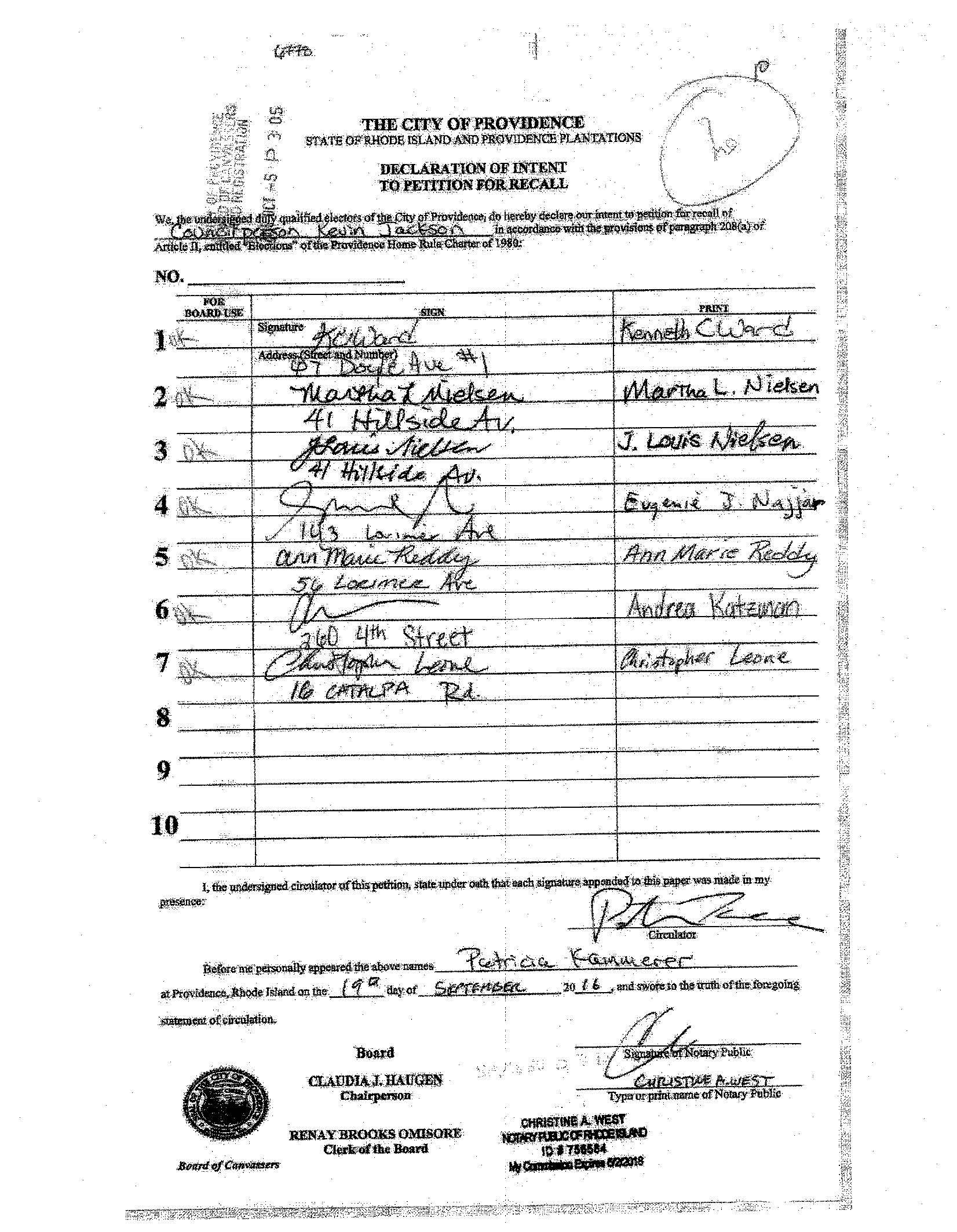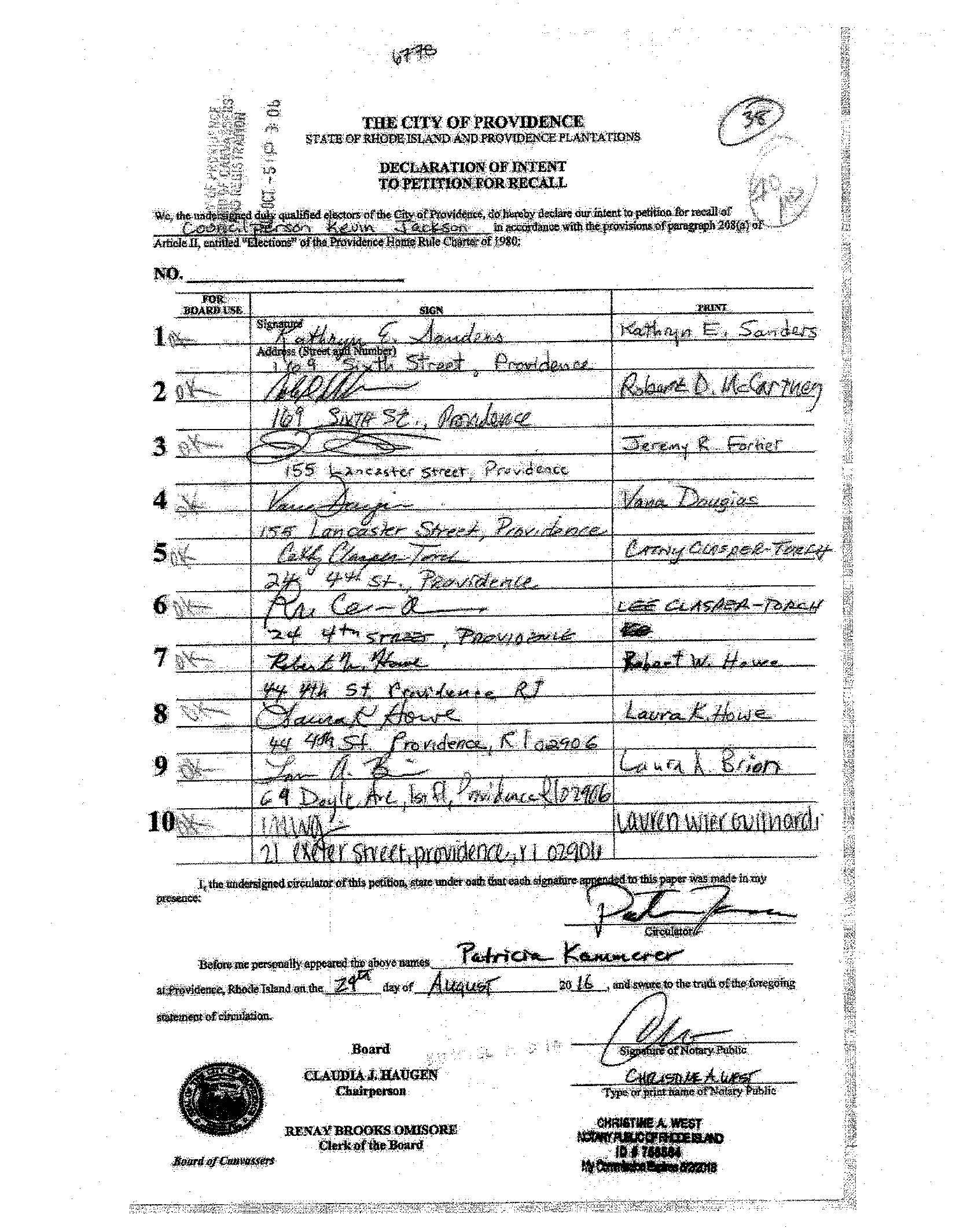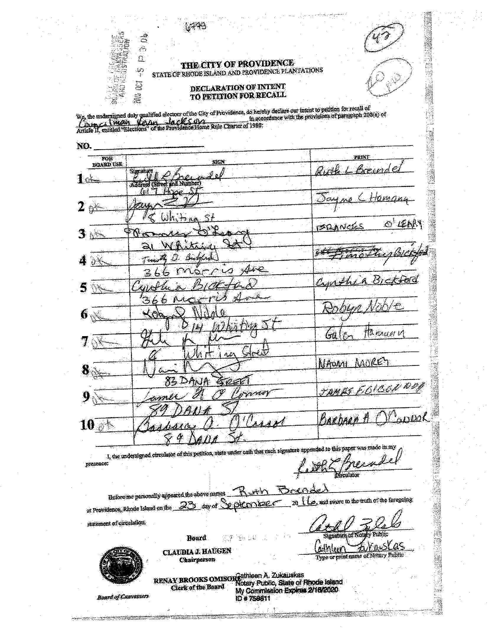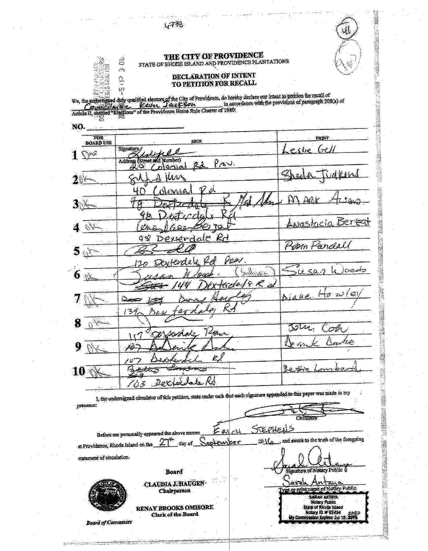 Organizers in the effort to recall Councilman Kevin Jackson were on hand at Nathan Bishop Middle School on the East Side of Providence on Election Day, to collect signatures in the effort to remove the longest sitting City Councilman.