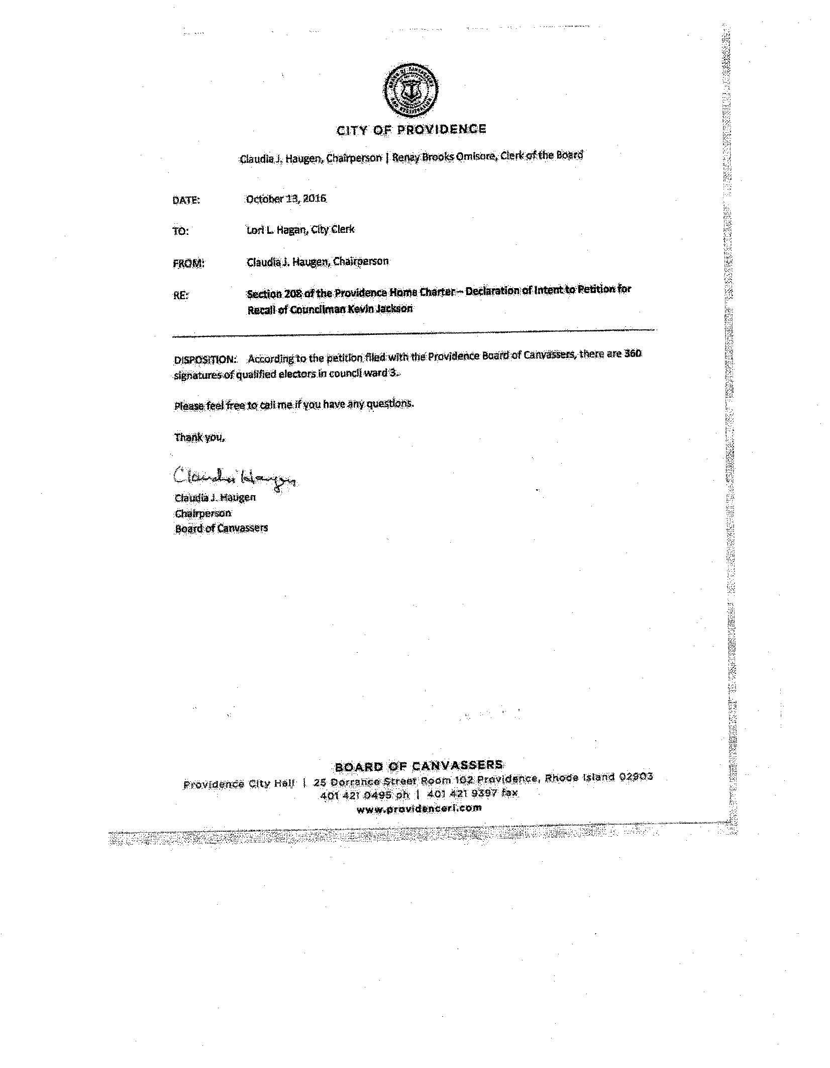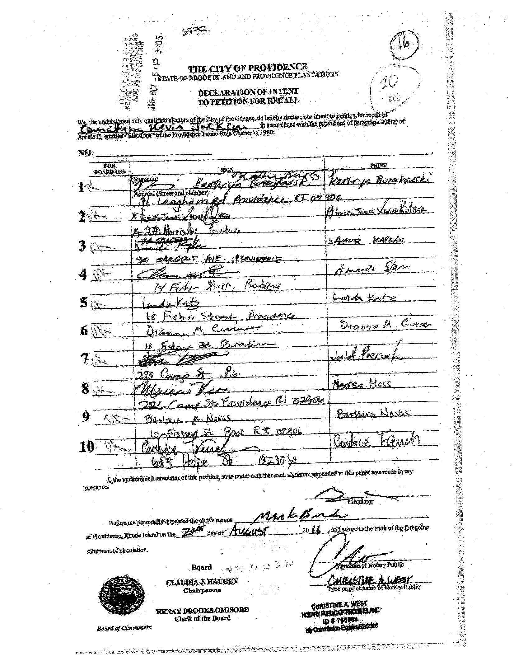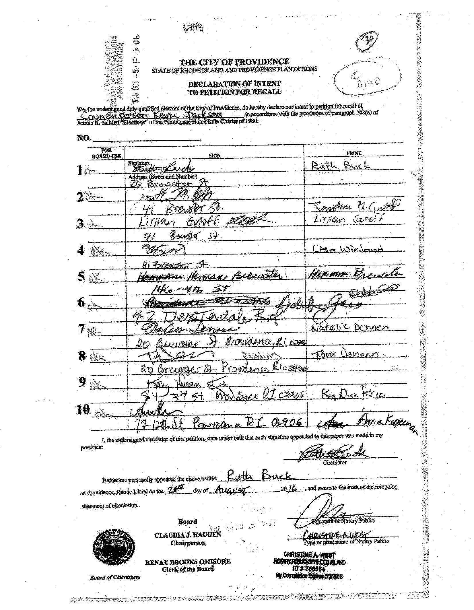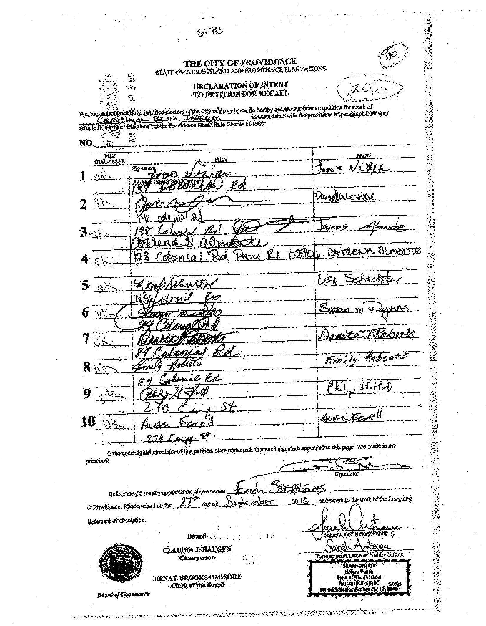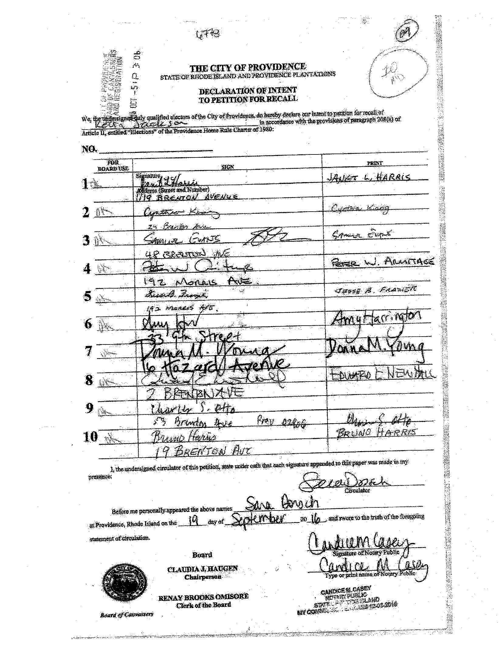 Organizers in the effort to recall Councilman Kevin Jackson were on hand at Nathan Bishop Middle School on the East Side of Providence on Election Day, to collect signatures in the effort to remove the longest sitting City Councilman.