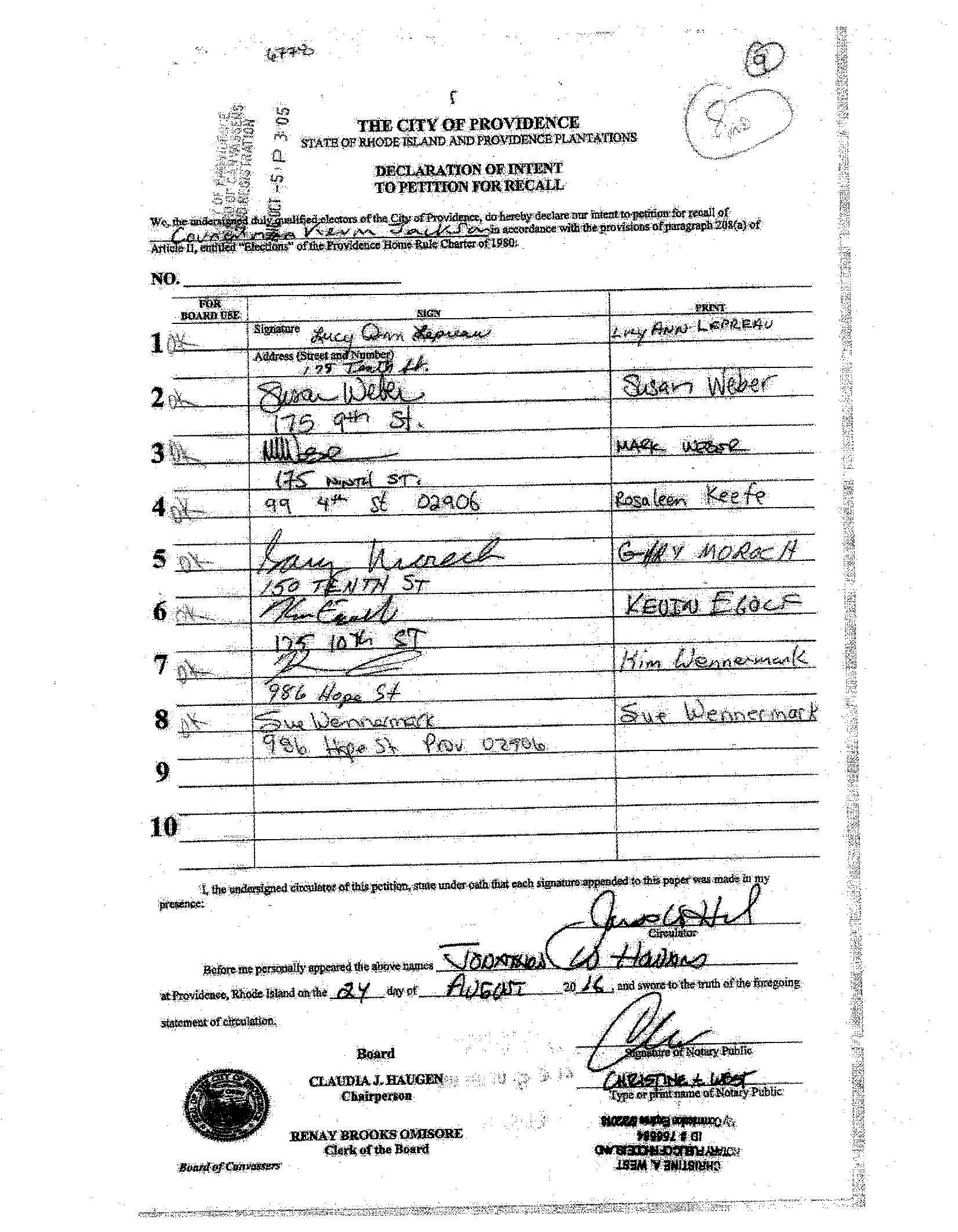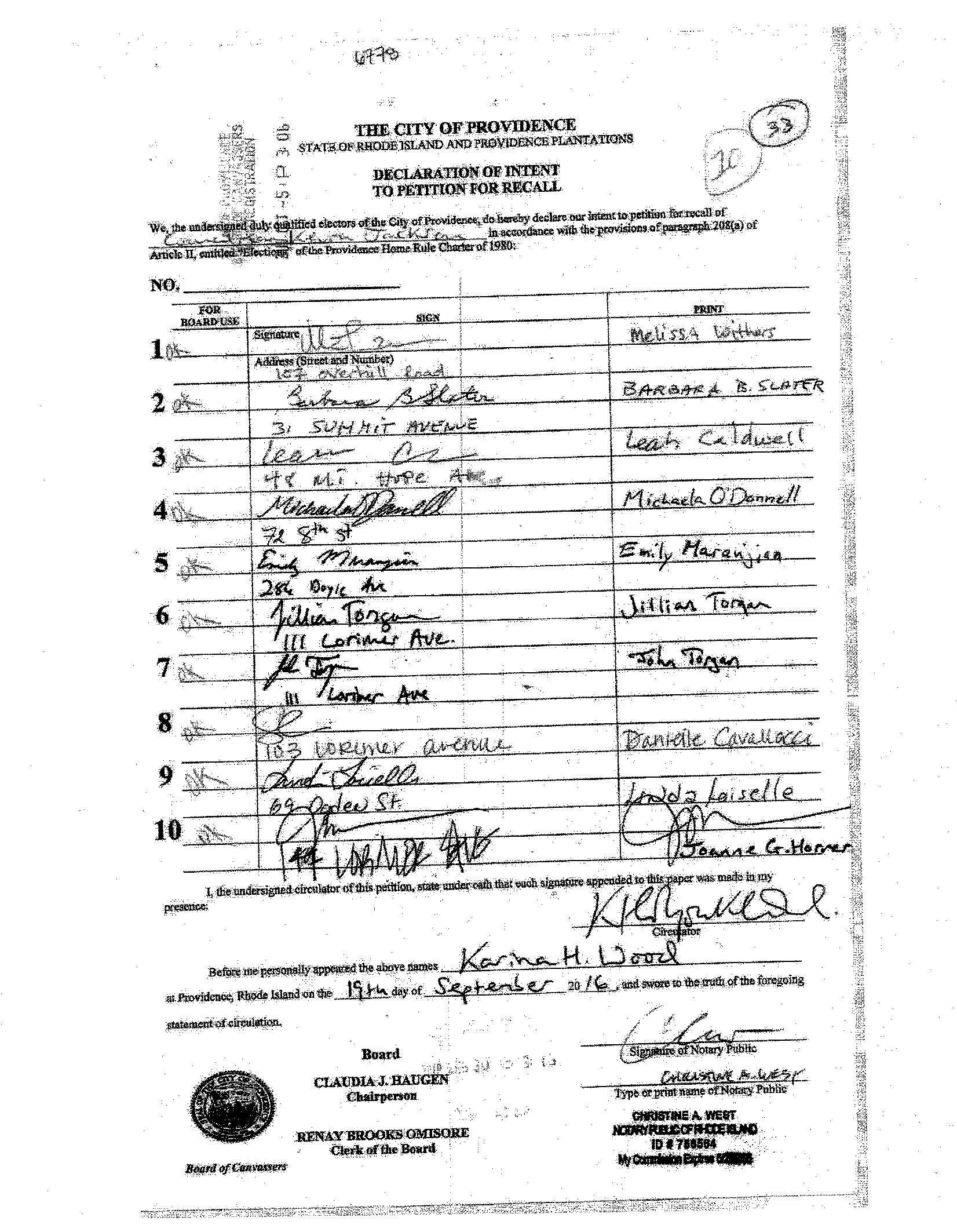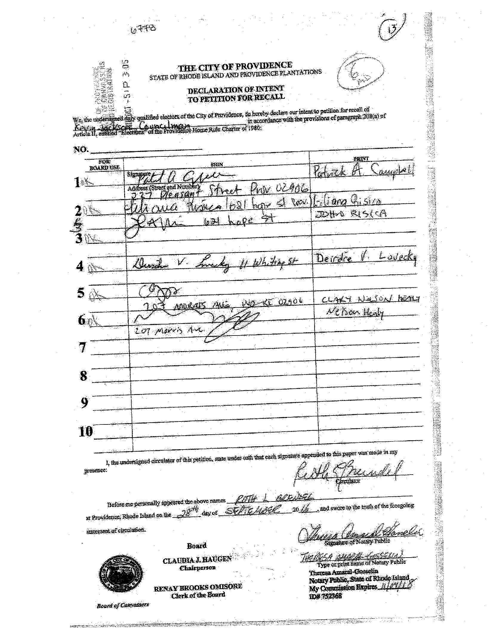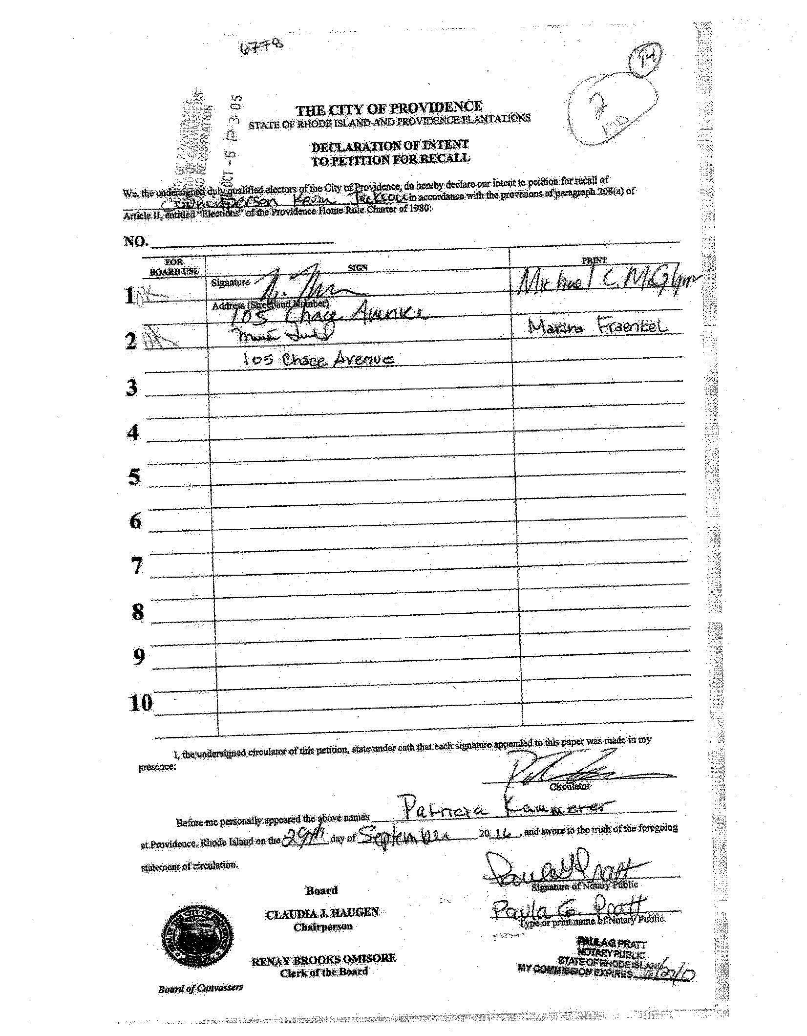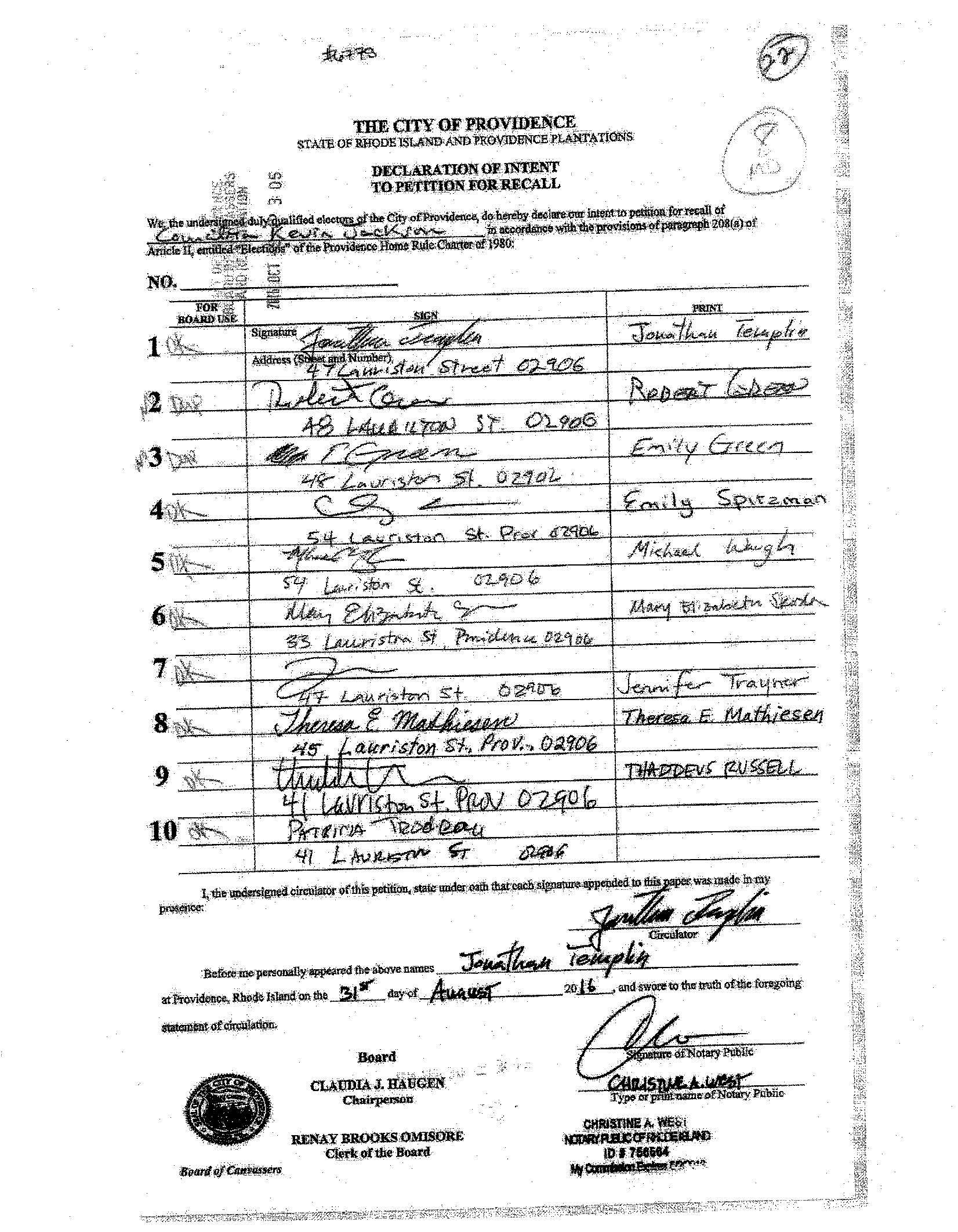 Organizers in the effort to recall Councilman Kevin Jackson were on hand at Nathan Bishop Middle School on the East Side of Providence on Election Day, to collect signatures in the effort to remove the longest sitting City Councilman.