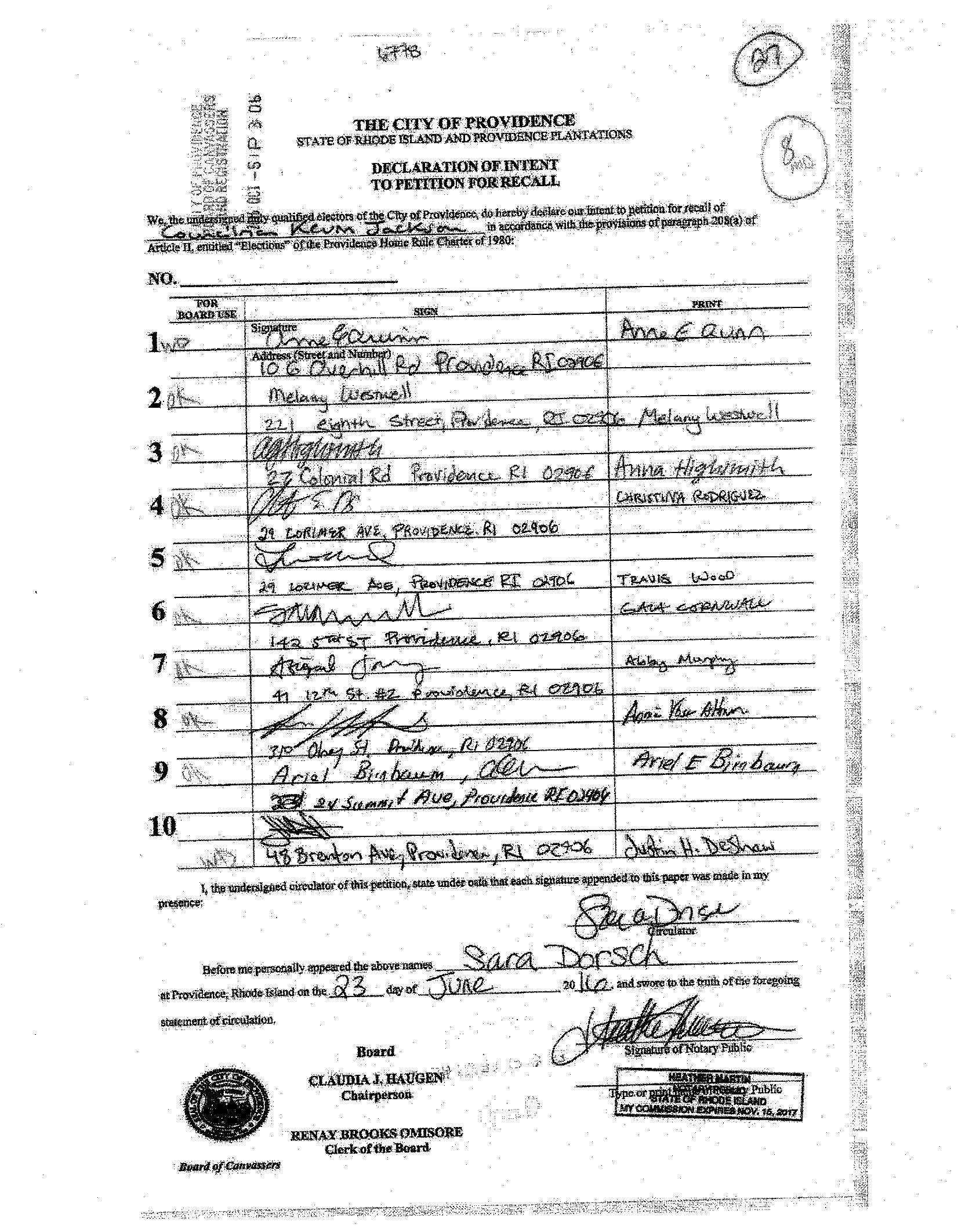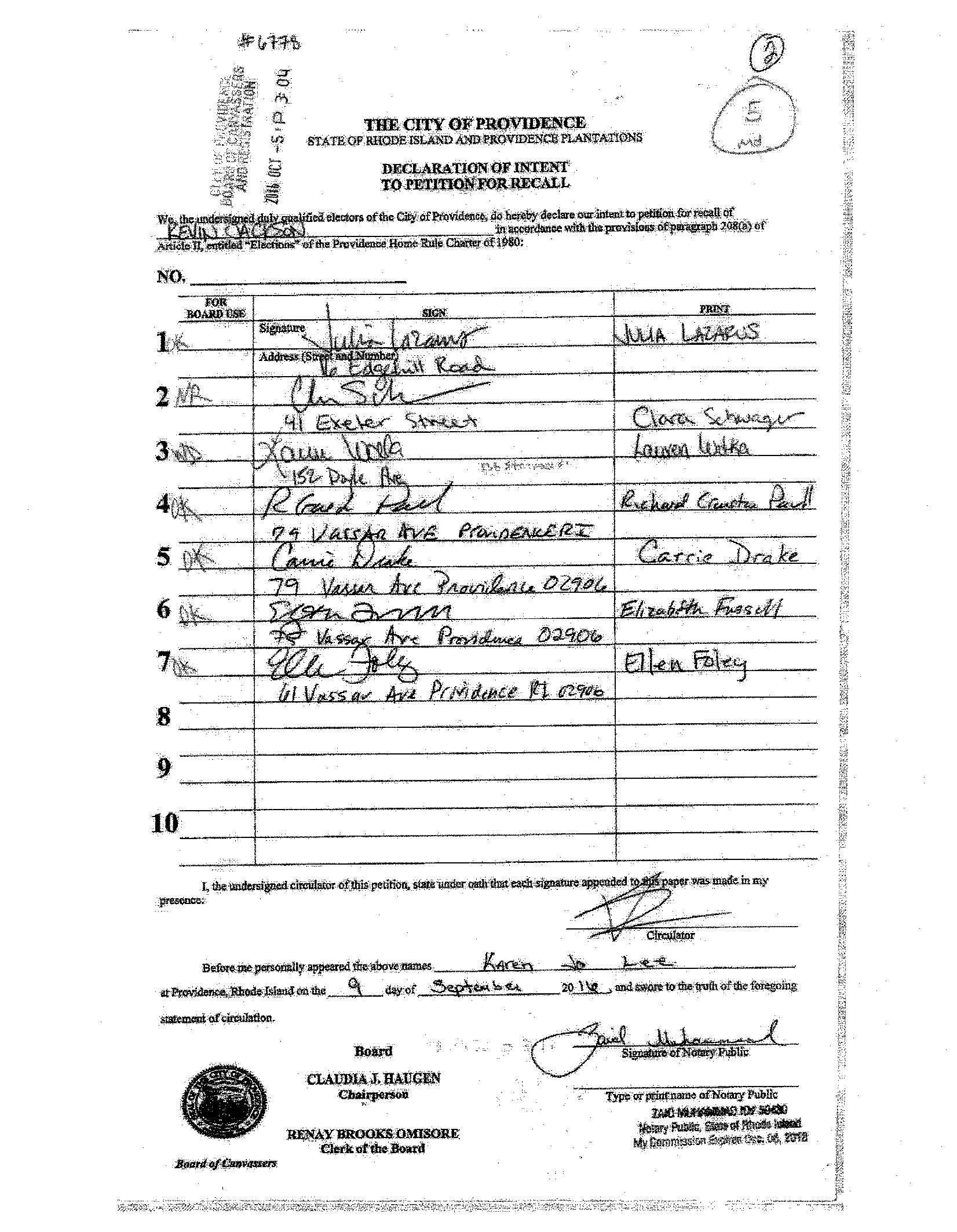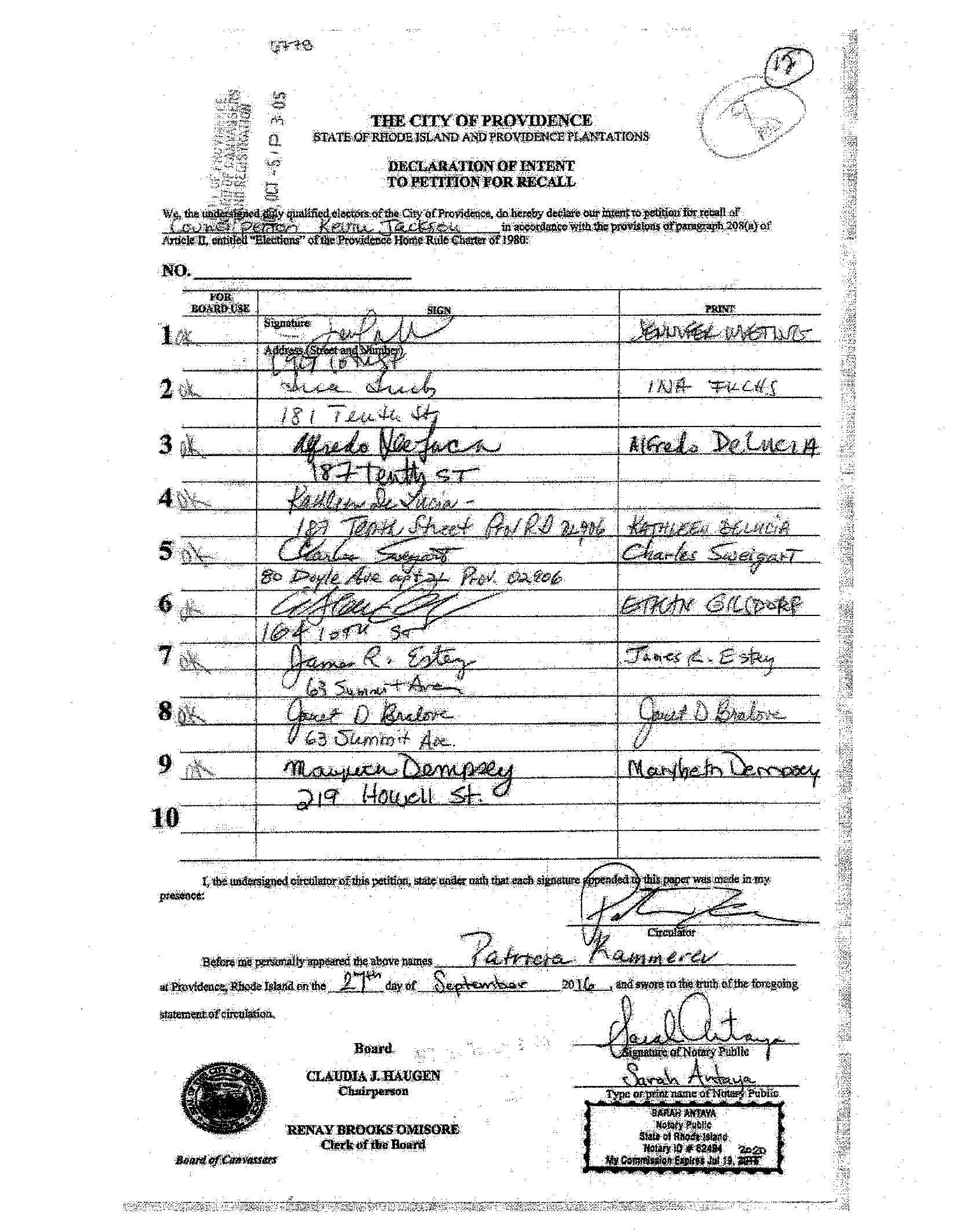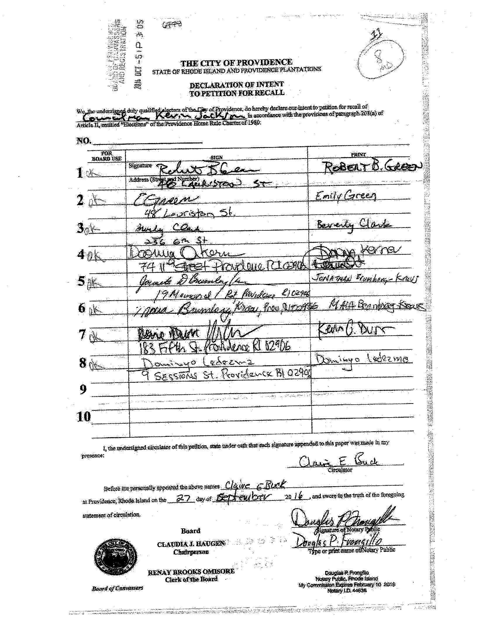 Organizers in the effort to recall Councilman Kevin Jackson were on hand at Nathan Bishop Middle School on the East Side of Providence on Election Day, to collect signatures in the effort to remove the longest sitting City Councilman.