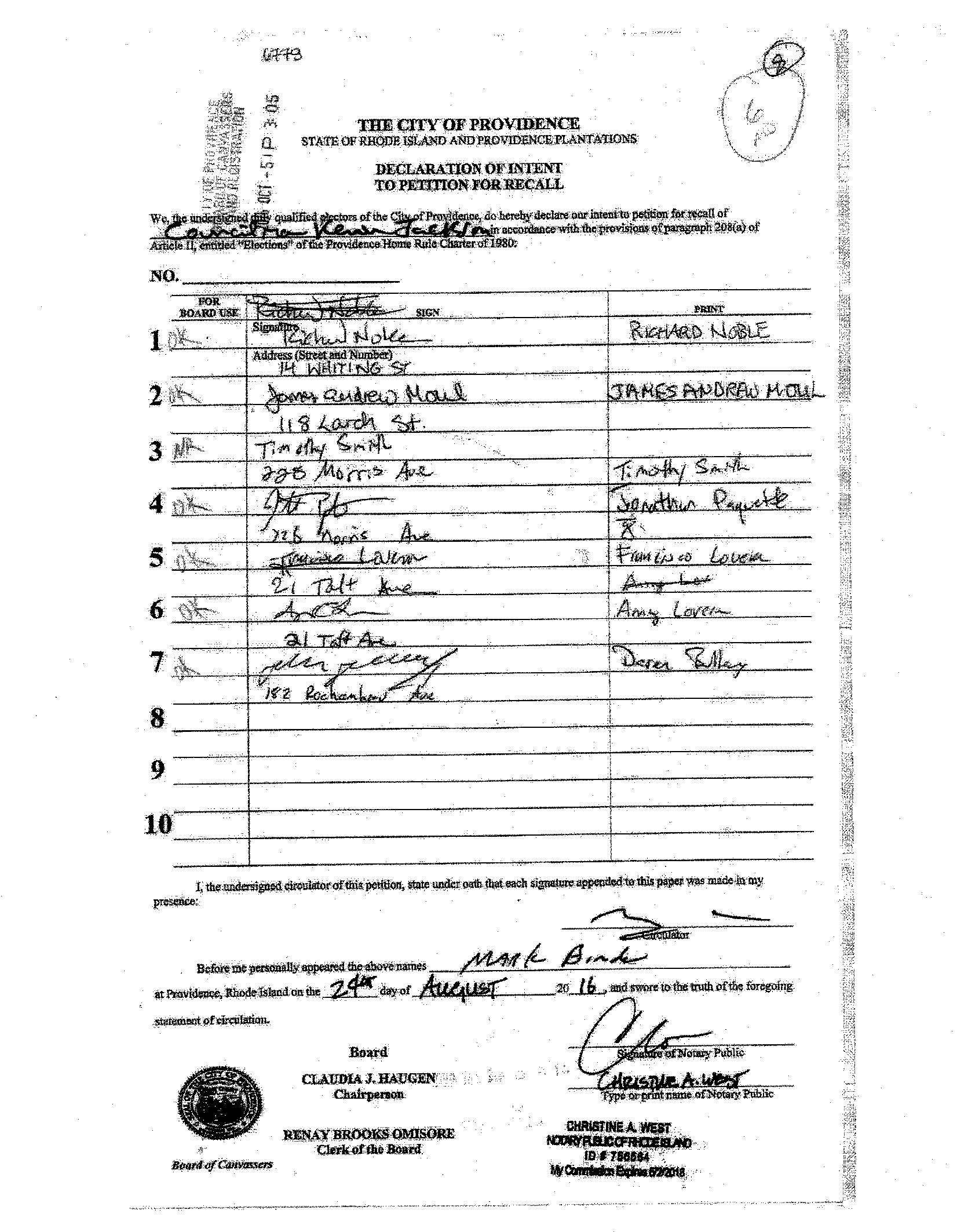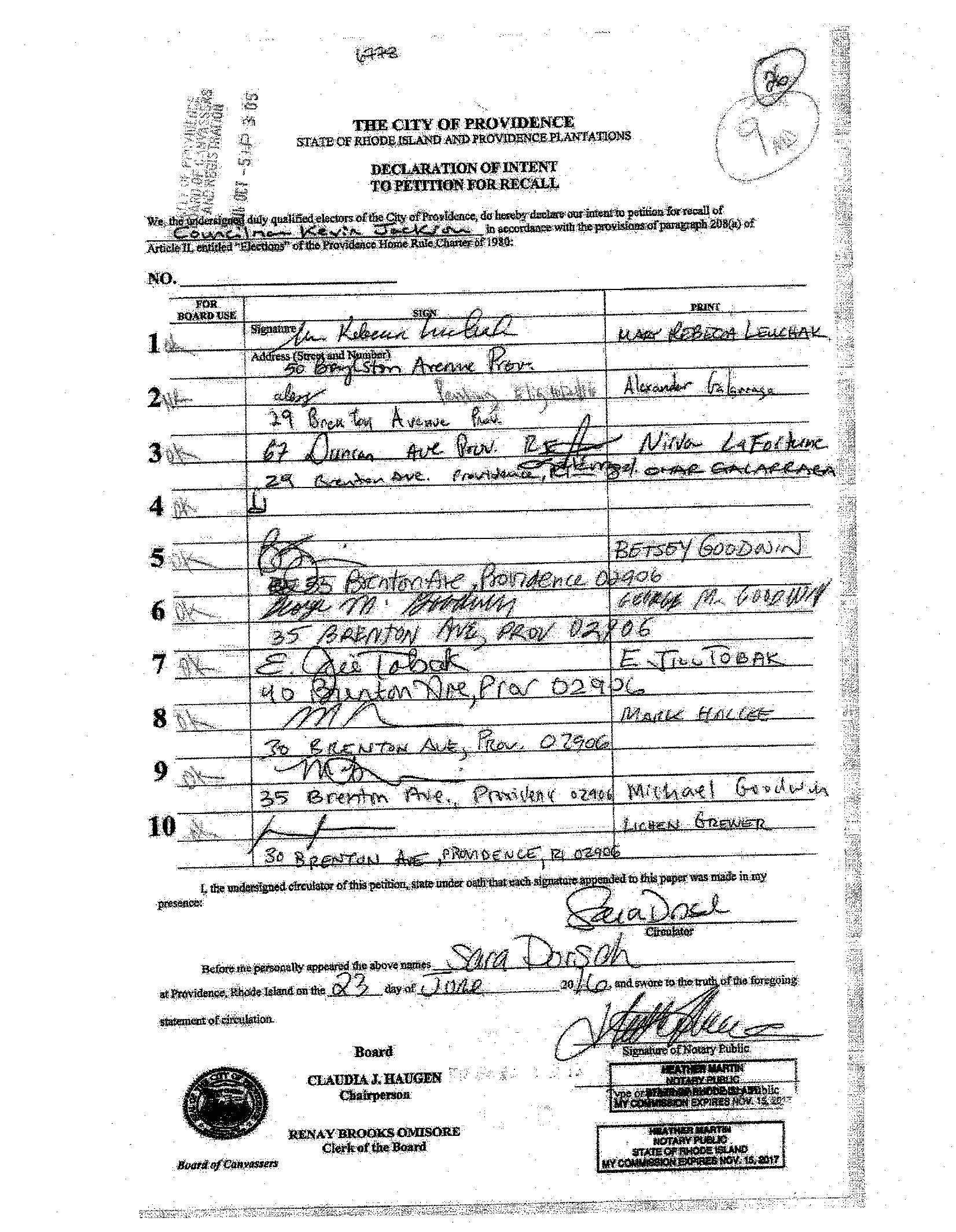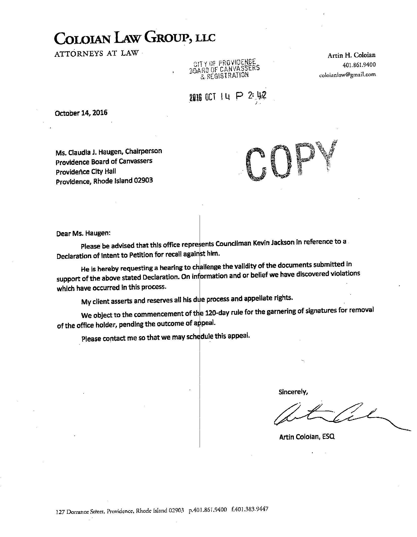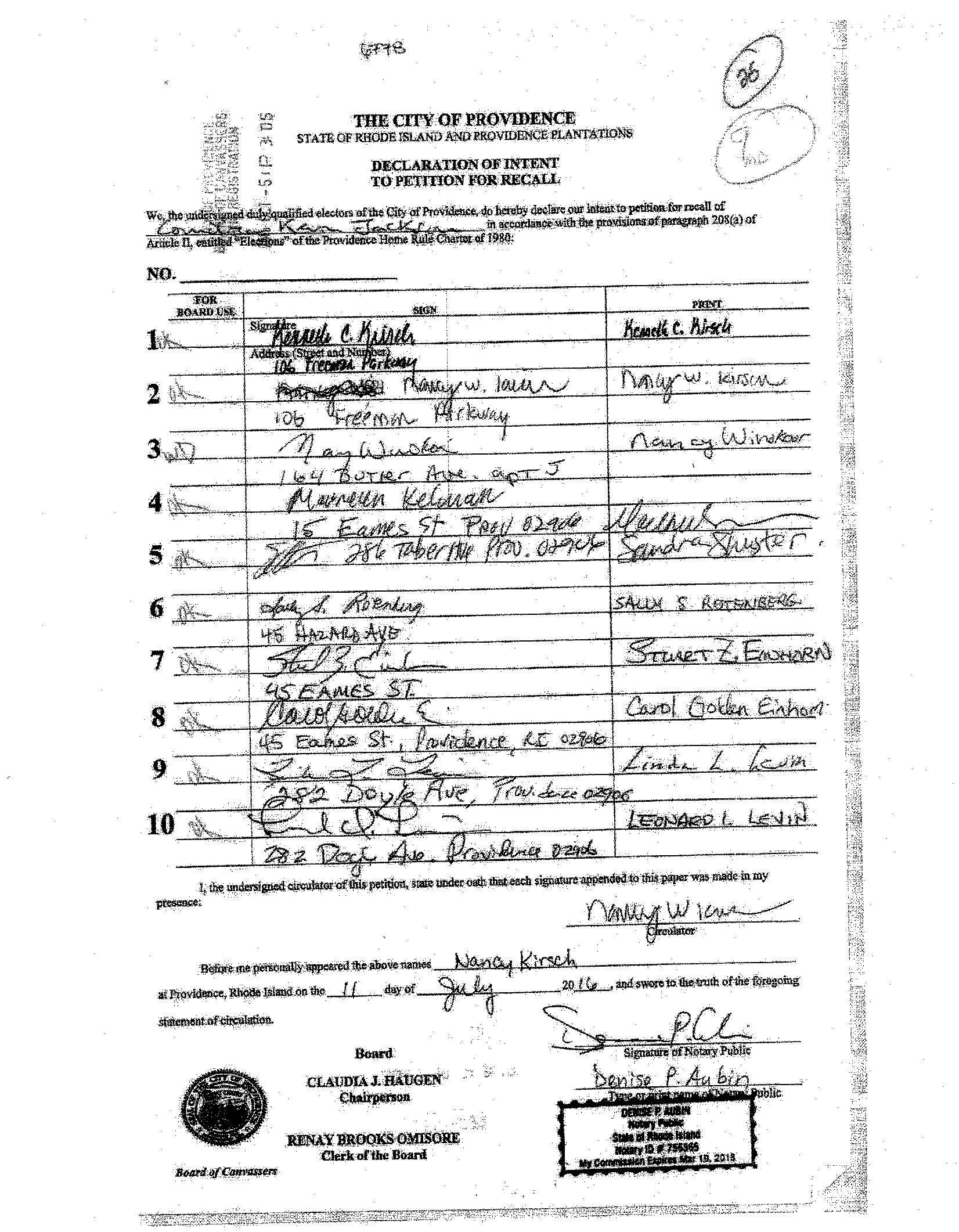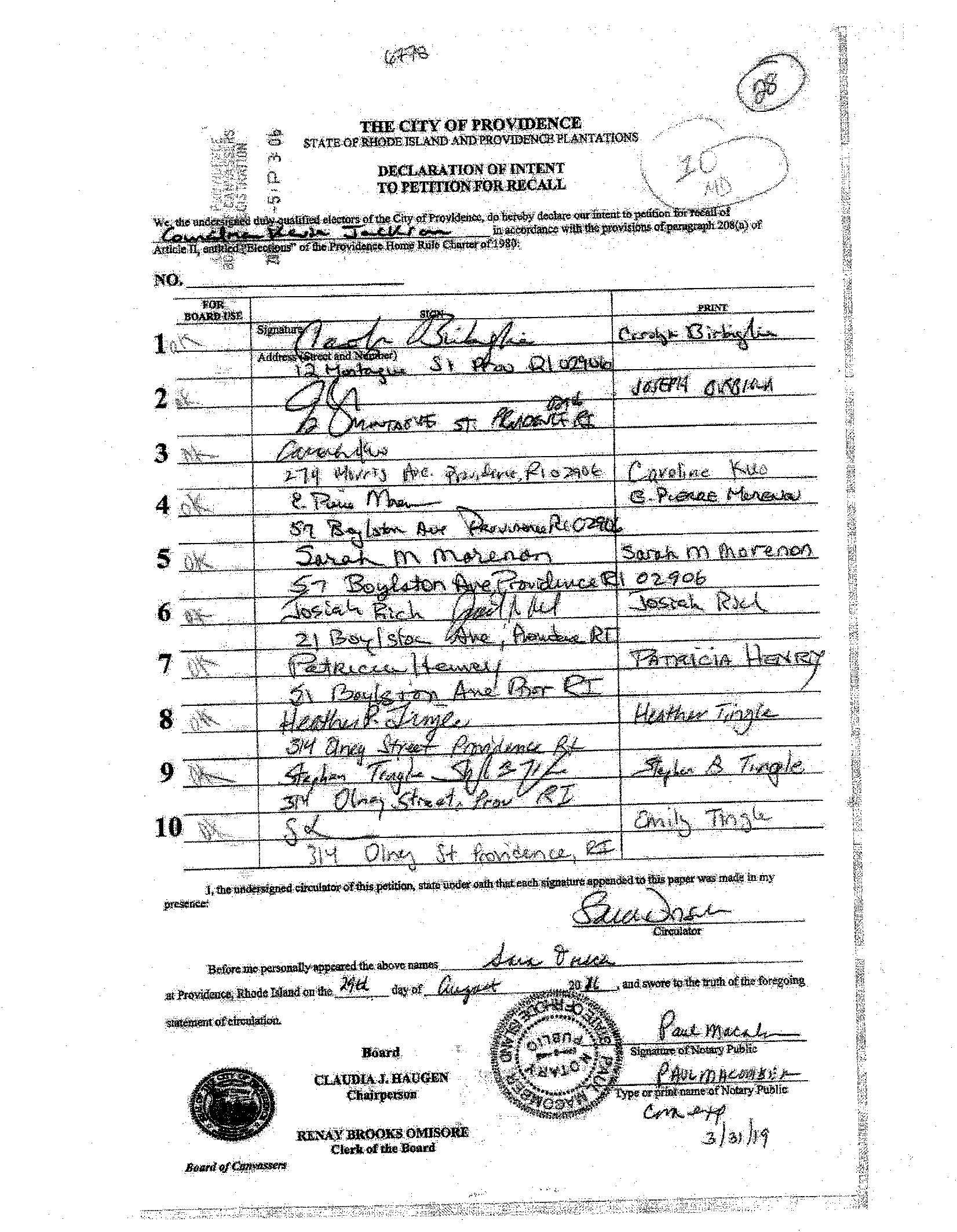 Organizers in the effort to recall Councilman Kevin Jackson were on hand at Nathan Bishop Middle School on the East Side of Providence on Election Day, to collect signatures in the effort to remove the longest sitting City Councilman.