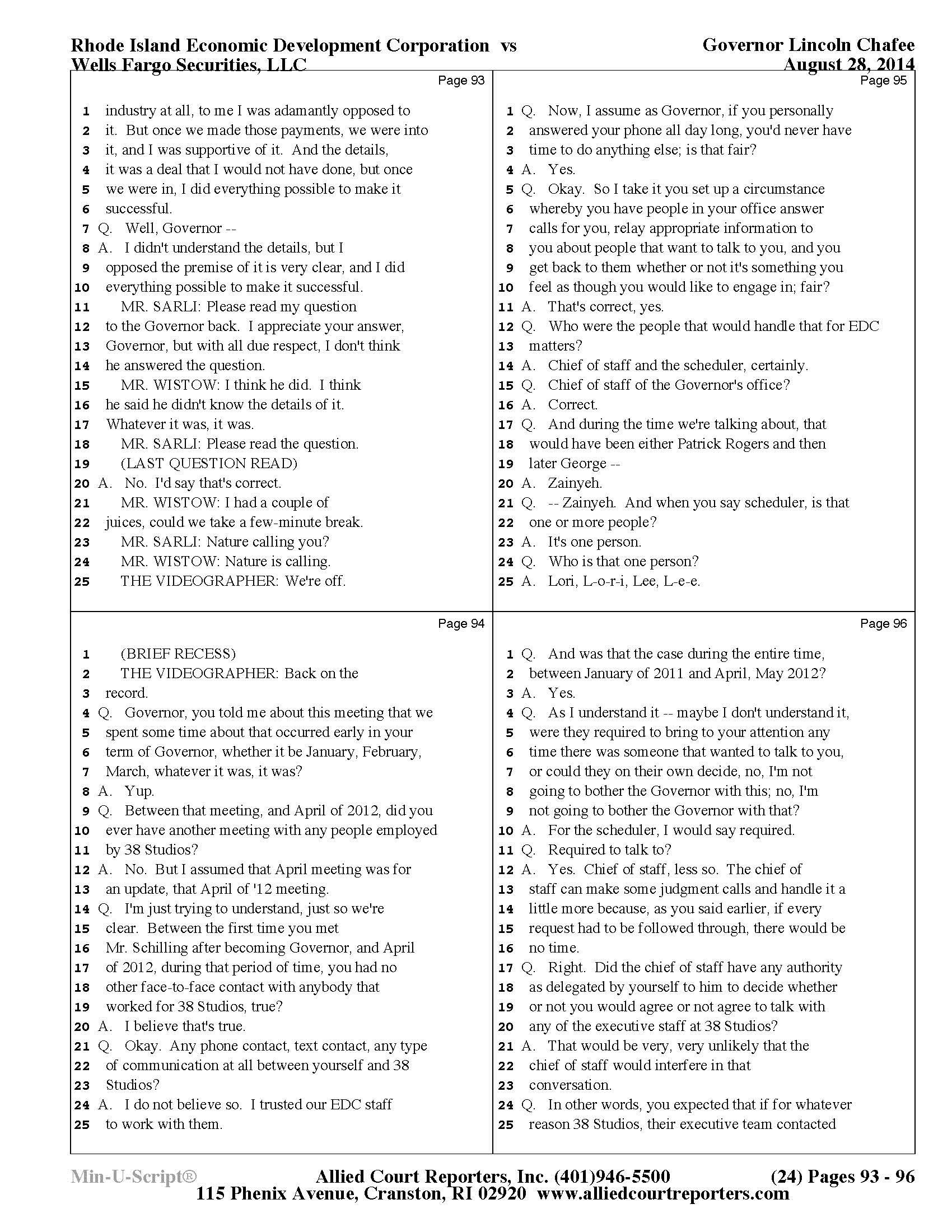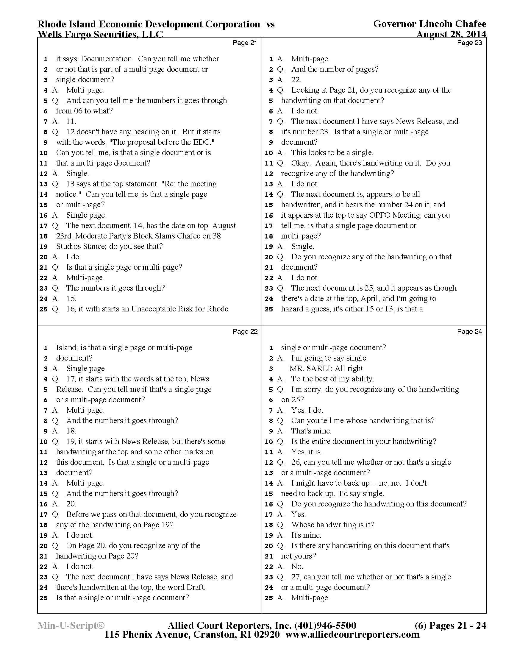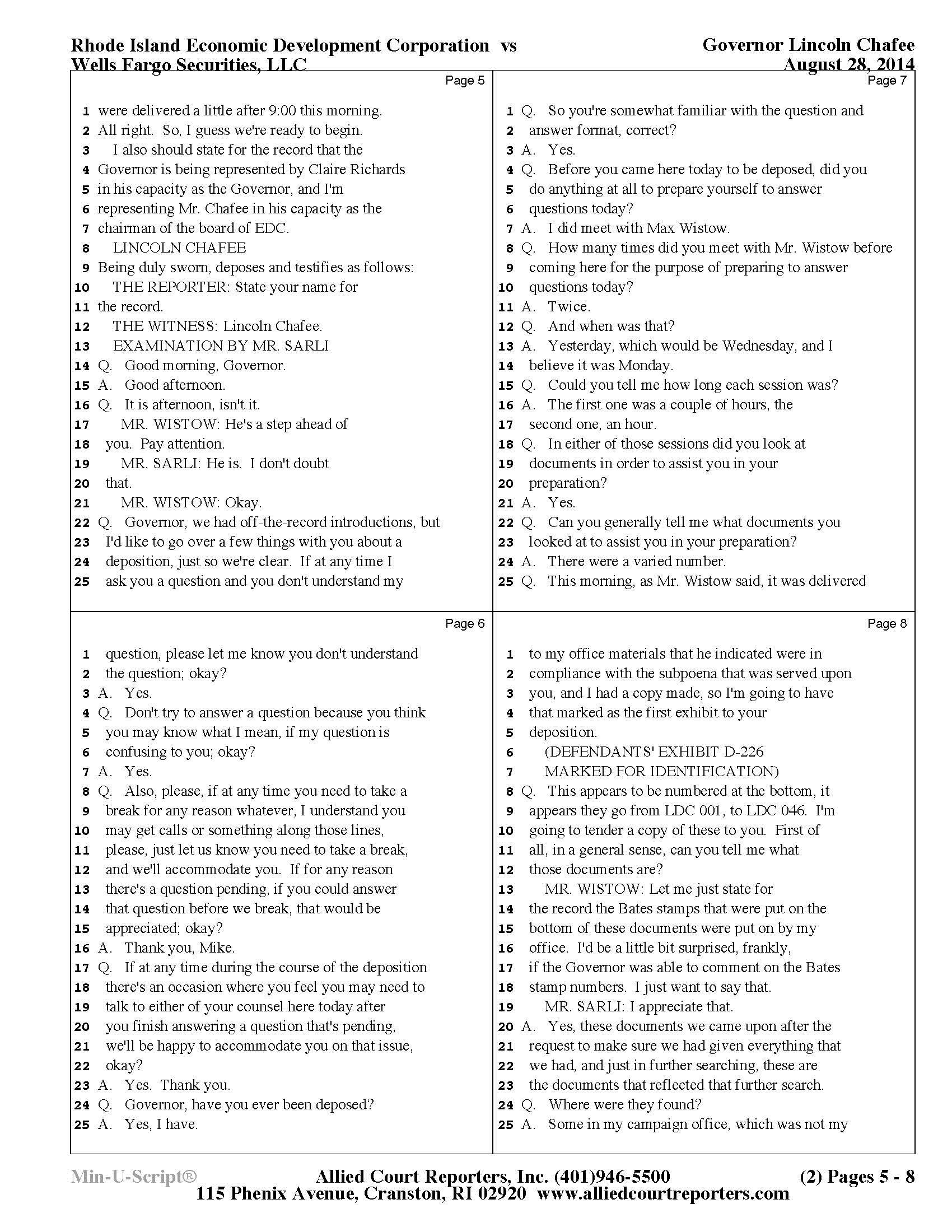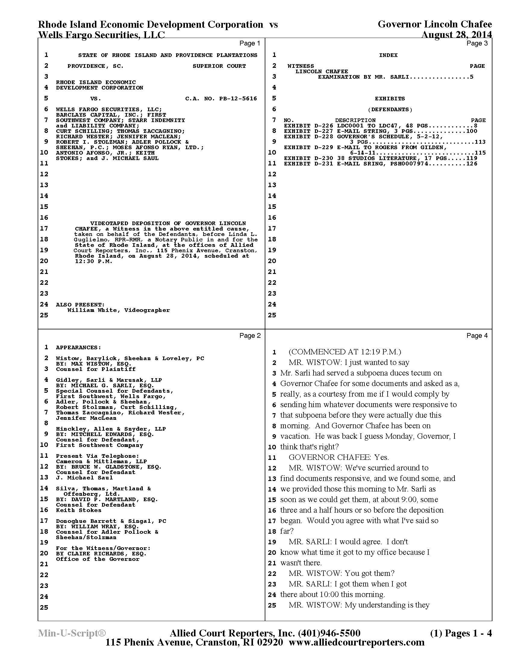 Chafee Deposition Part 1 - See Slideshow Below