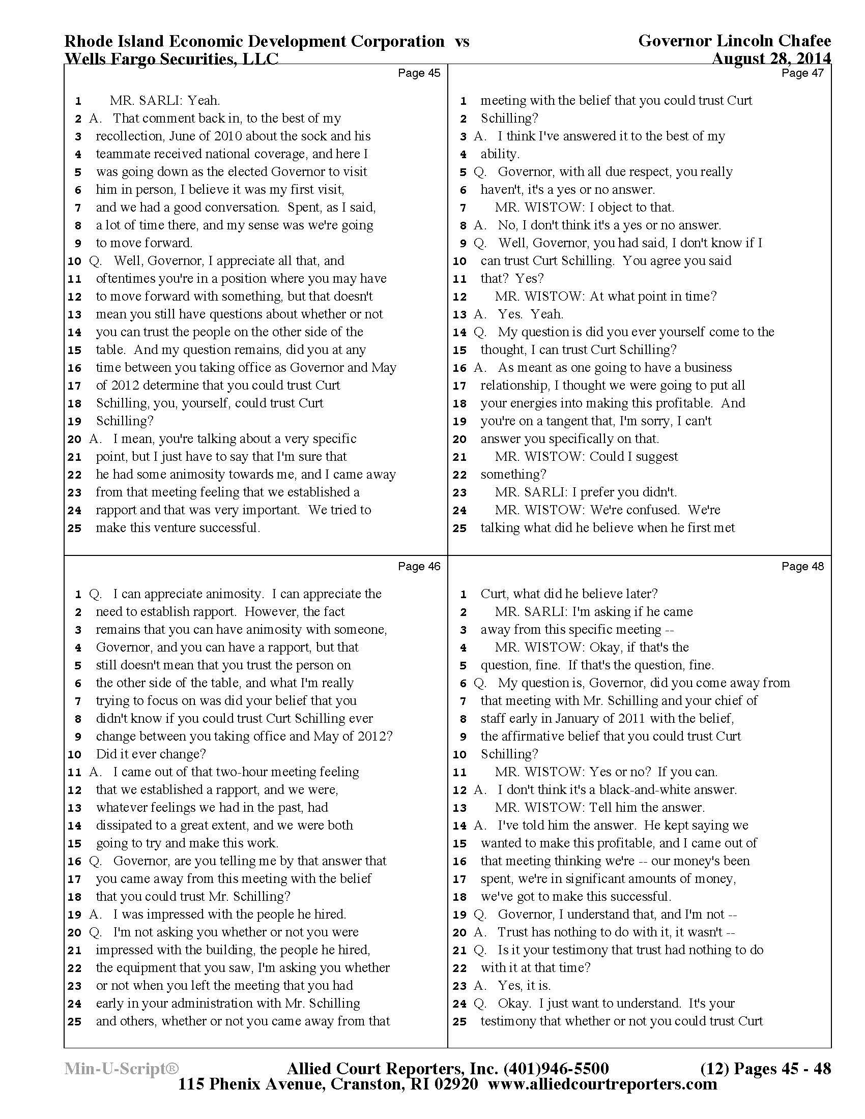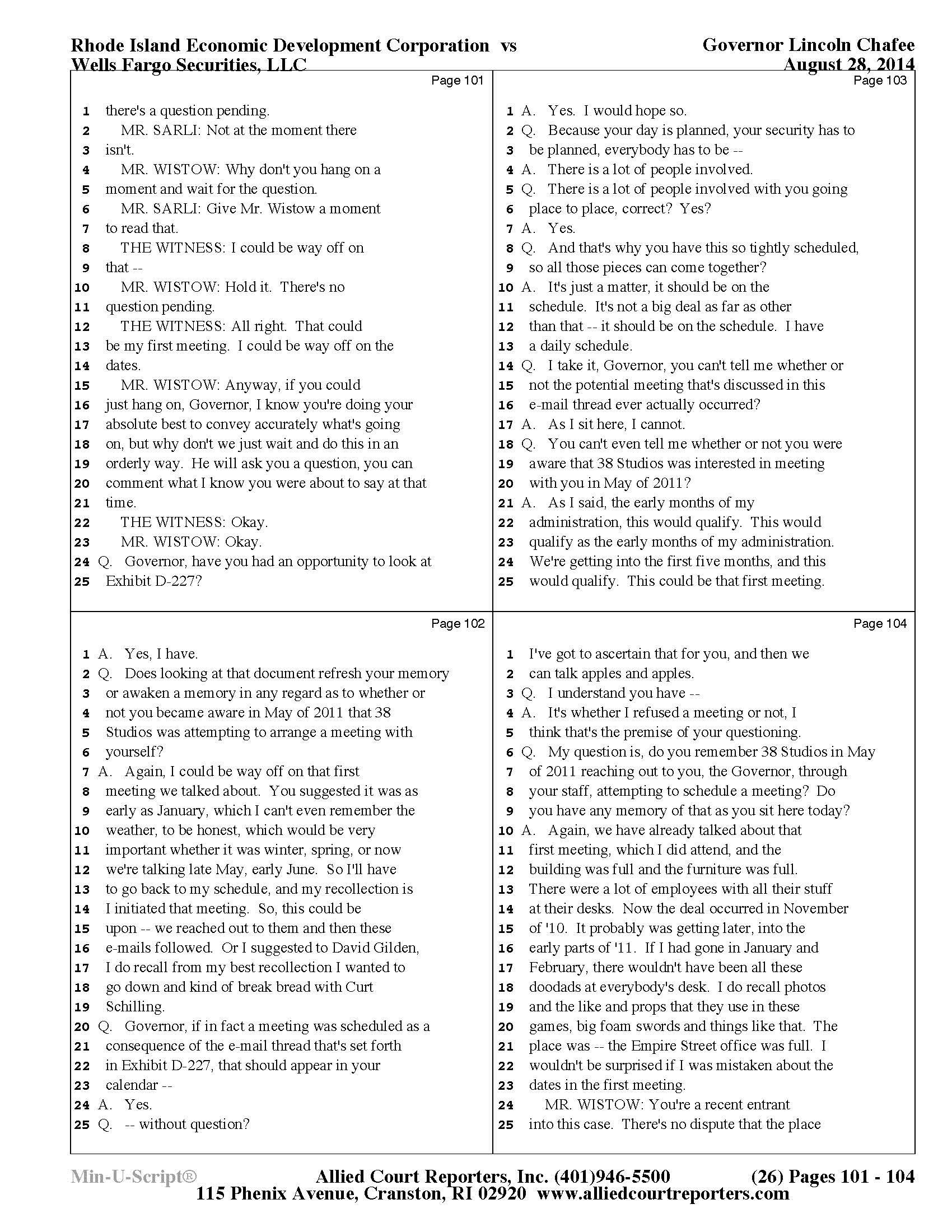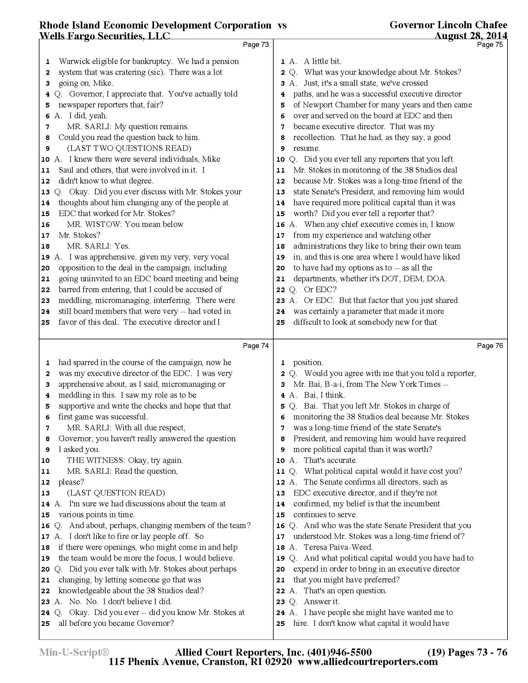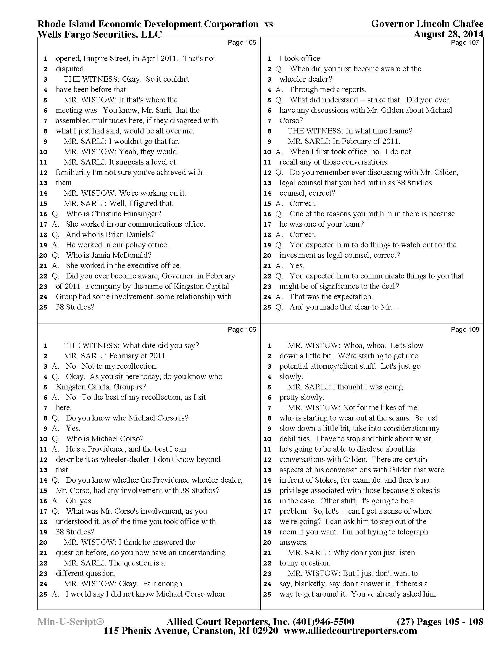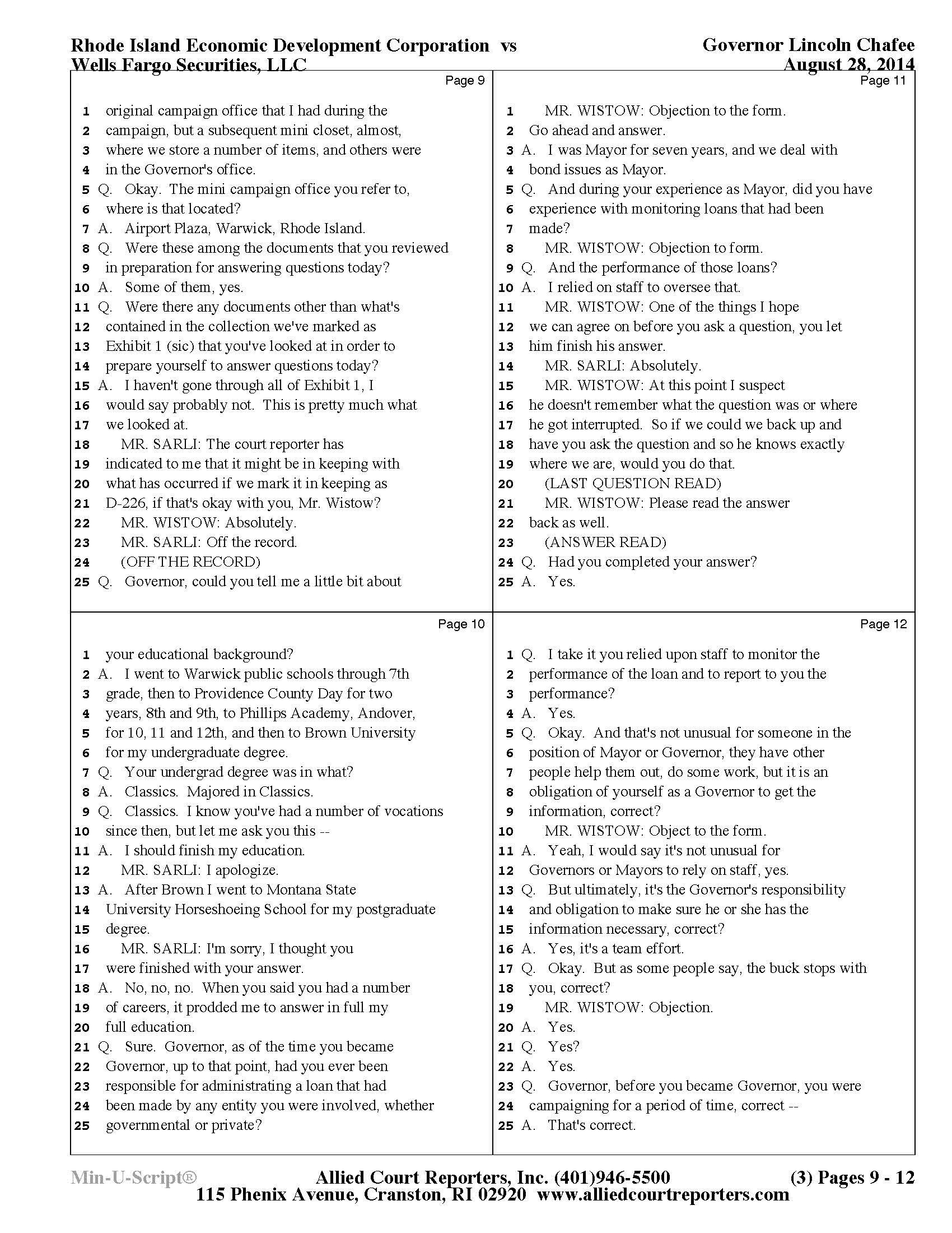 Chafee Deposition Part 1 - See Slideshow Below