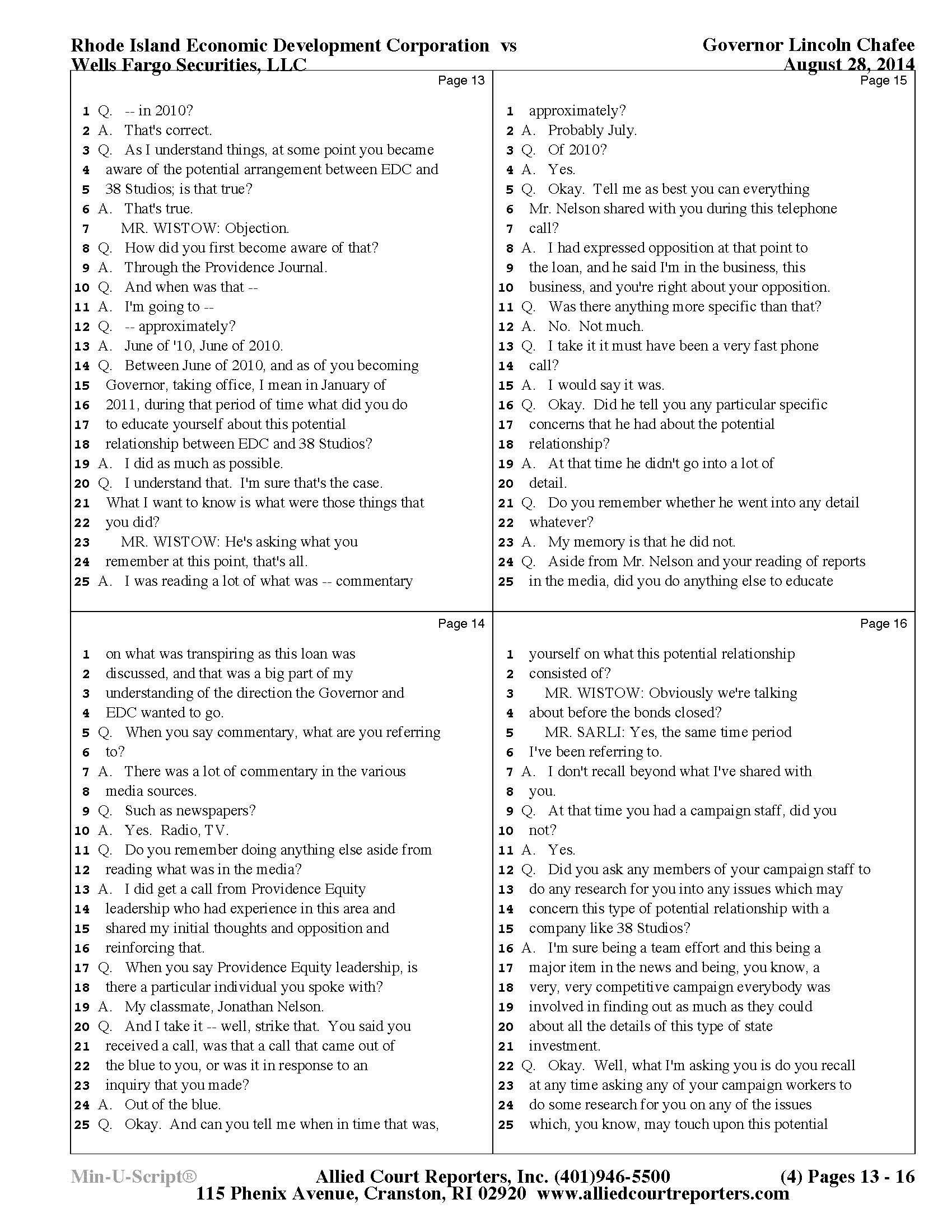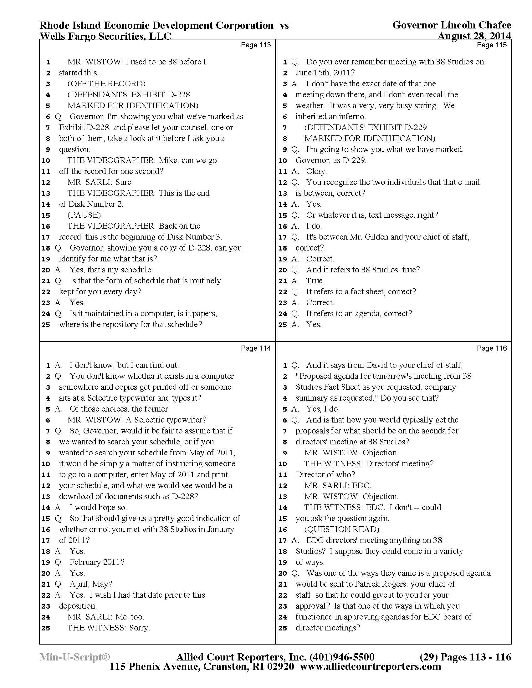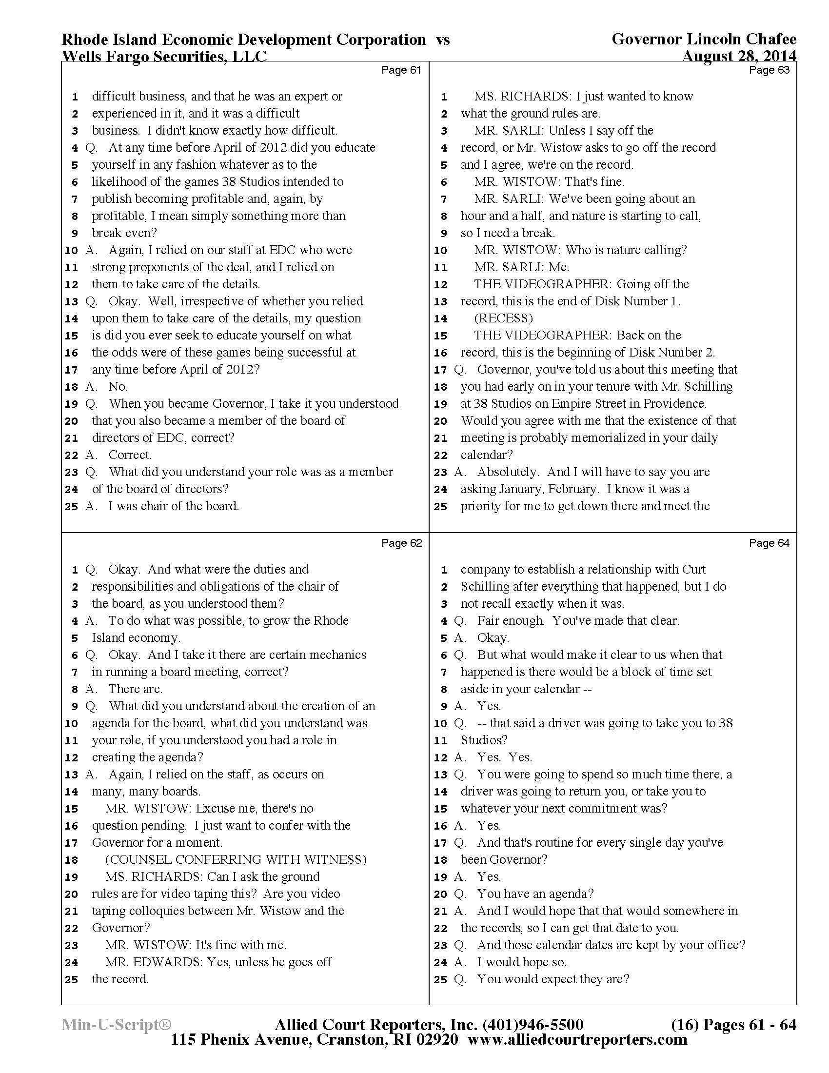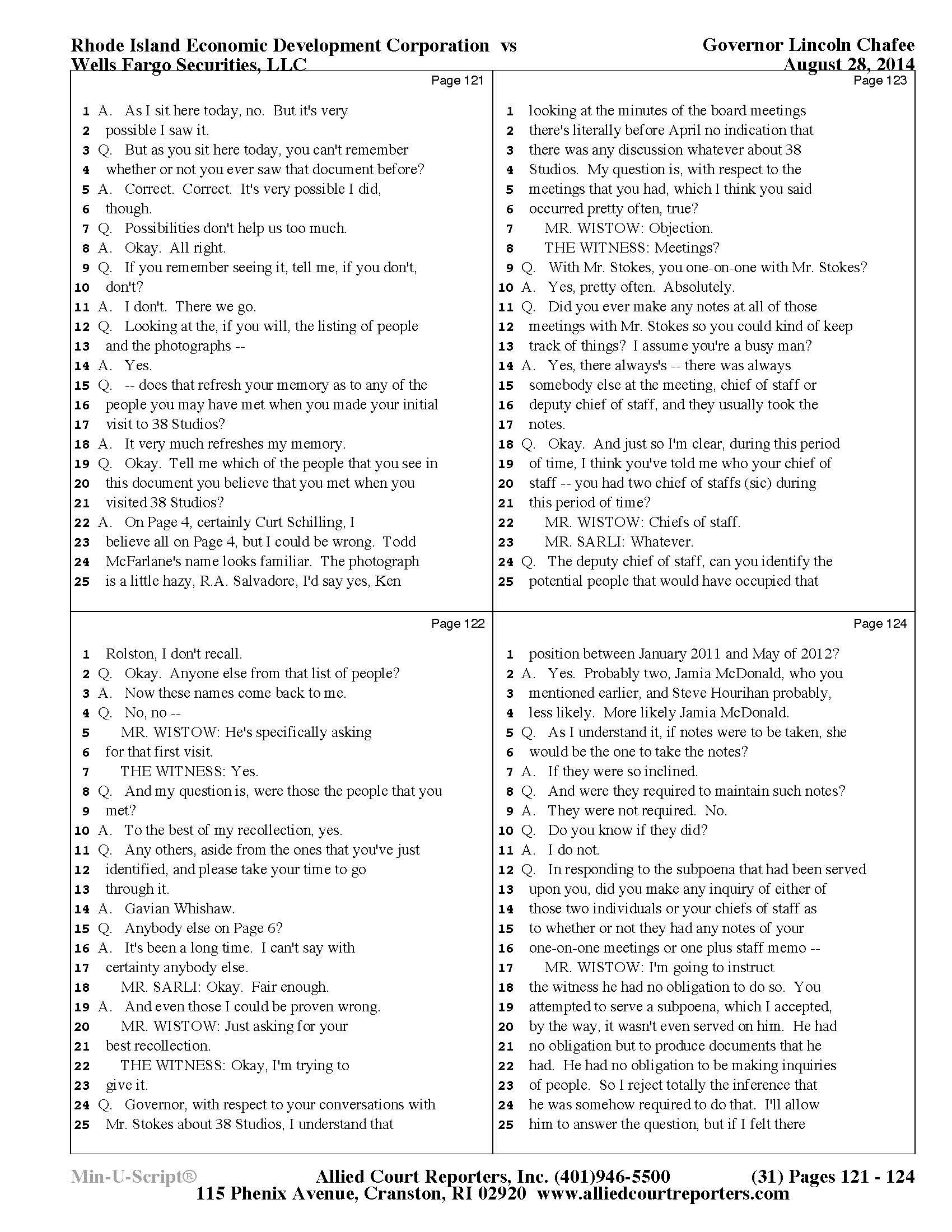 Gov. Lincoln Chafee's 38 Studios Deposition and Exhibits