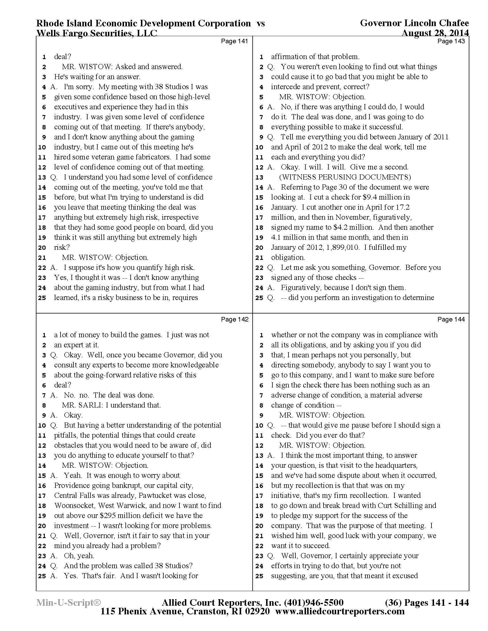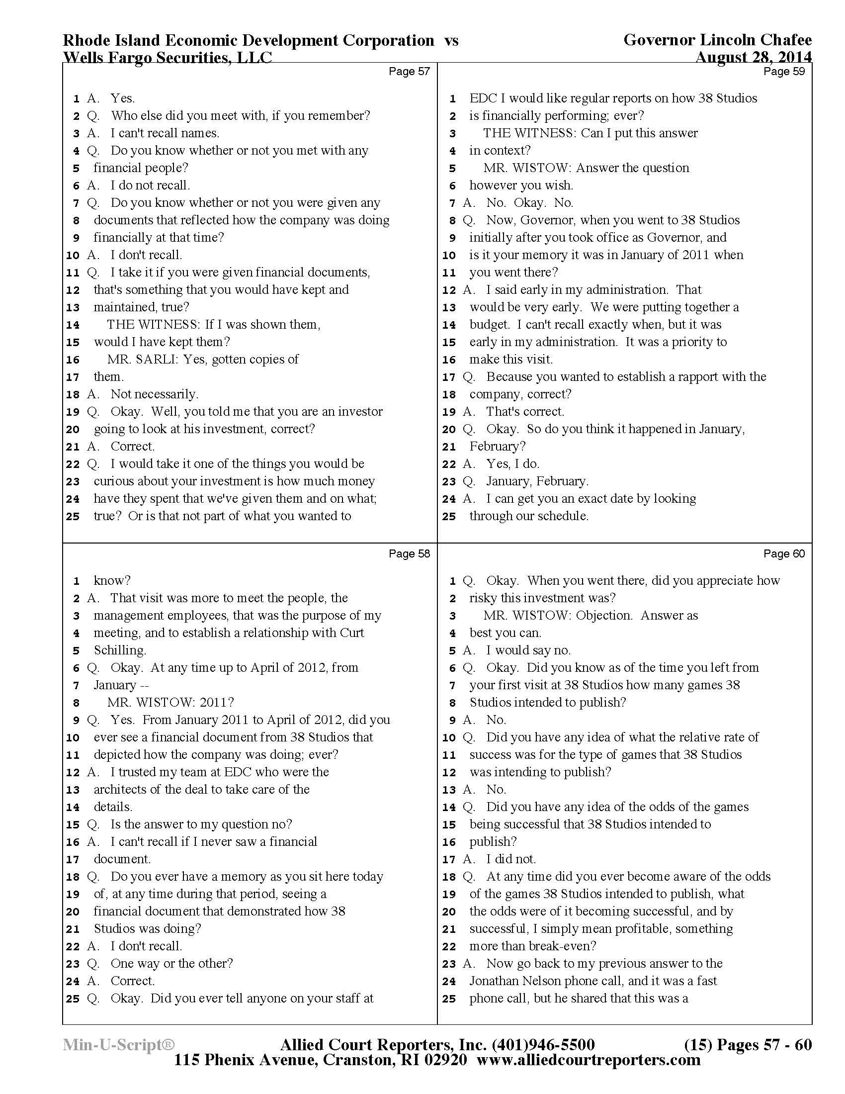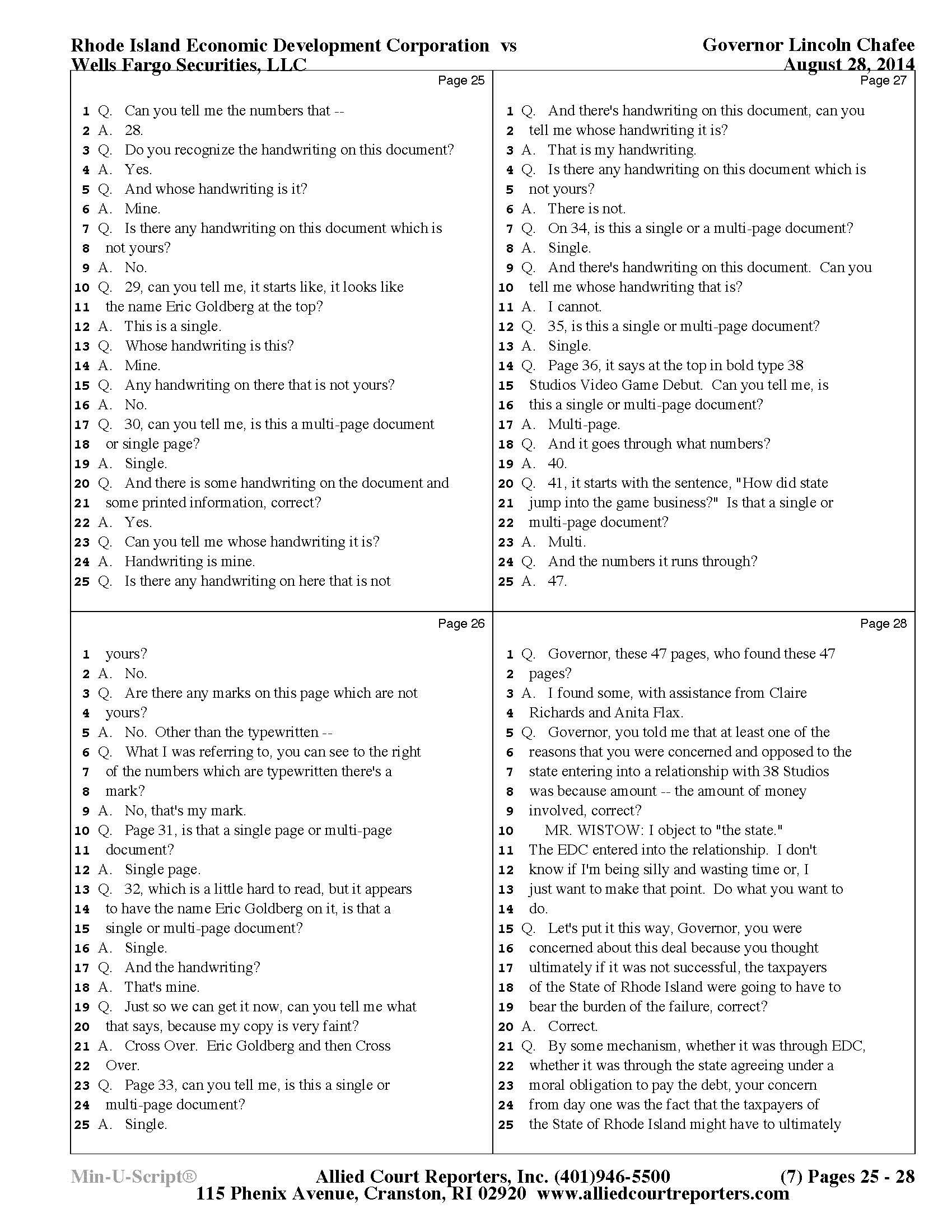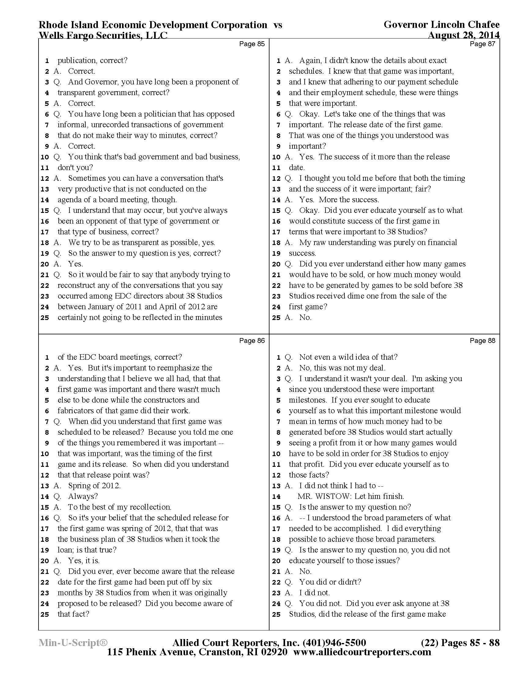 Gov. Lincoln Chafee's 38 Studios Deposition and Exhibits