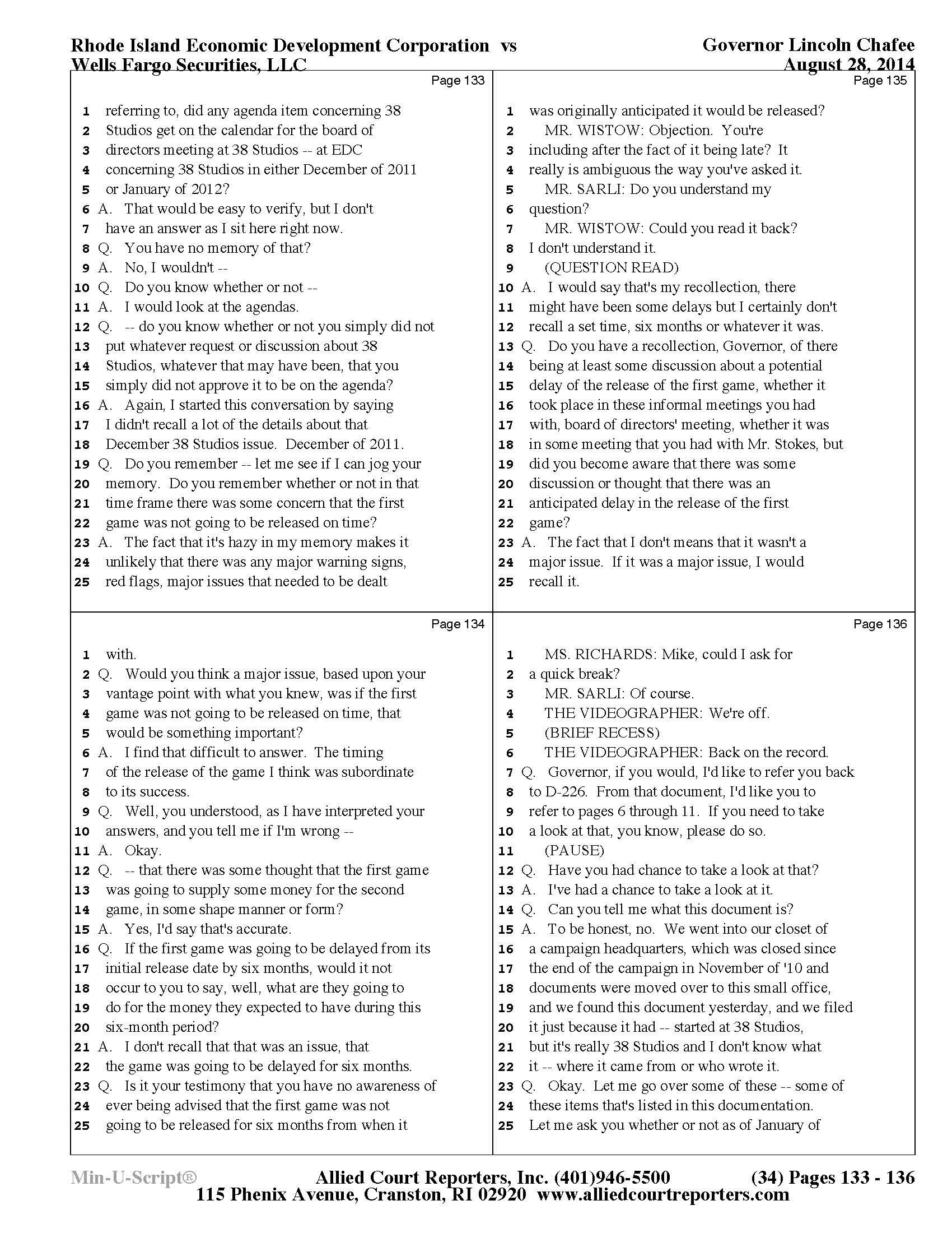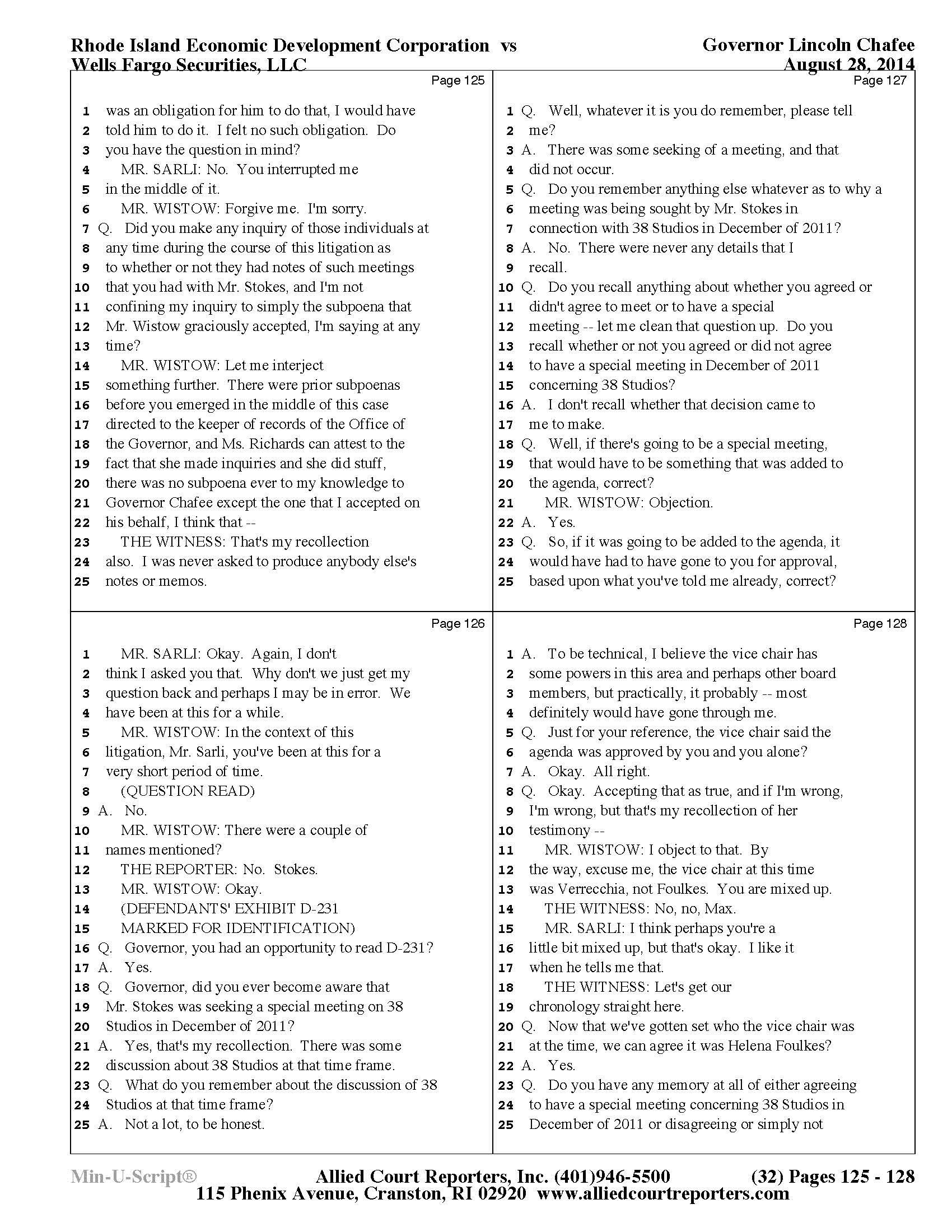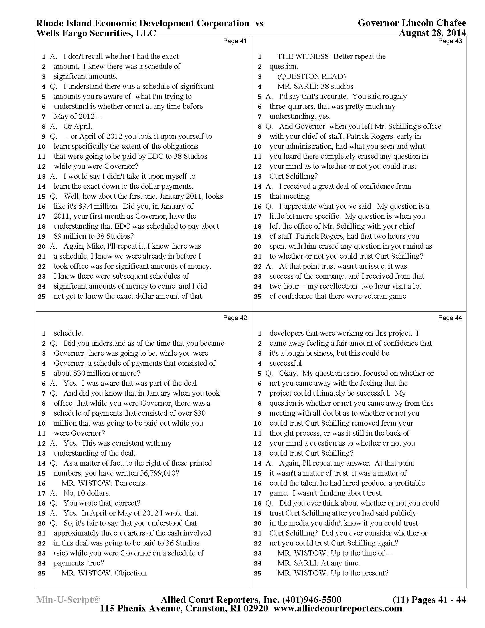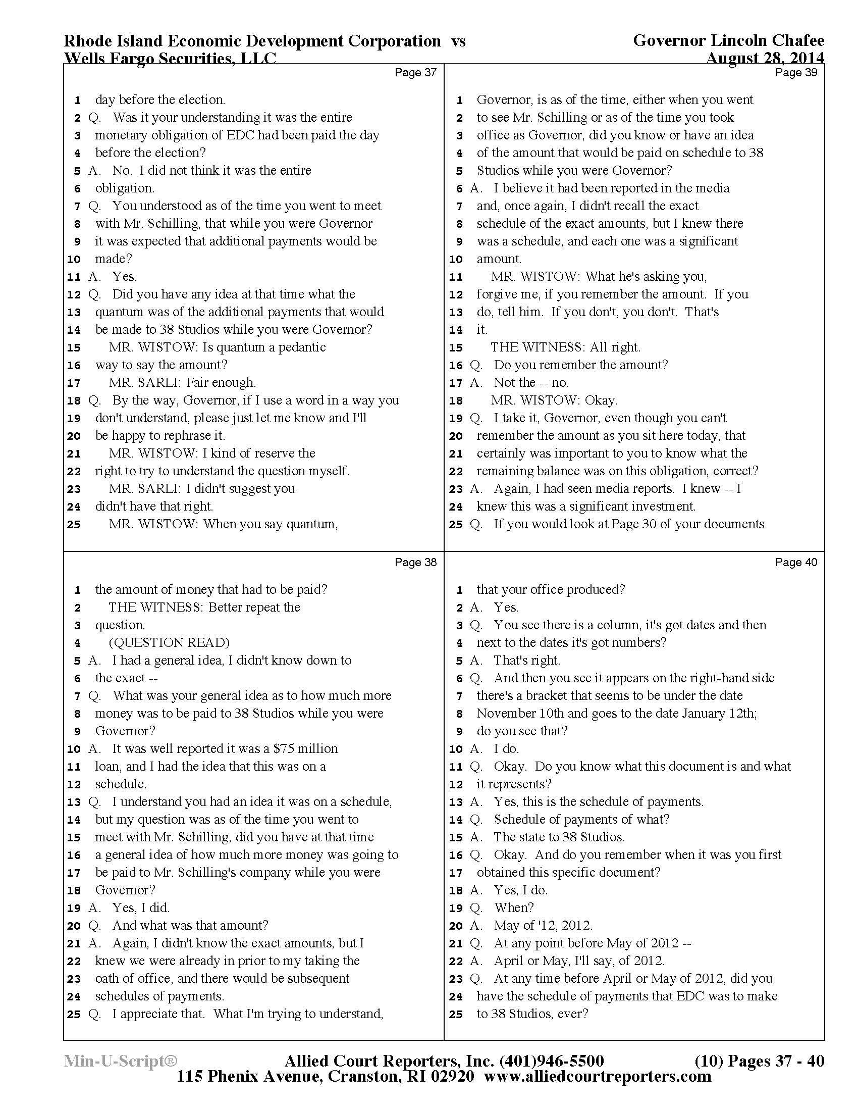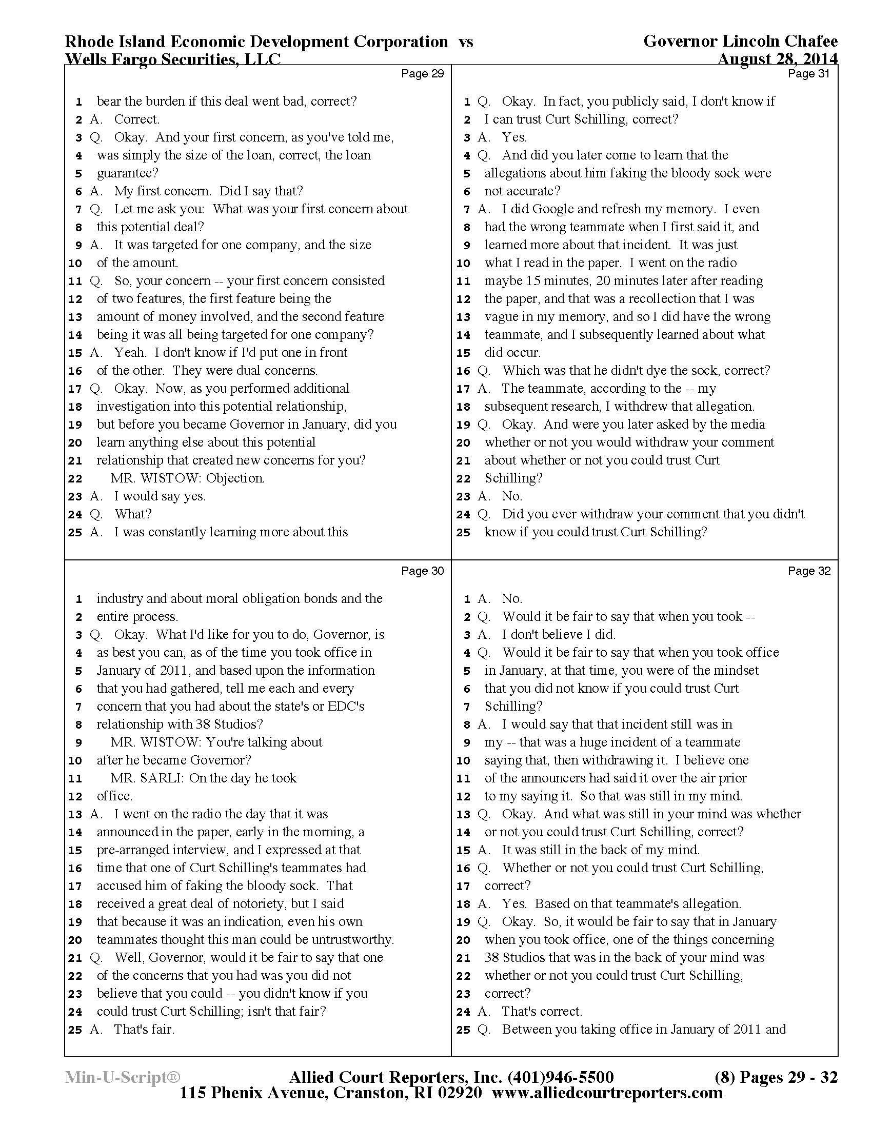 Gov. Lincoln Chafee's 38 Studios Deposition and Exhibits