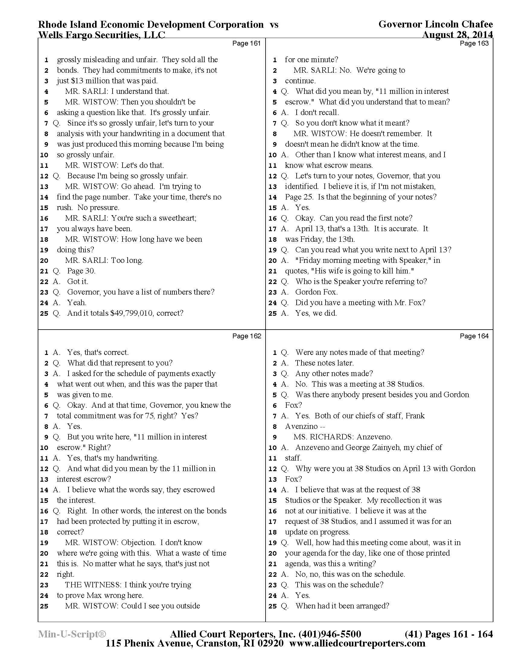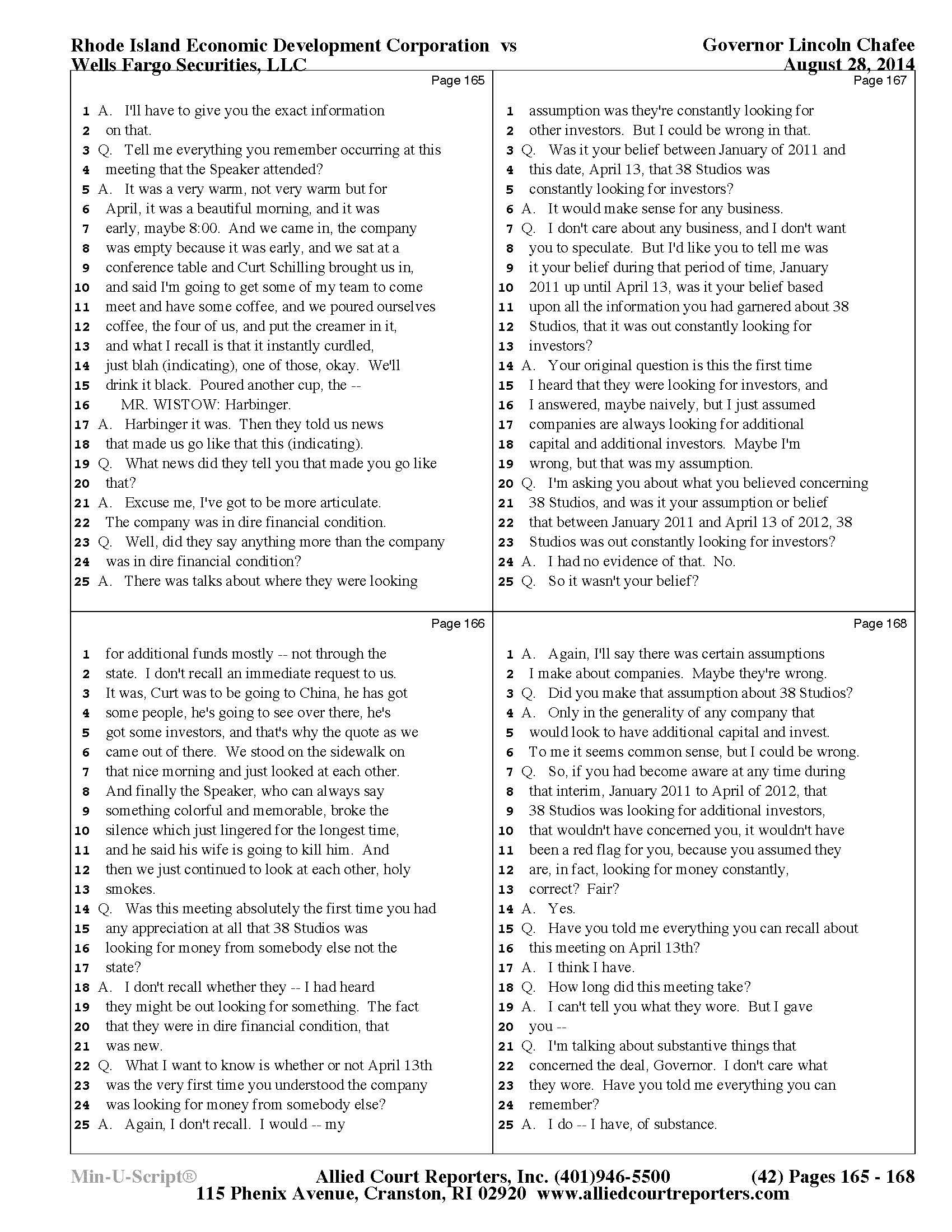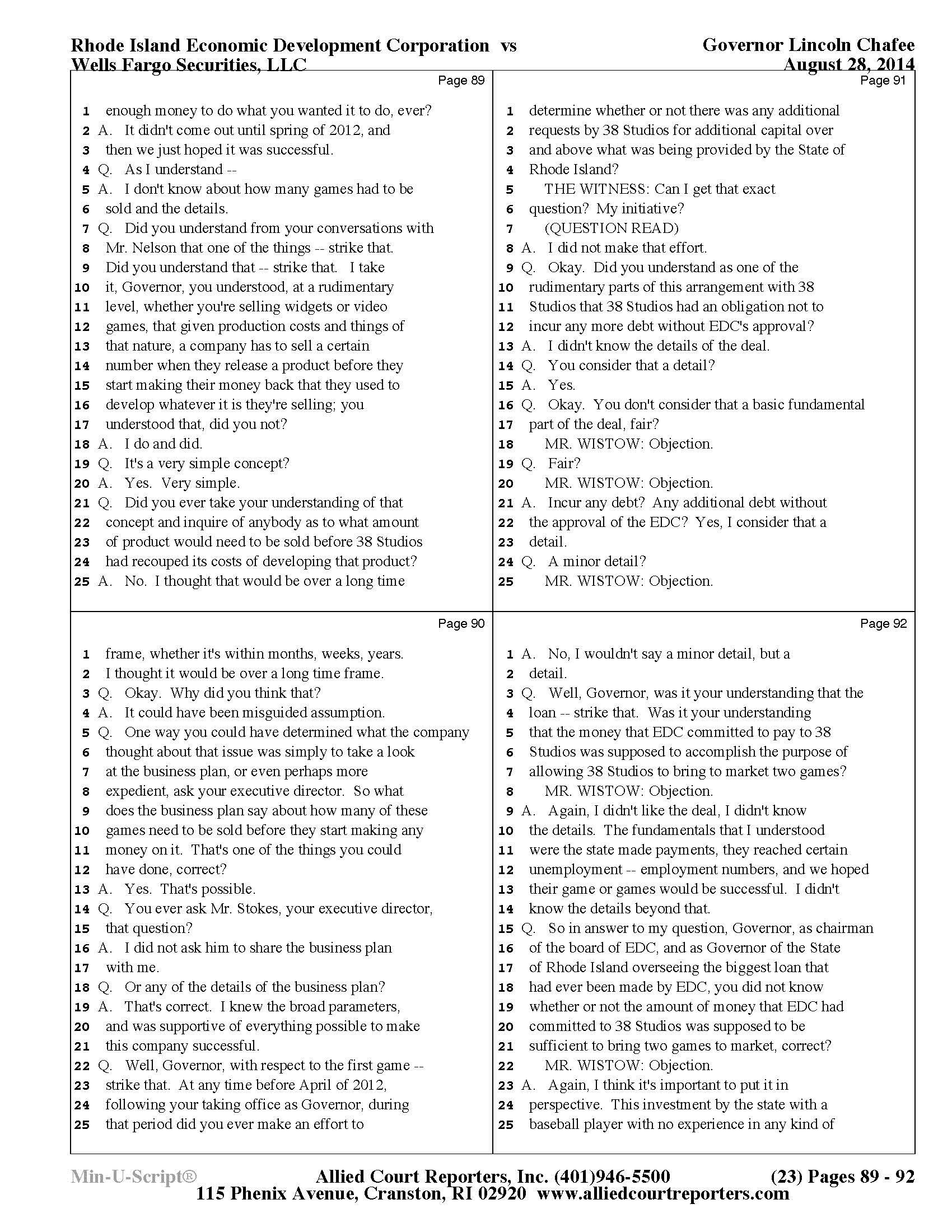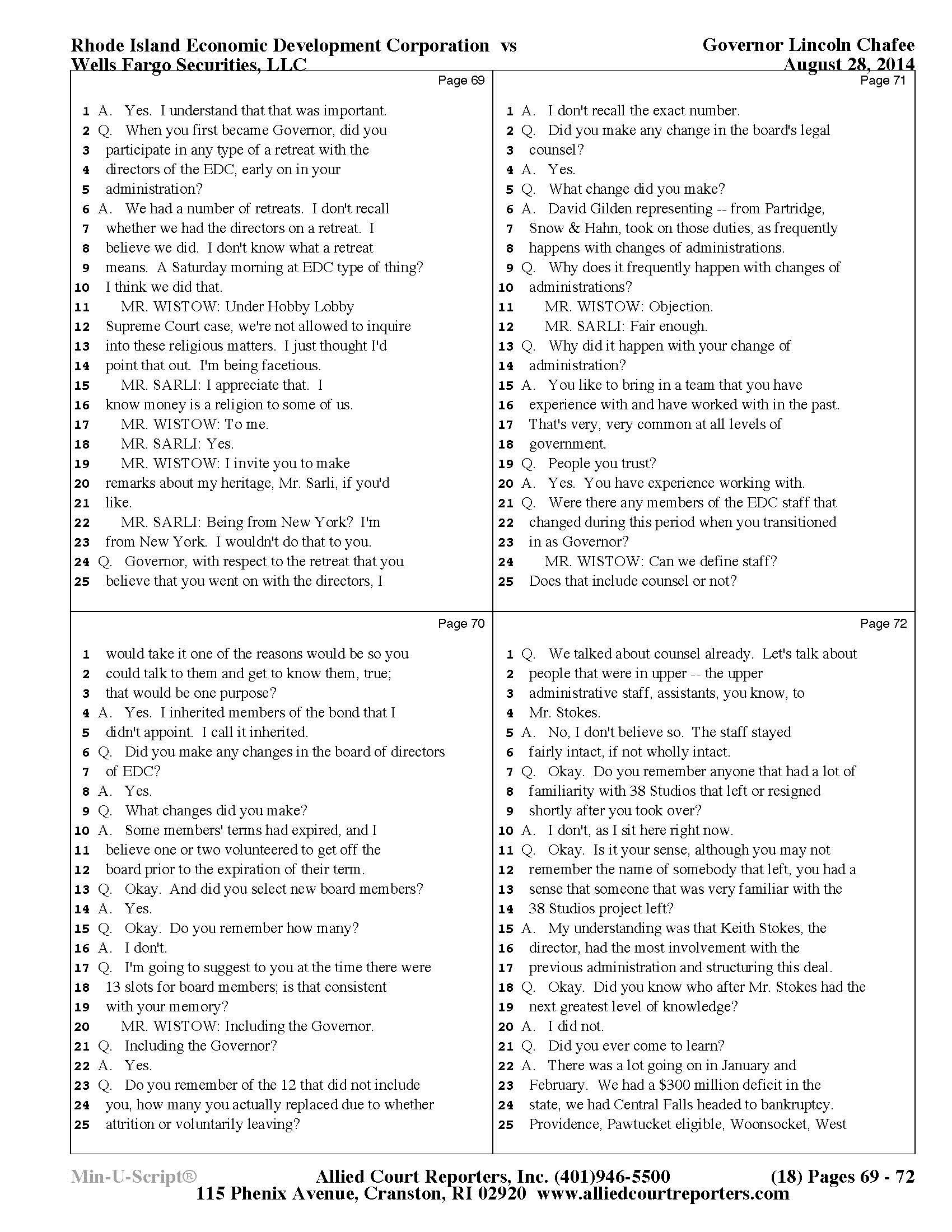 Gov. Lincoln Chafee's 38 Studios Deposition and Exhibits