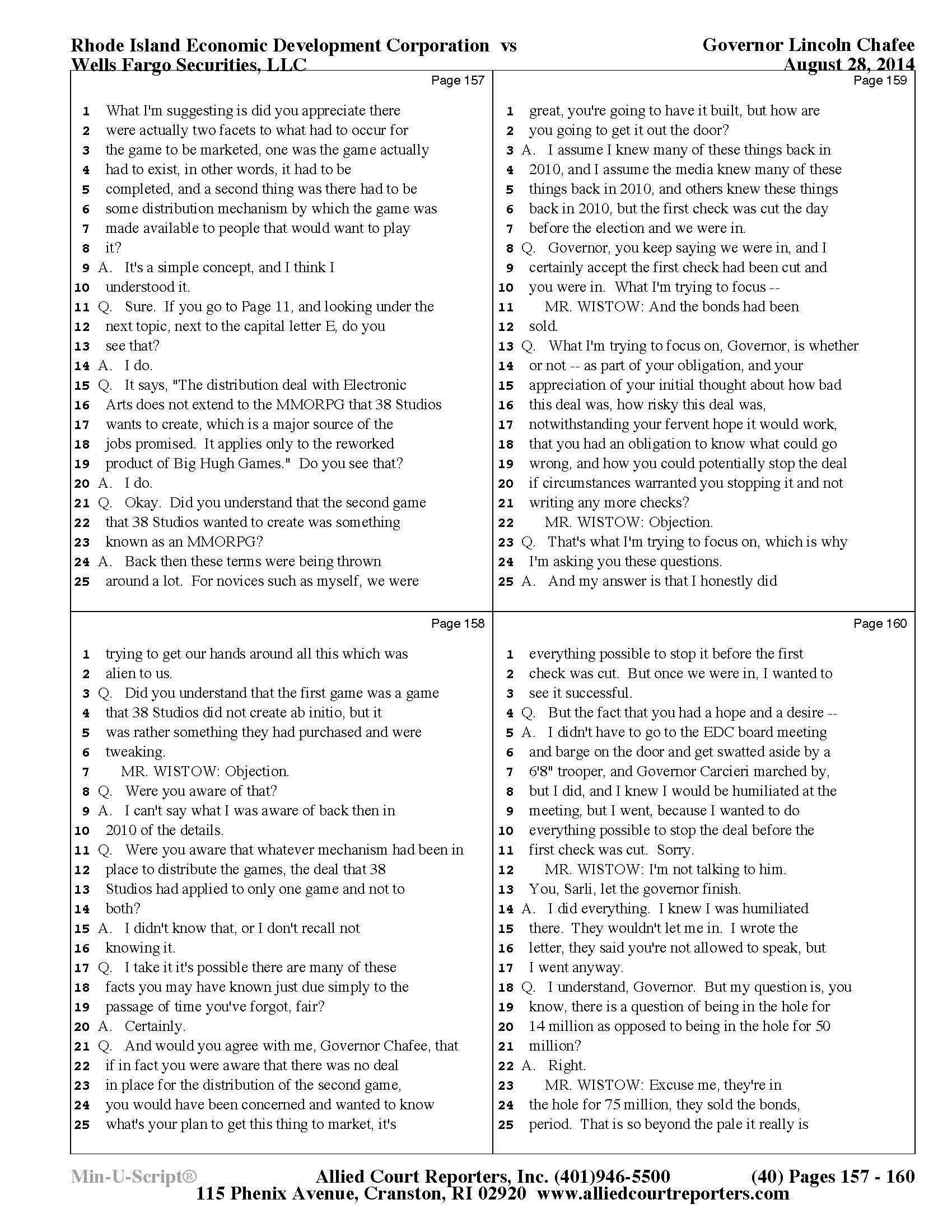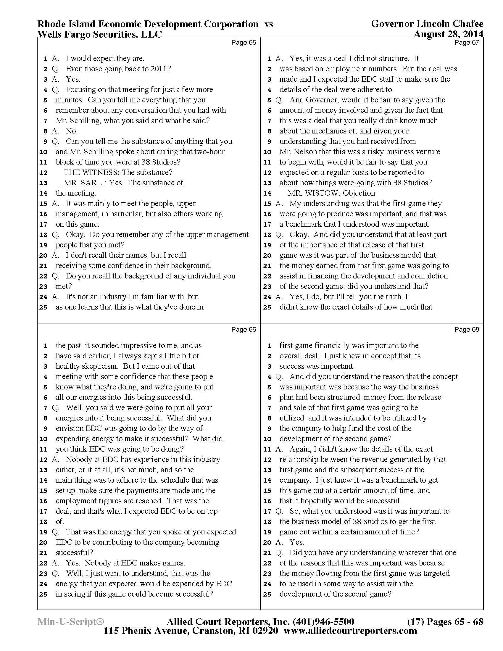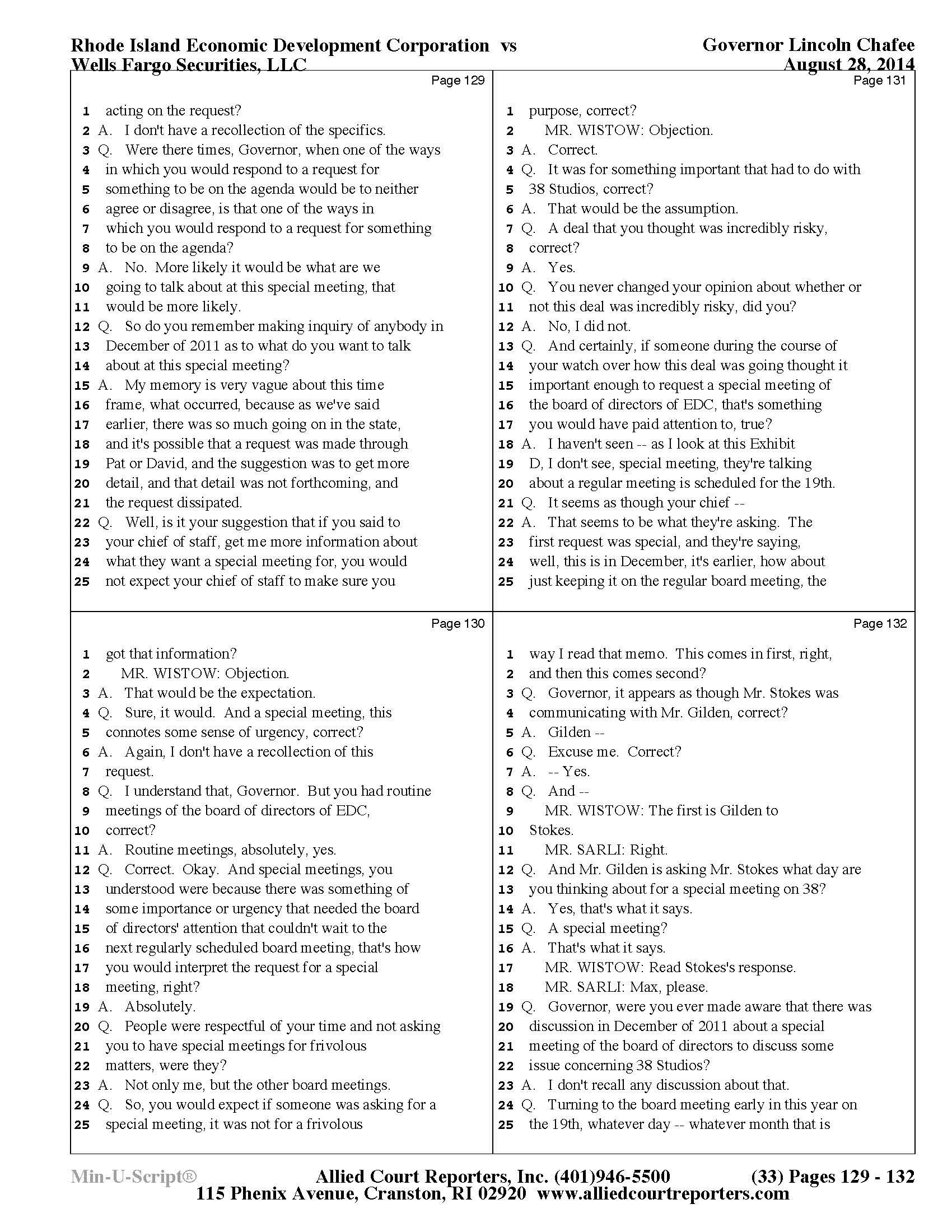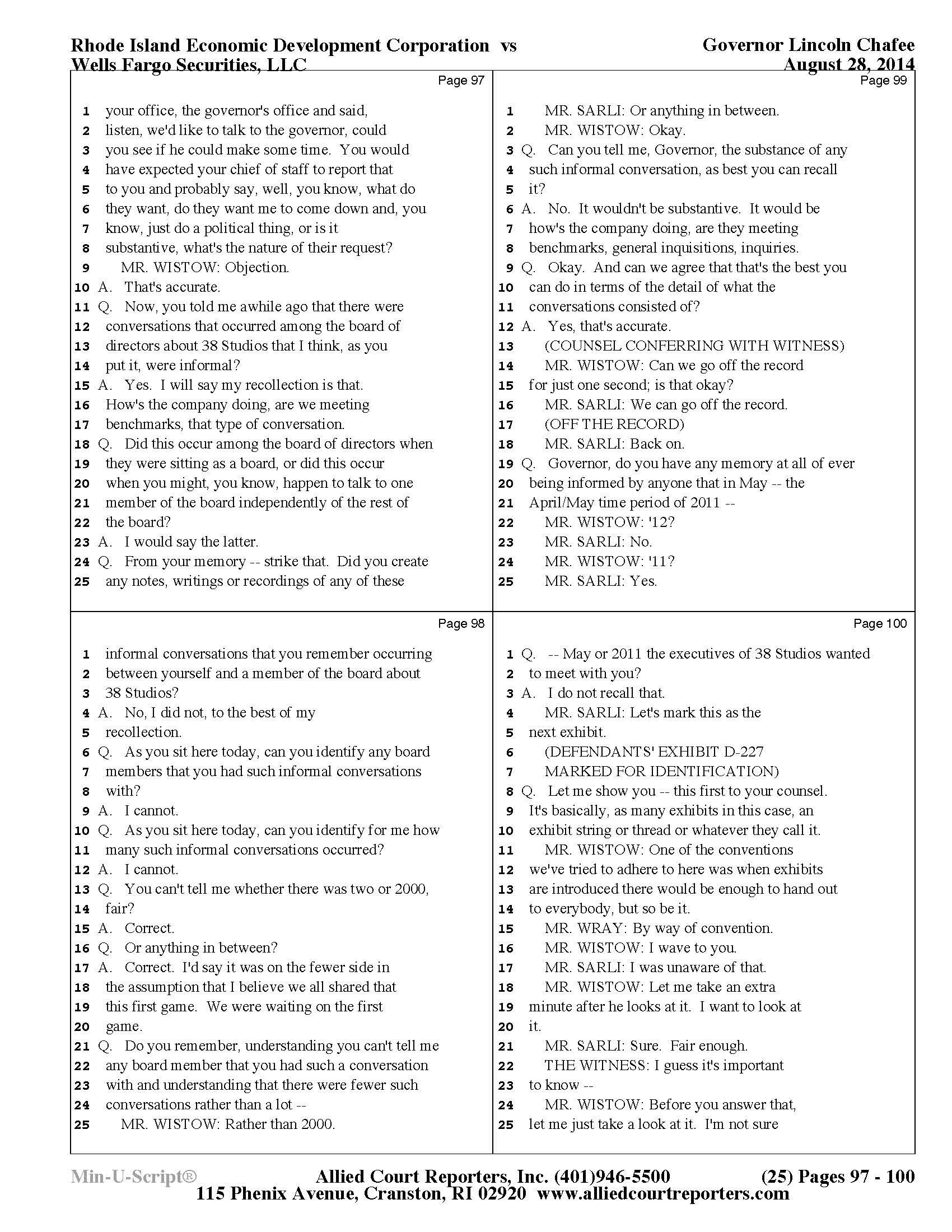 Gov. Lincoln Chafee's 38 Studios Deposition and Exhibits