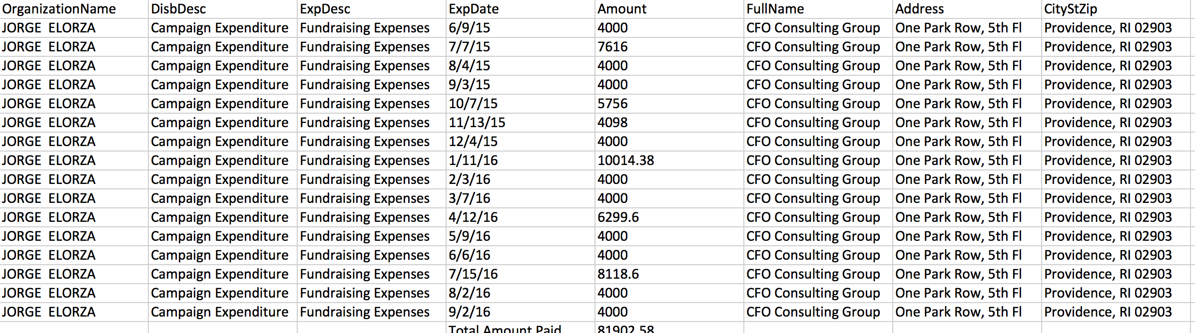Smiley’s firm CFO Consulting Group, LLC (he also started compliance and lobbying firms) has been paid more than $80,000 by Elorza’s campaign during the past two years and including payments made during the period of time that Smiley has served as Raimondo’s top staffer this year.