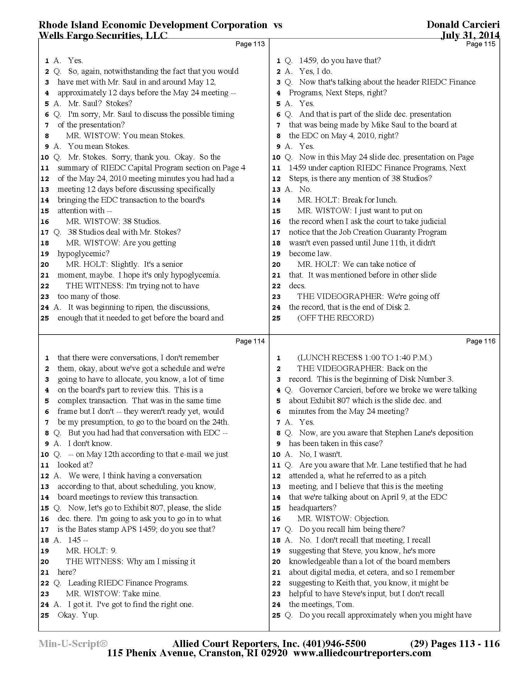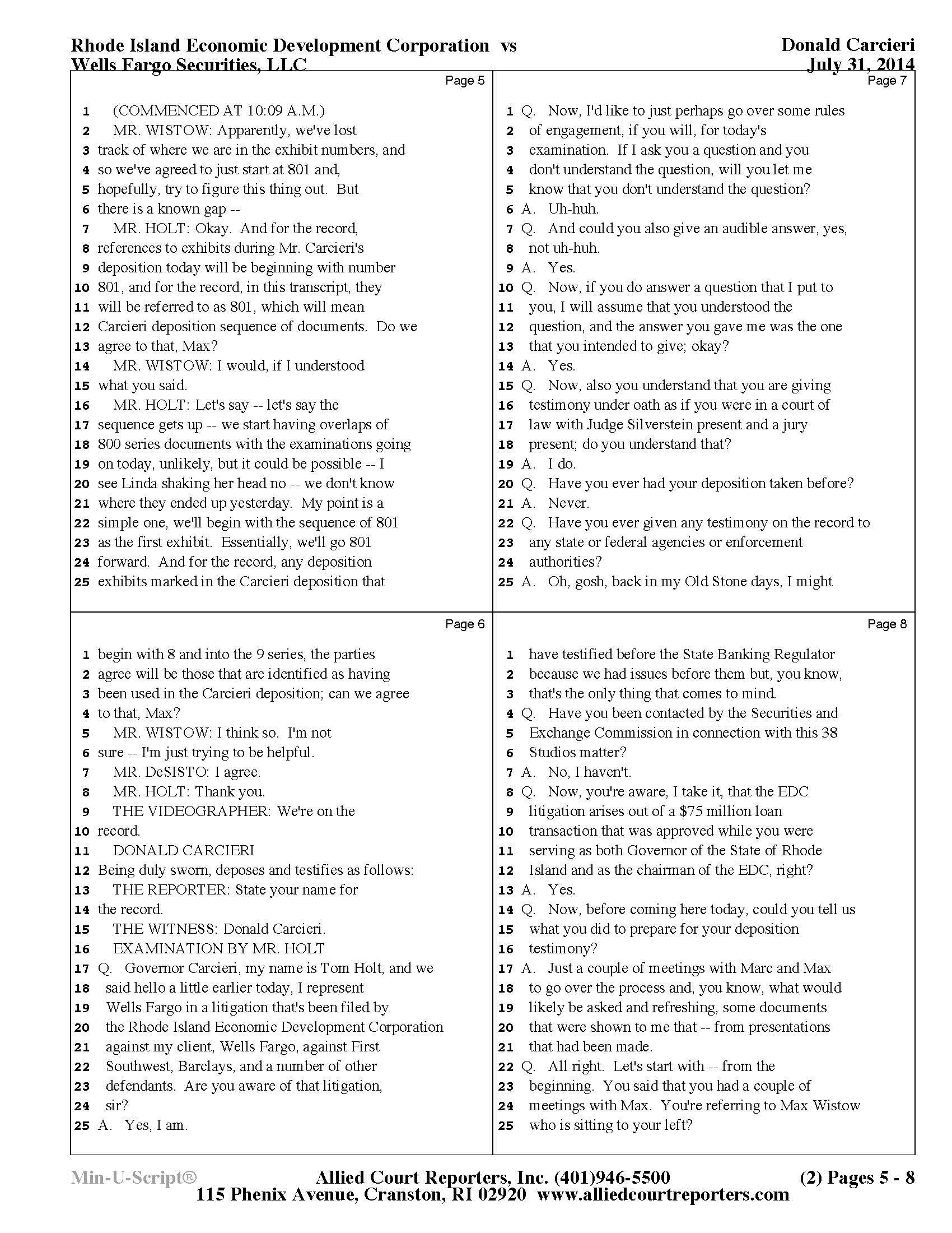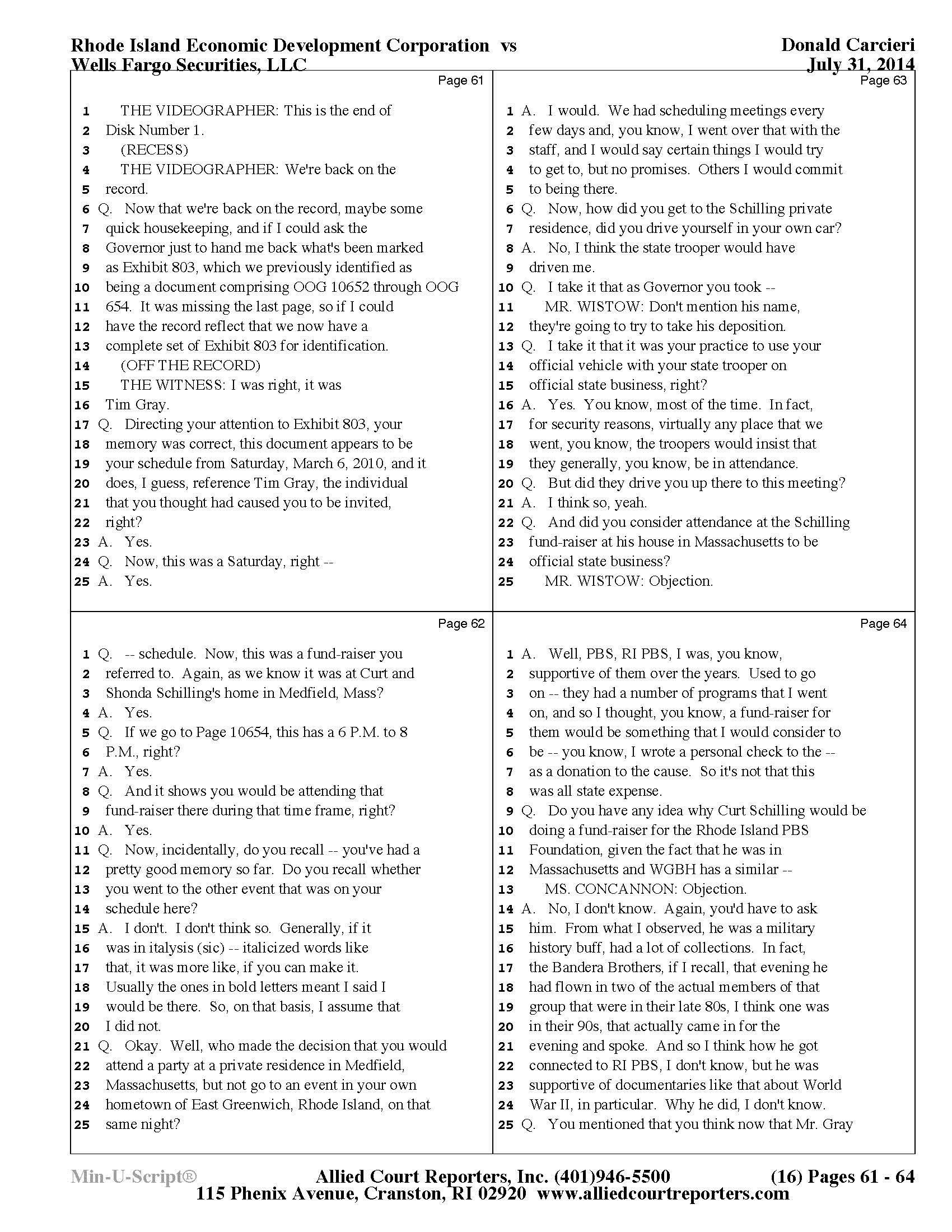 Carcieri's First Day Deposition - SEE SLIDESHOW BELOW
