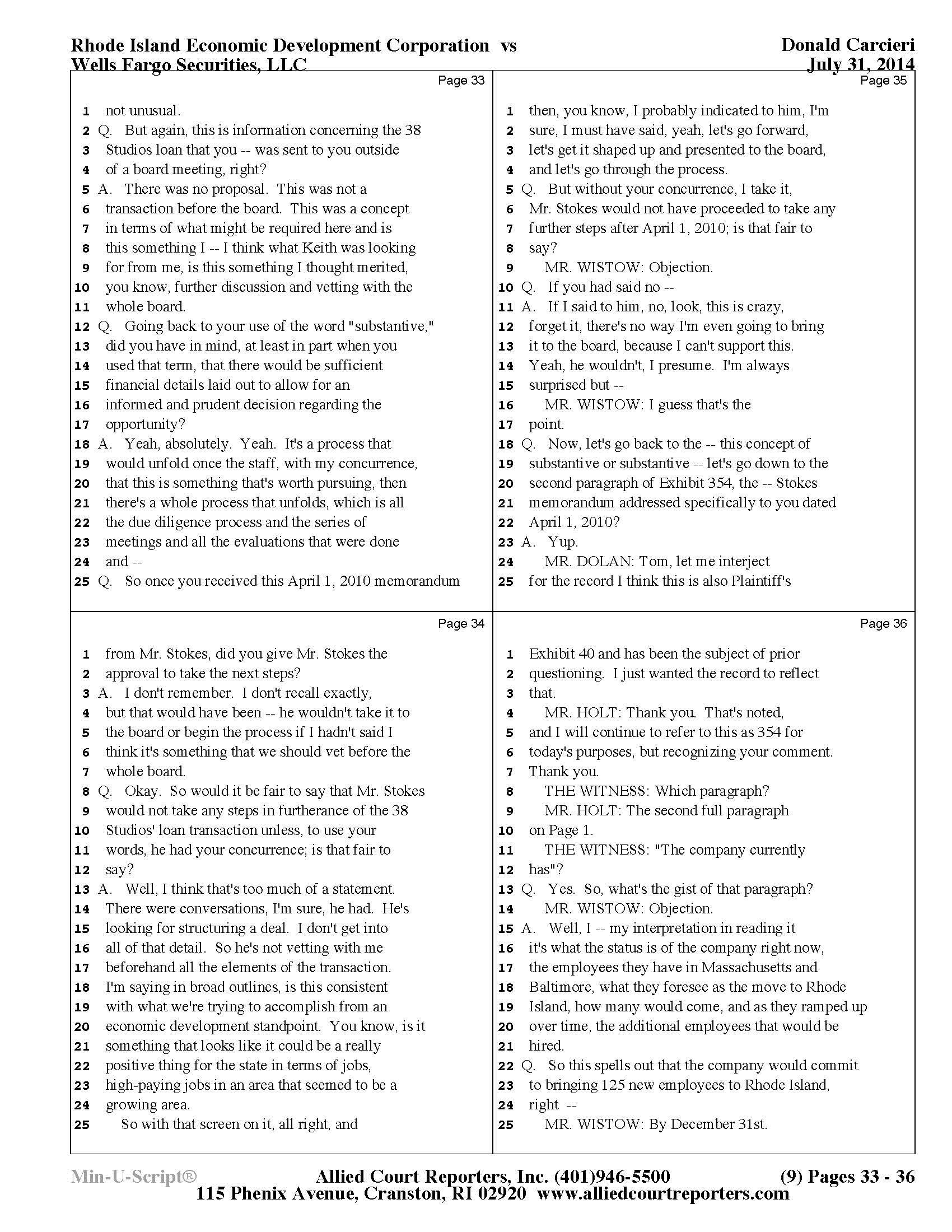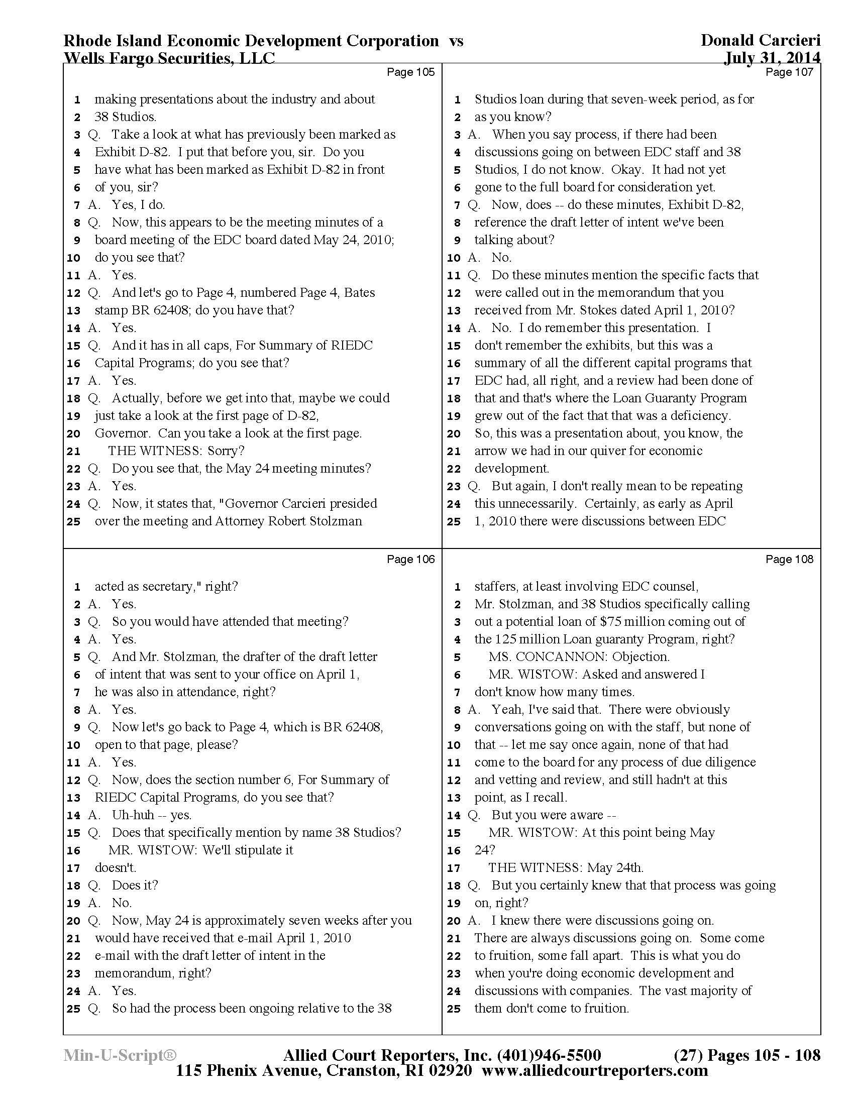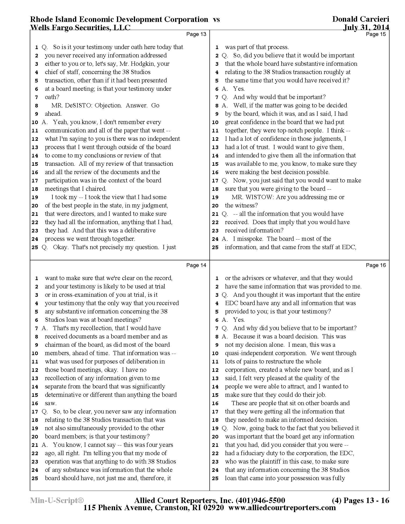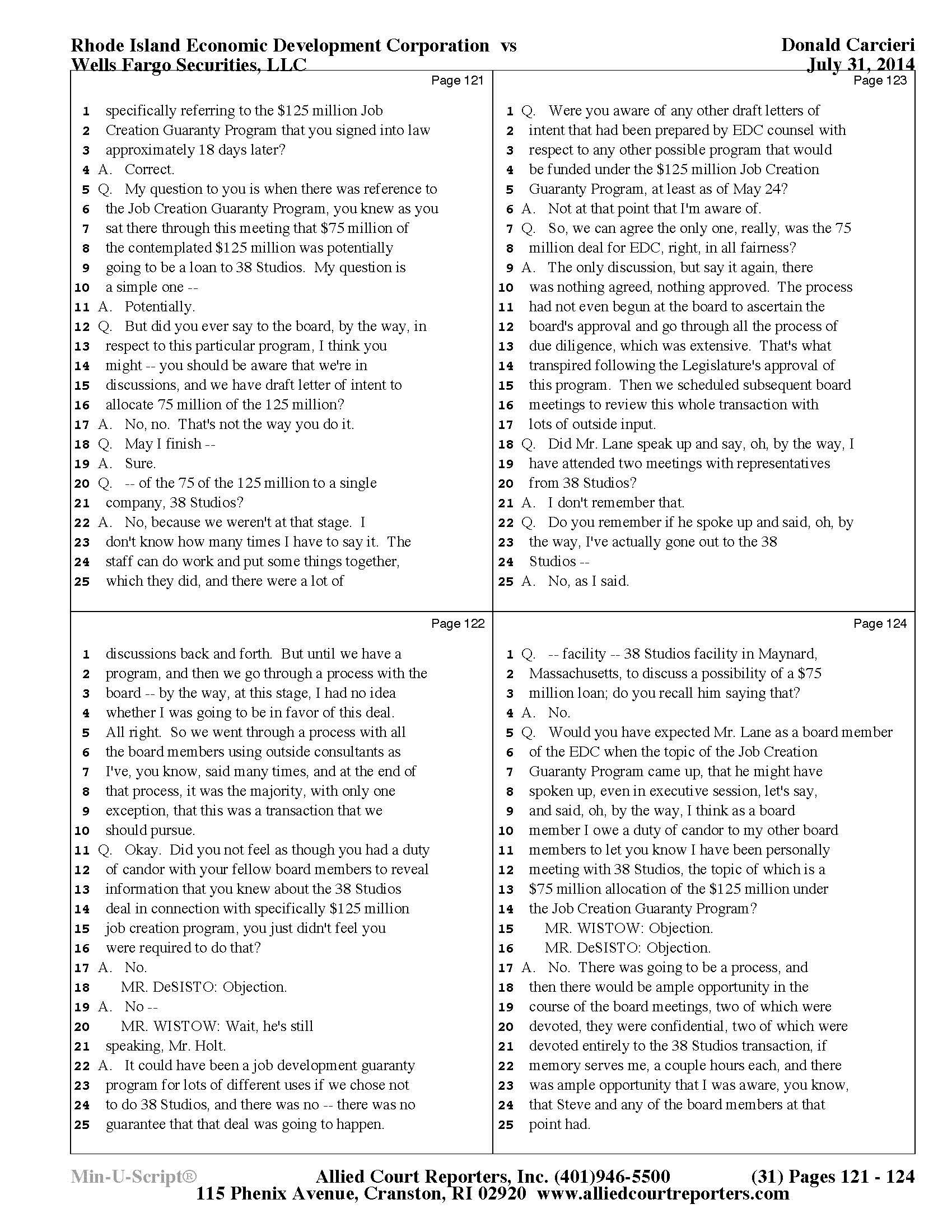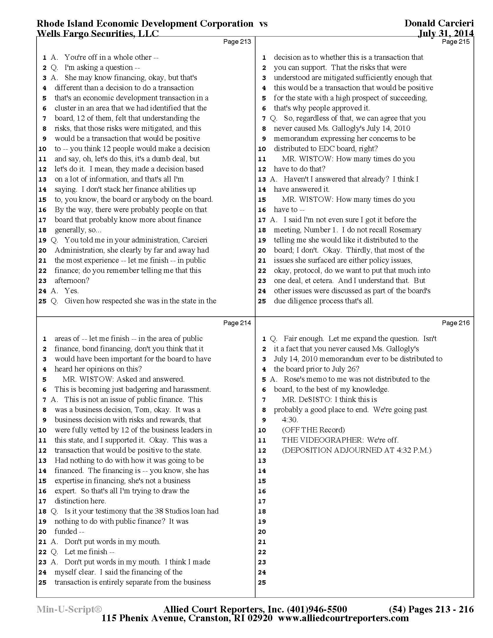 The depositions unveil real questions about the state's failure to analyze the 38 Studios' deal. Carcieri a former top executive at Old Stone Bank and Cookson, served as the chair of the EDC board when they approved the $75 million funding package.