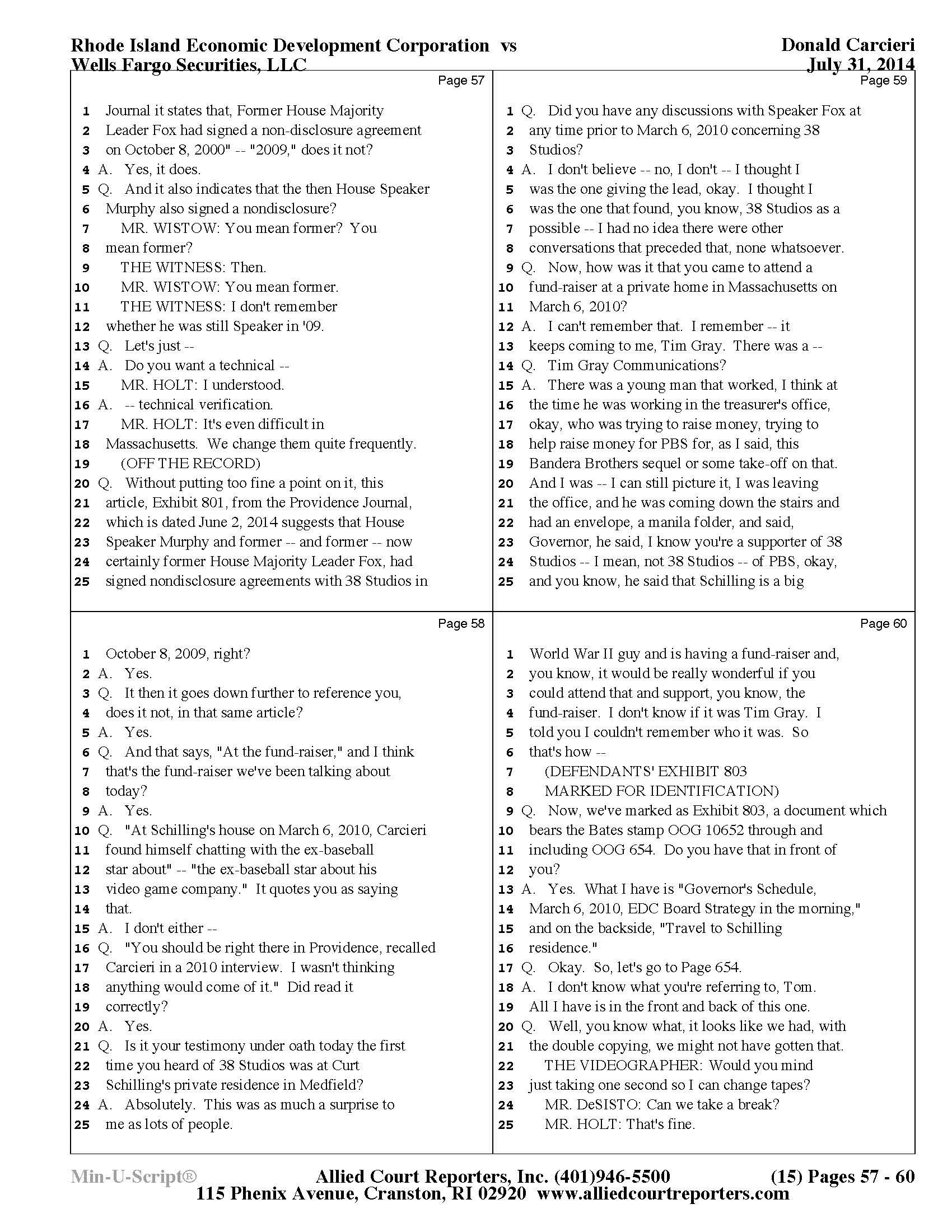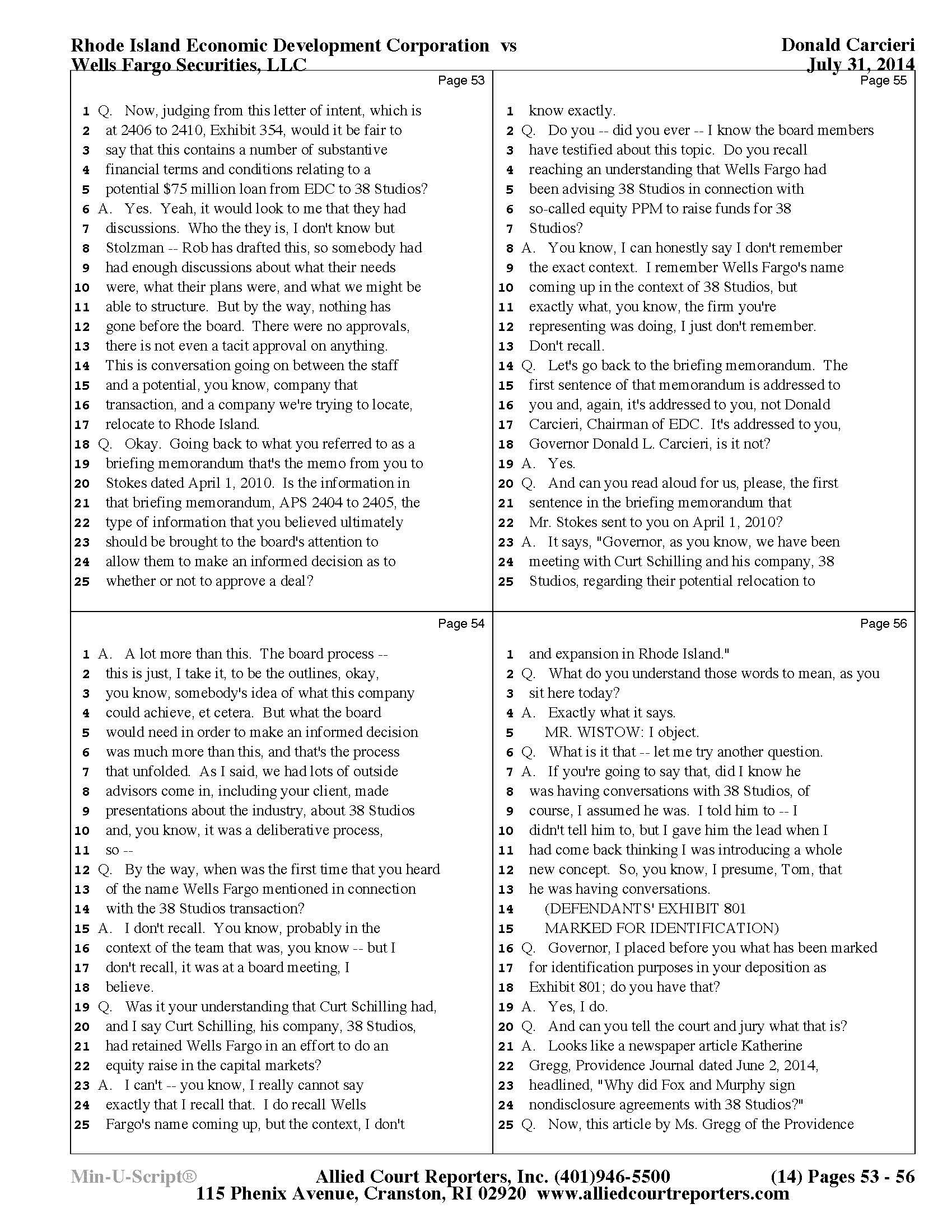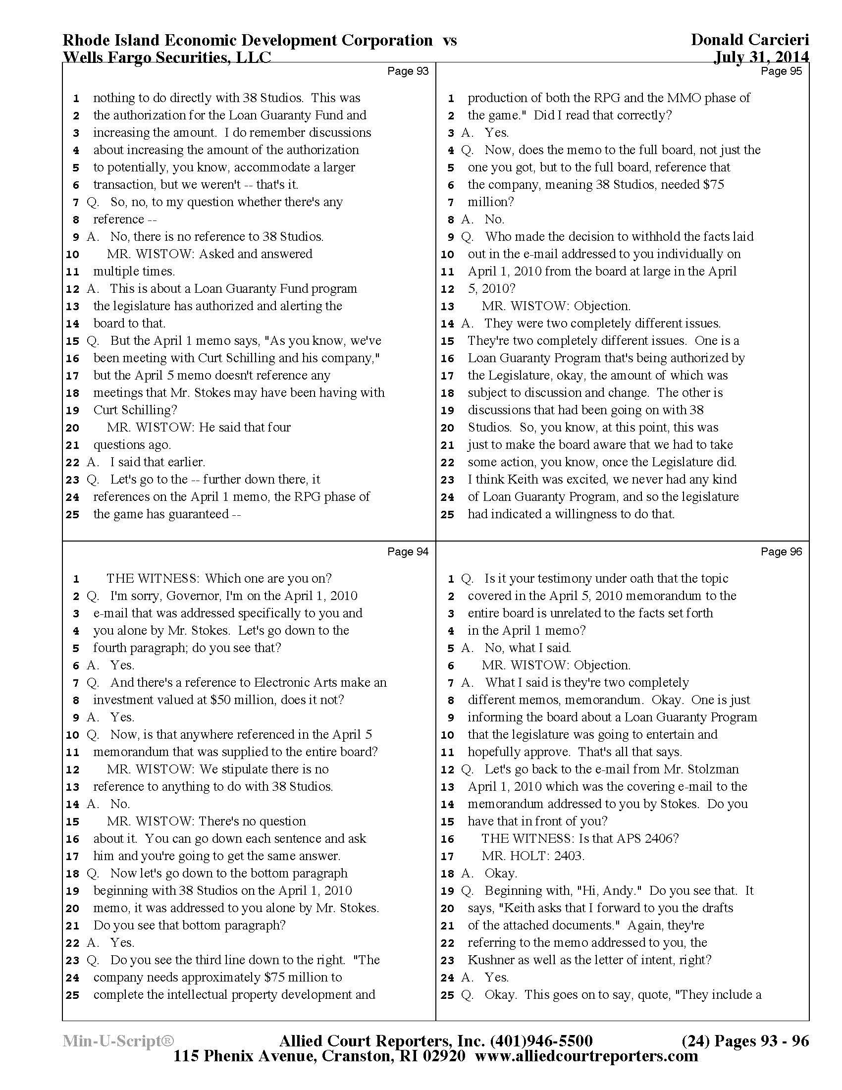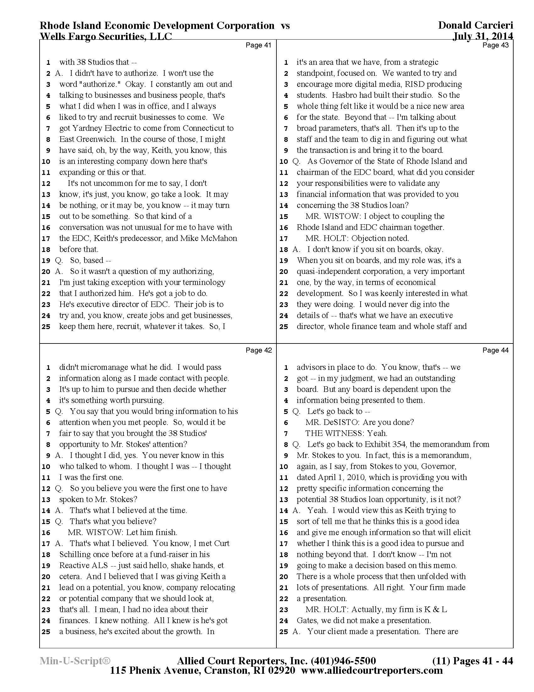 Governor Donald Carcieri's 38 Studios Deposition and Exhibits