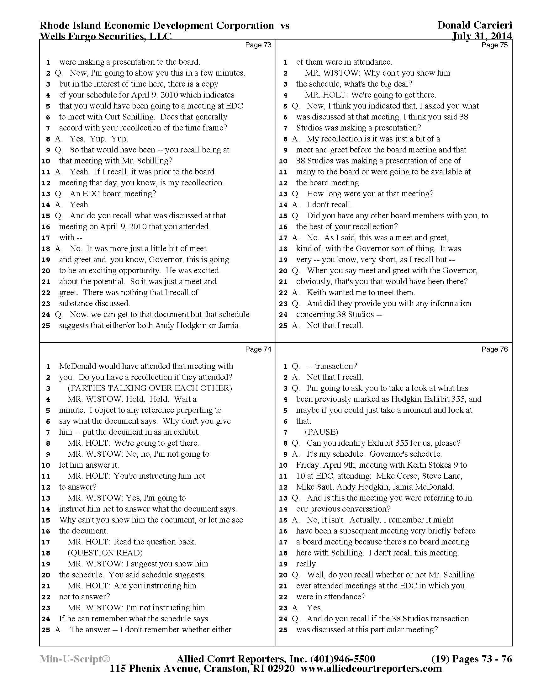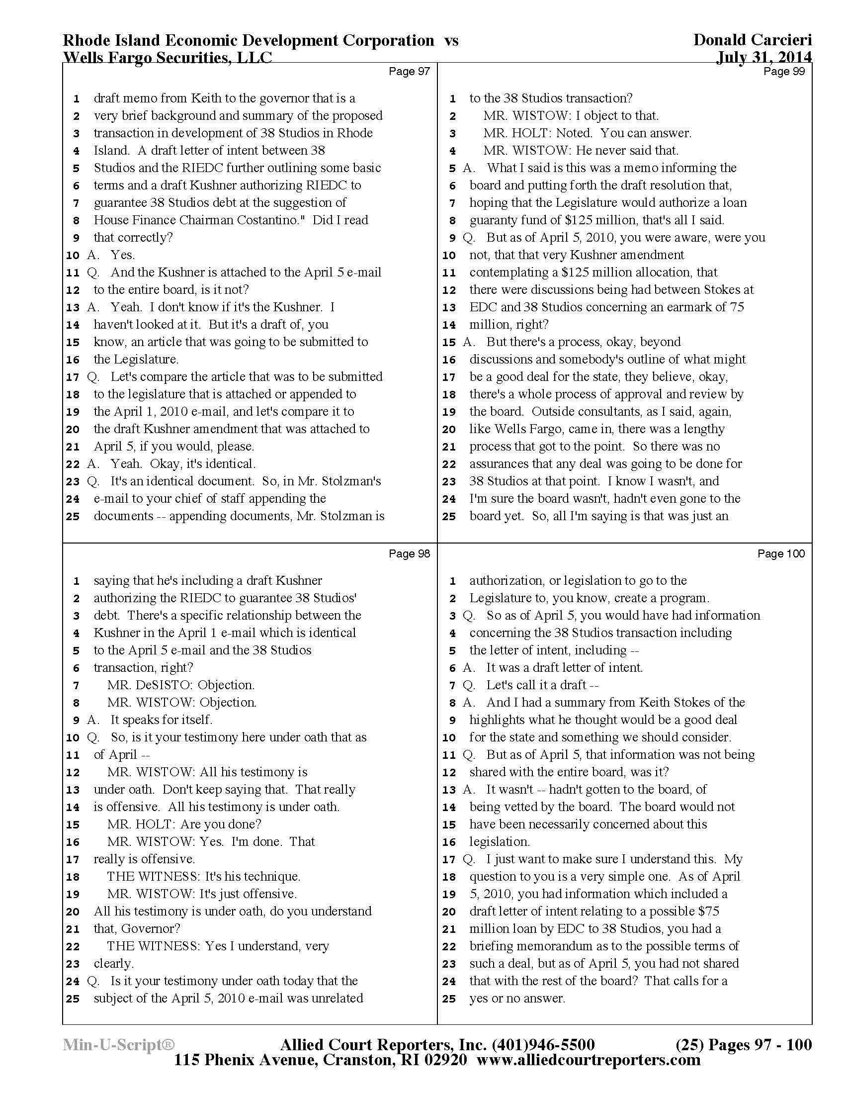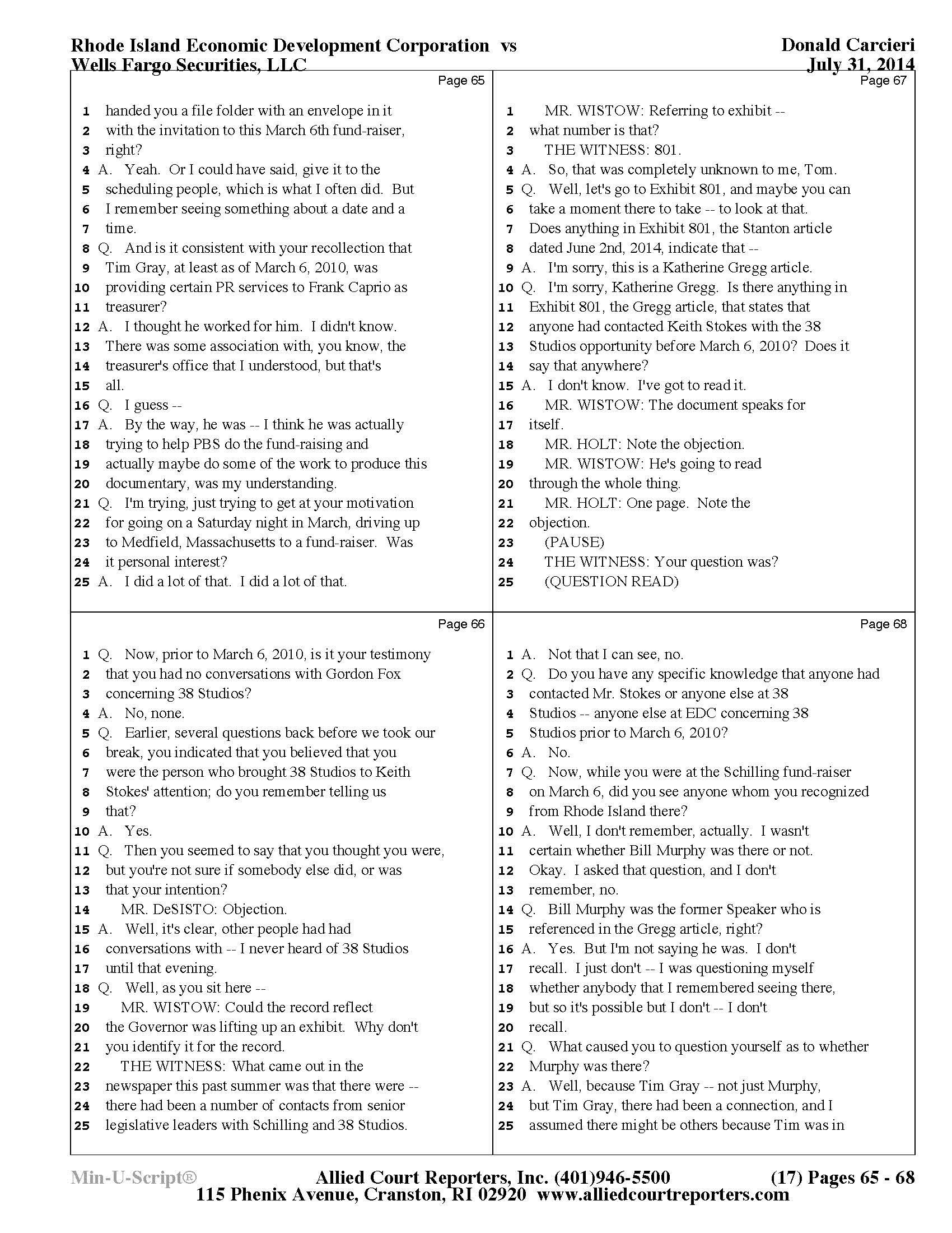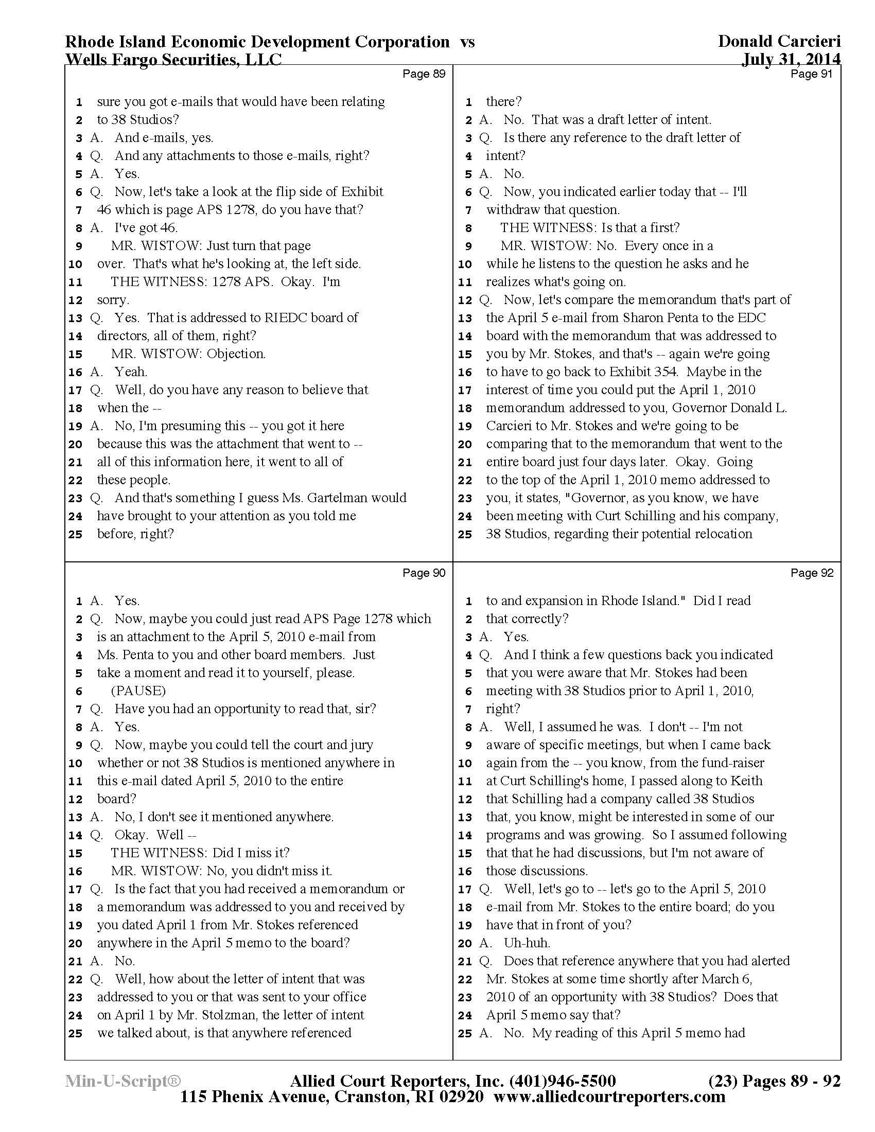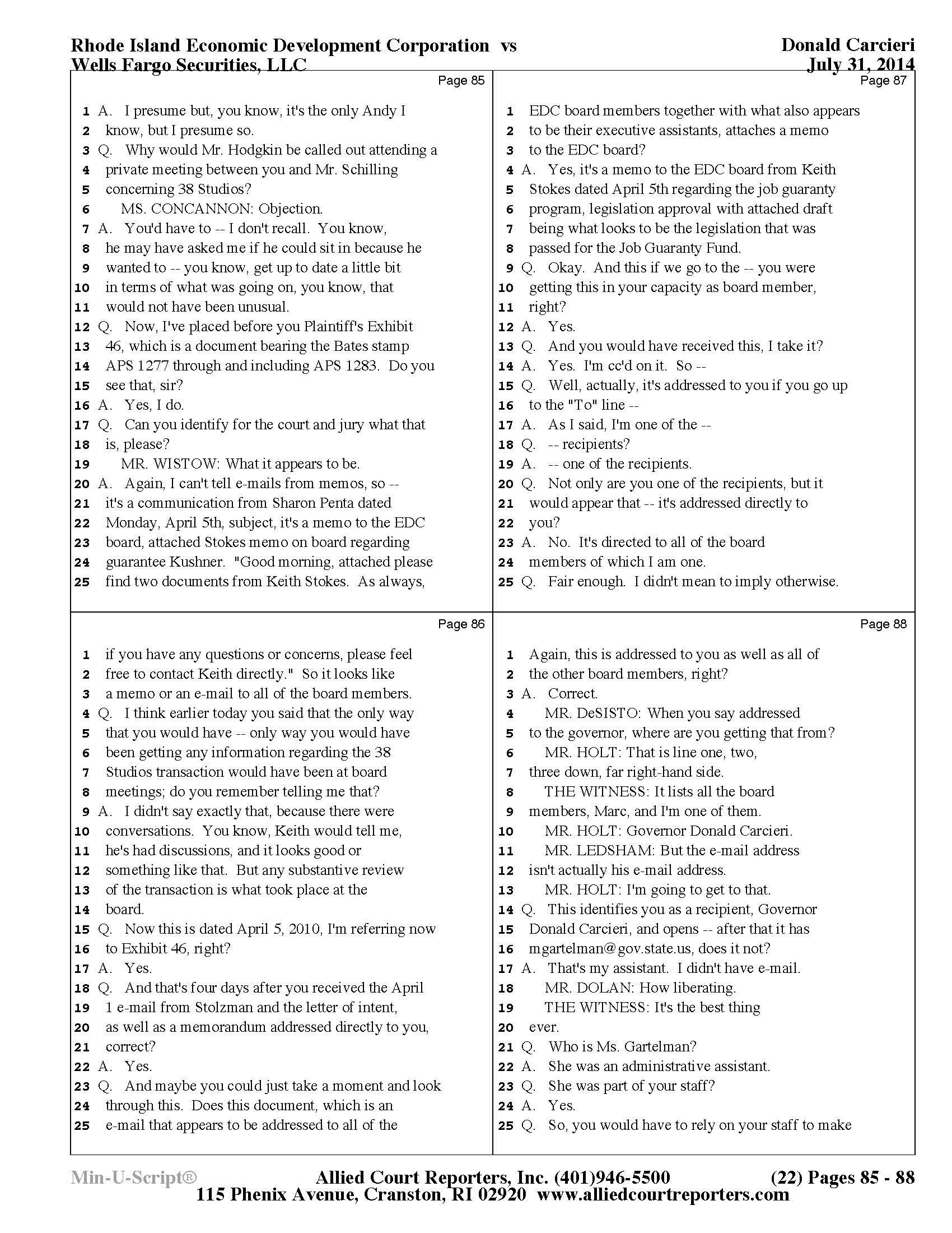 Governor Donald Carcieri's 38 Studios Deposition and Exhibits