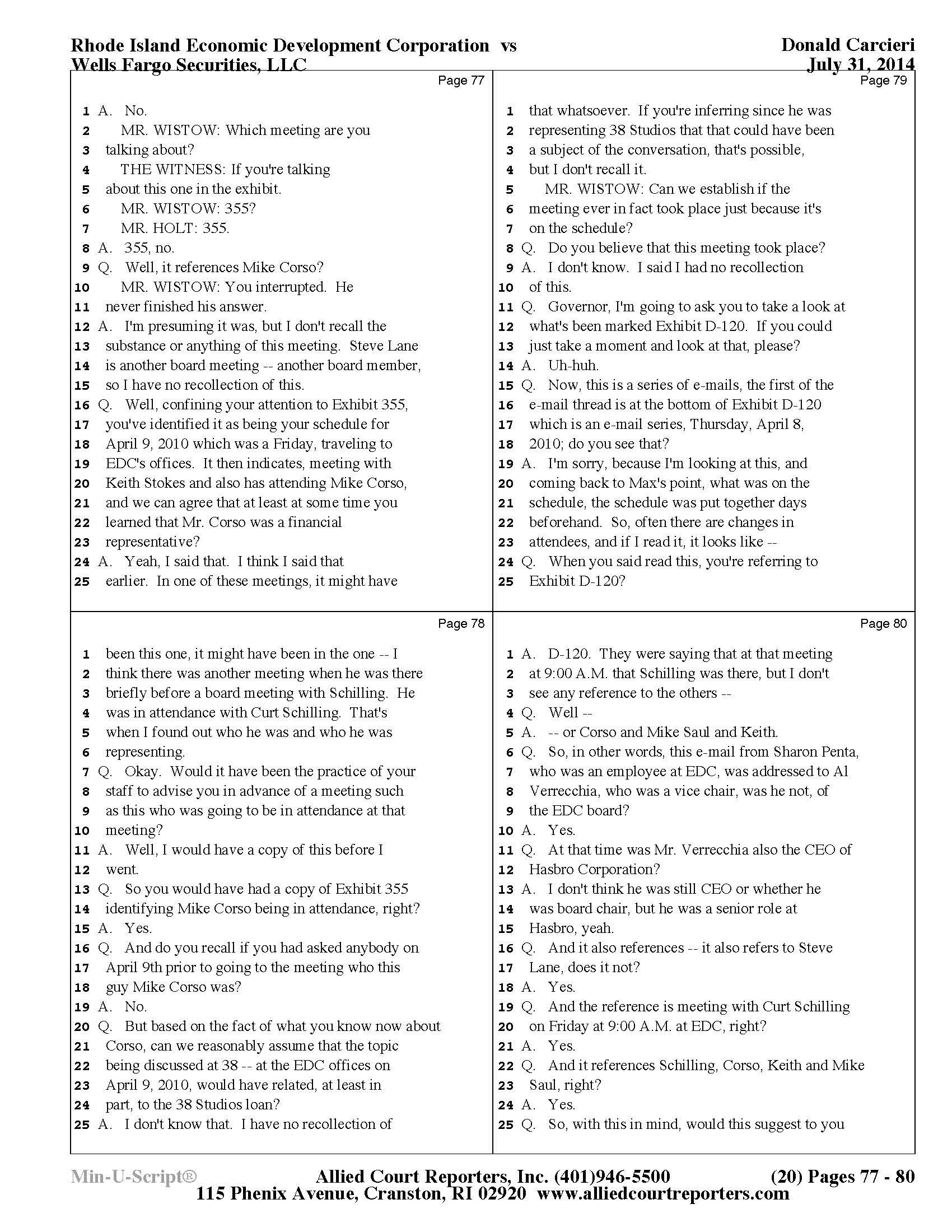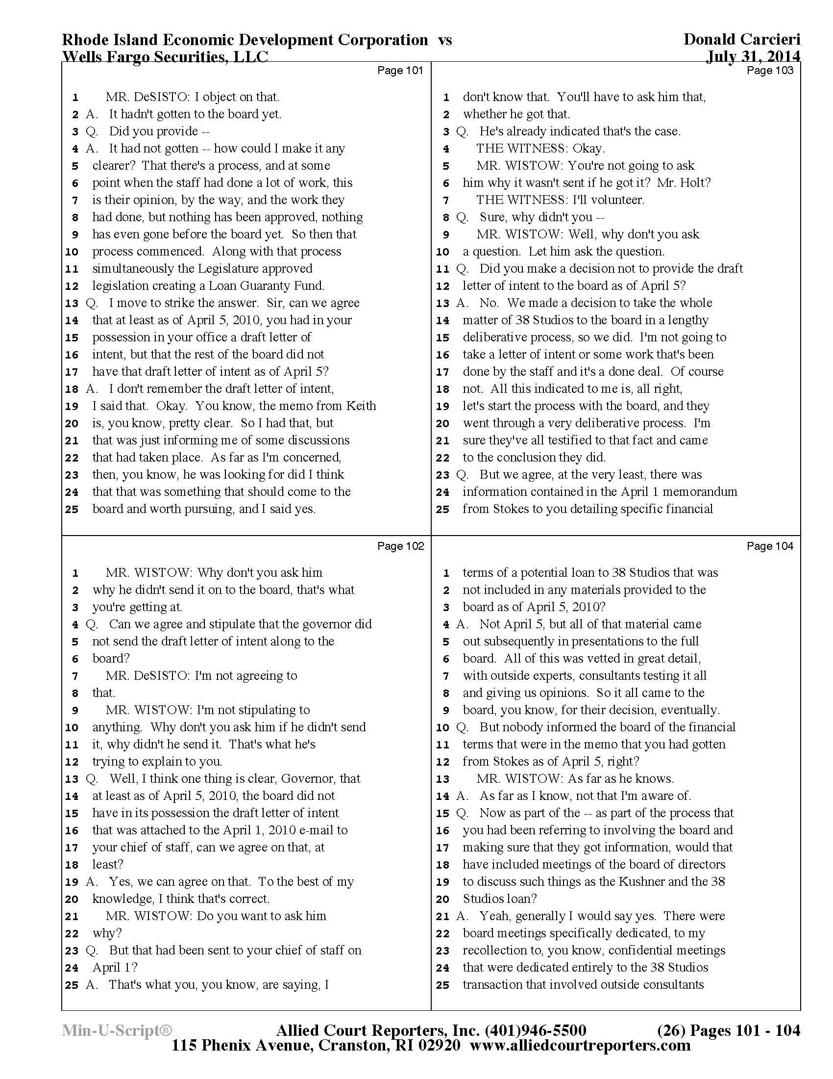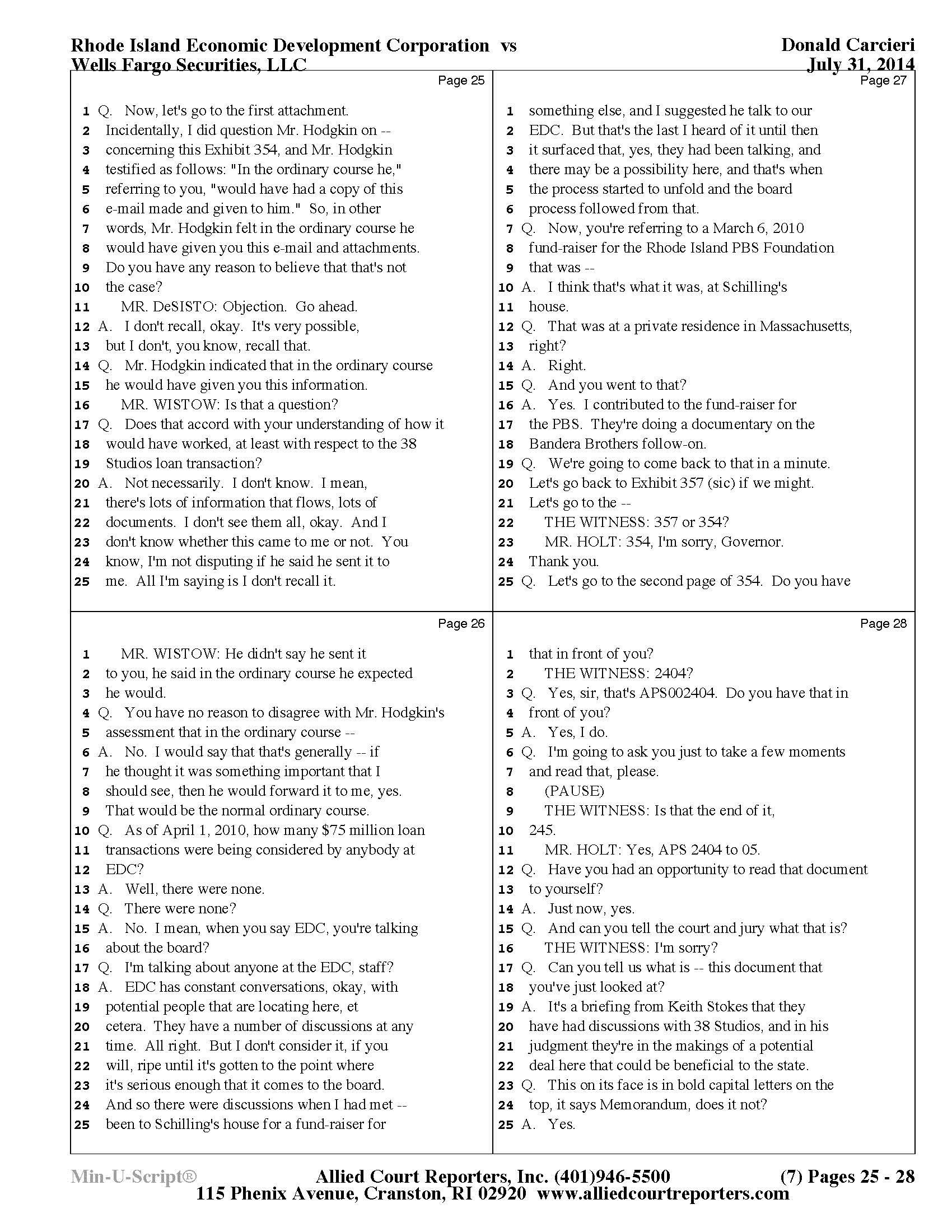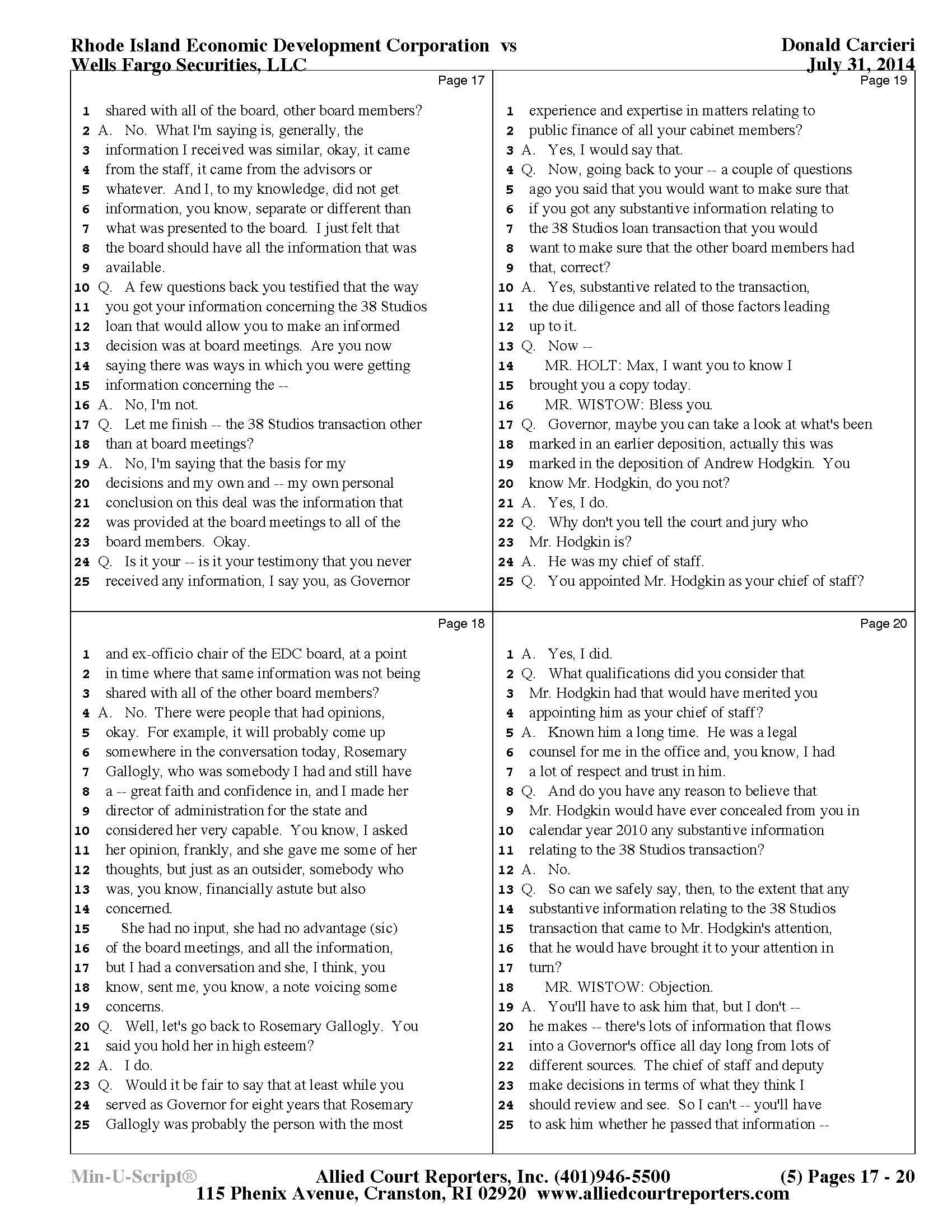 Governor Donald Carcieri's 38 Studios Deposition and Exhibits