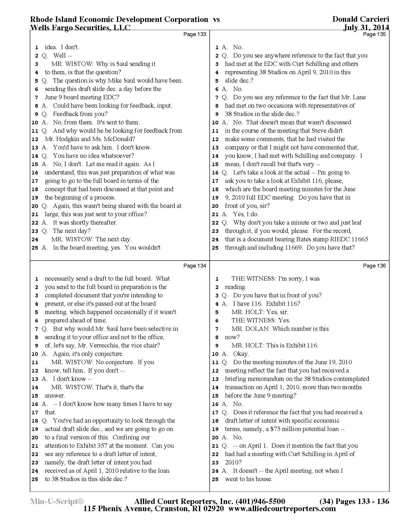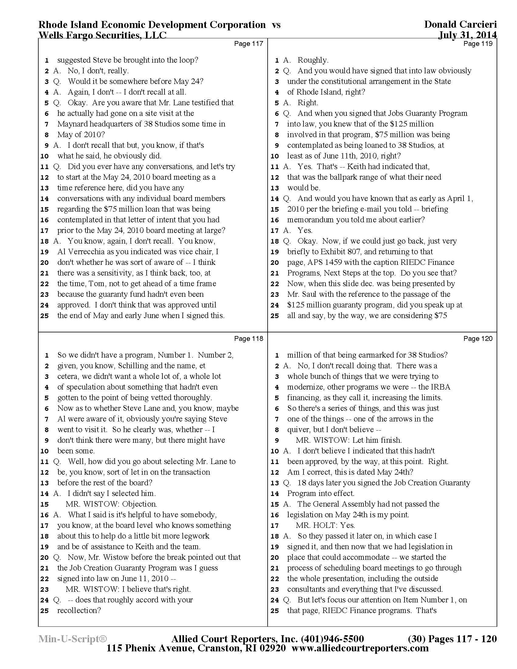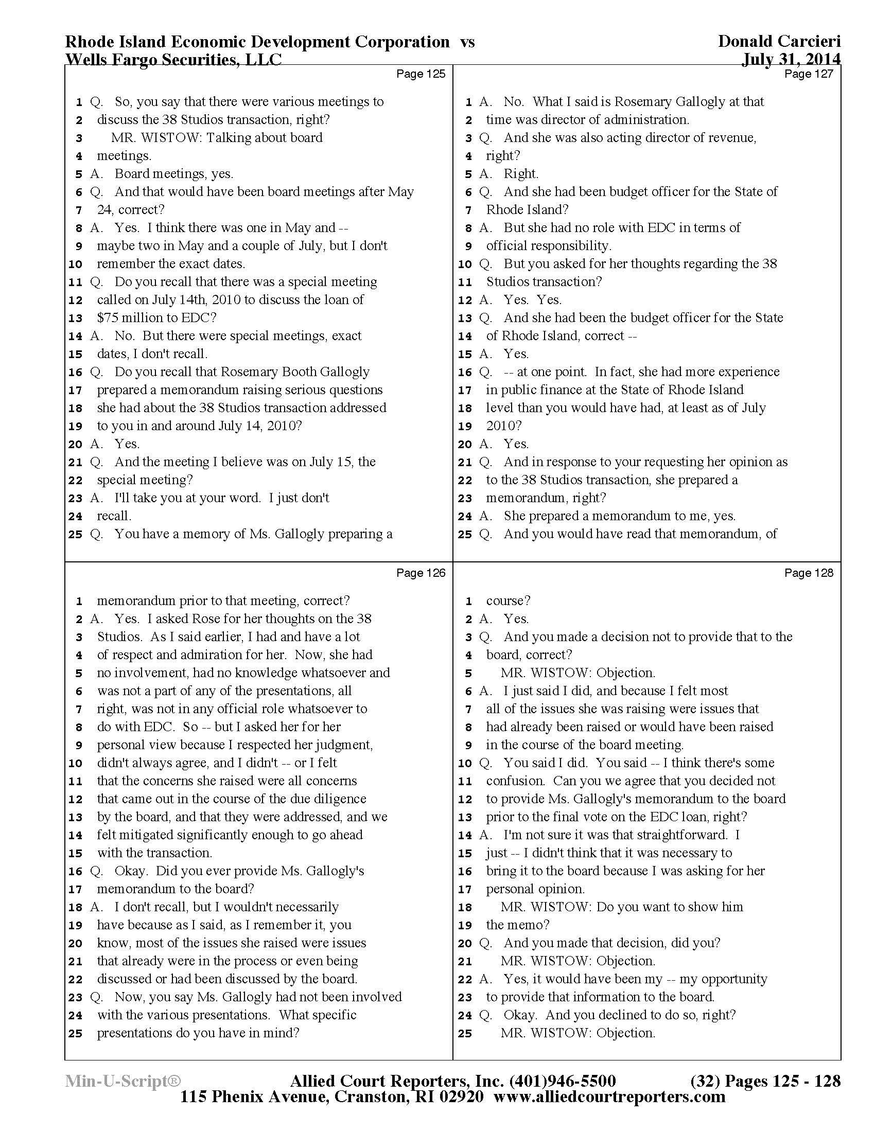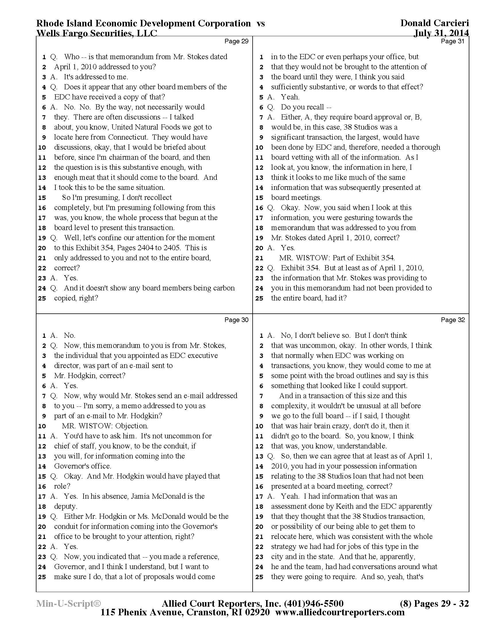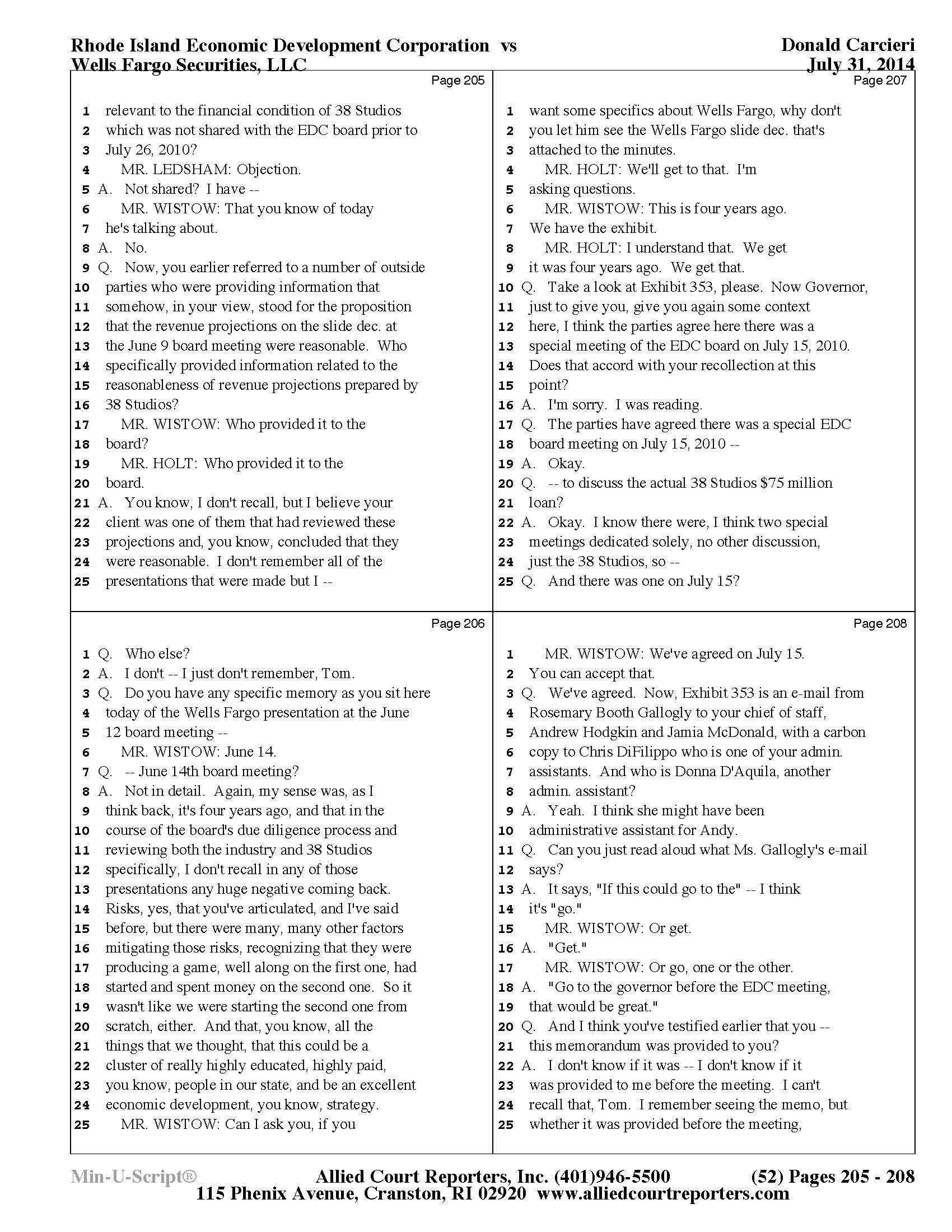 Governor Donald Carcieri's 38 Studios Deposition and Exhibits