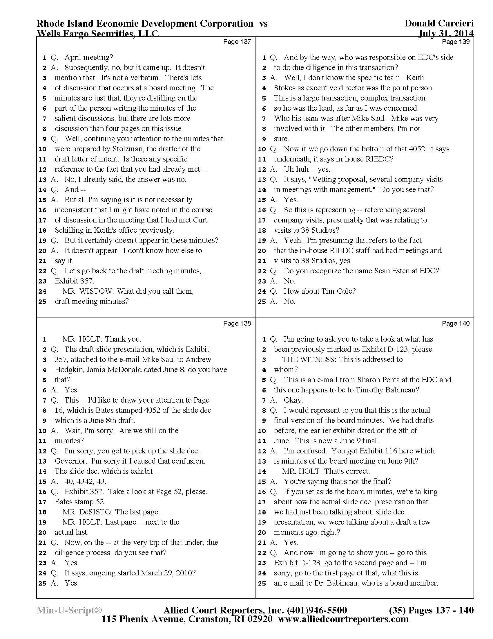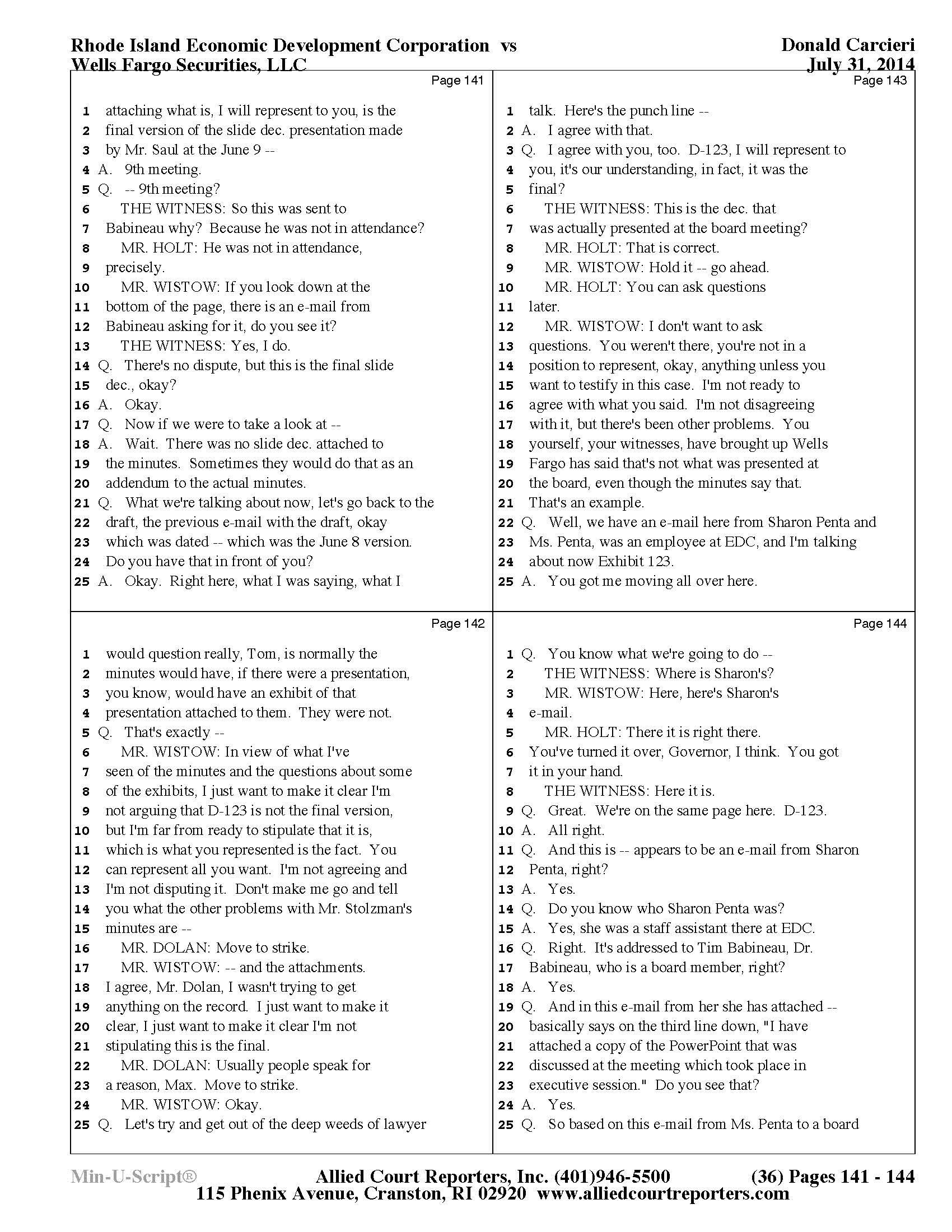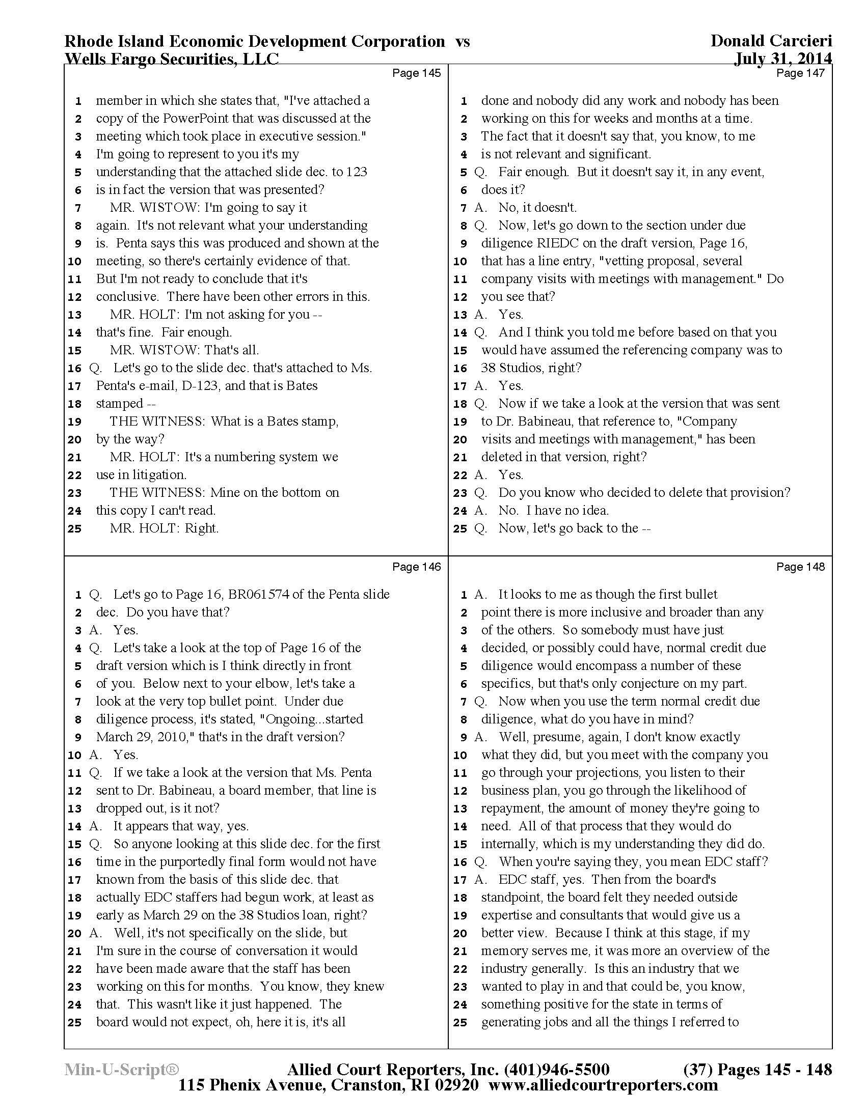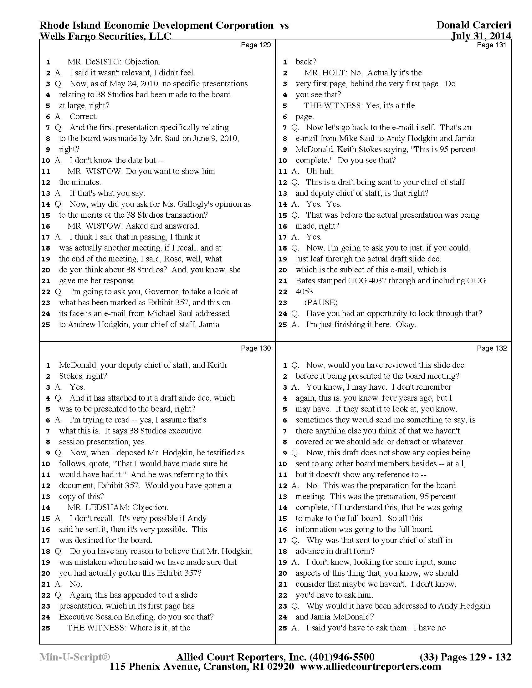 SLIDES: See Part One of Carcieri's Deposition BELOW