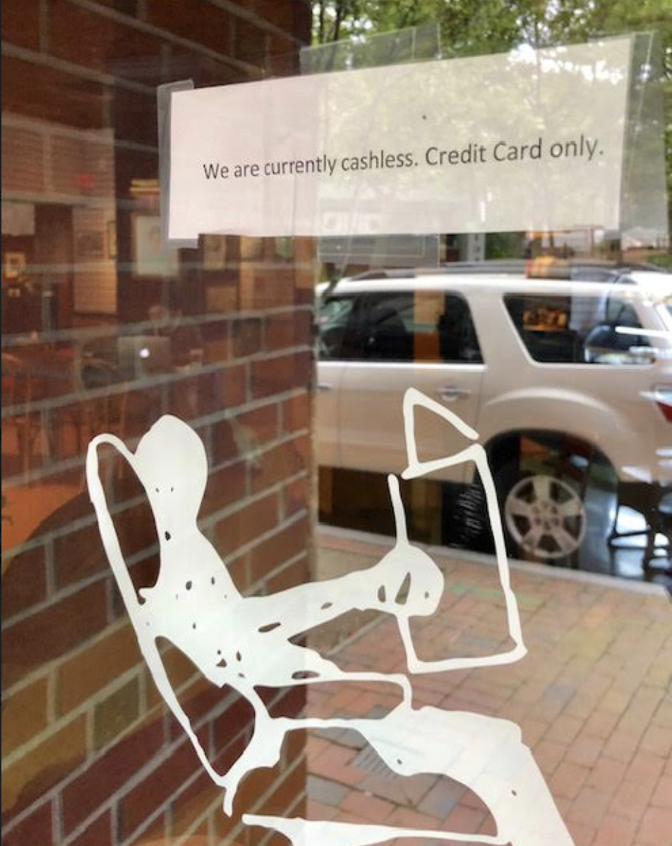 On Thursday, a sign in the window at Poindexter stated, "We are currently cashless -- credit card only" at the hotel coffee shop located on Dorrance Street -- which had previously been a Starbucks -- across from Kennedy Plaza.