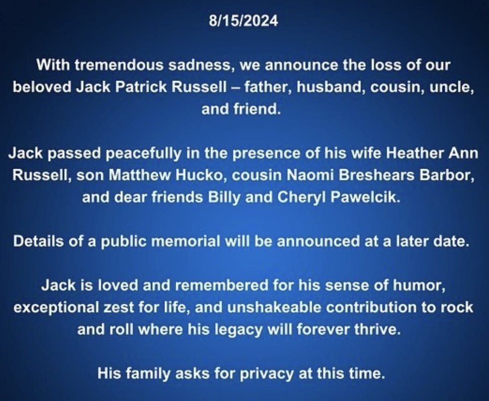 Great White Singer Jack Russell, Station Nightclub Fire Survivor, Dies at 63