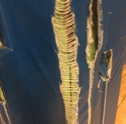 Here is another picture of a bench press rack that has been used a few too many times. This rack is ripped up and has lost pretty much all of its padding.
