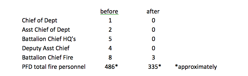 In that time frame well over 1,000 years of firefighting experience have been forced out the door. The loss of this much experience and the complete decimation of any semblance of a Command Staff has left the department in complete shambles.