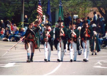 The parade stops at Soldier's Statue in front of the Police Station on Maple Ave, War Memorial at the Town Center and at the Veterans Lot at Mountain View Cemetery.
