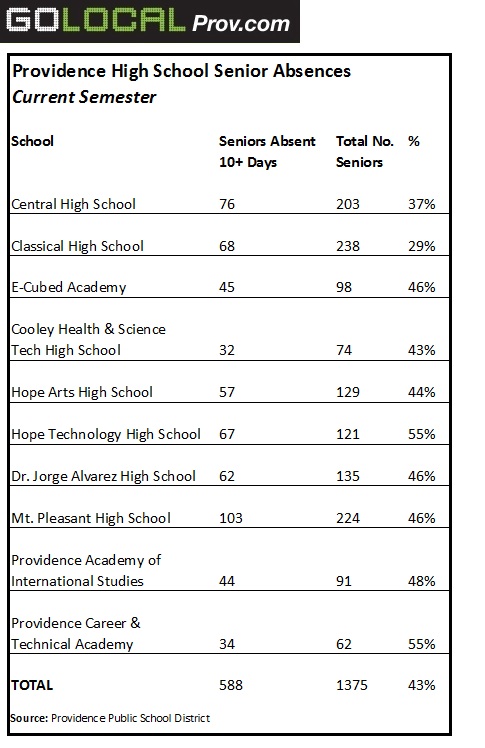 Sources in the school district tell GoLocalProv that the number of absences excused is minimal—one percent or less, according to one teacher who has worked in all the high schools.