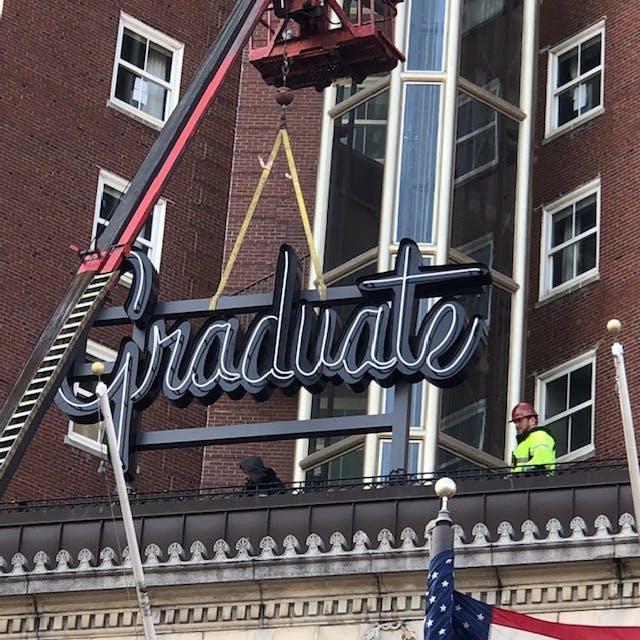 "The Biltmore sign on top of the hotel stays up," says Williams. "The building is registered as a historic landmark. Our owner, even if he could take it down, I don't think he would. He loves neon and taking old things and bringing them back to life. The Graduate sign out front is real neon -- it's not LED," said Williams. READ MORE HERE.