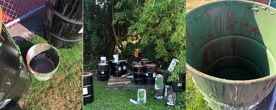 The company’s Neil Feeley, Jr. told GoLocal by email, “Everything is water based paint and nontoxic. Nothing is considered hazardous. The last day a crew was there they had to leave the site in a hurry as inclement weather arrived earlier than forecasted. Guys are there tomorrow to hopefully finish the painting, seal the drums and we should have the drums gone by early next week,”