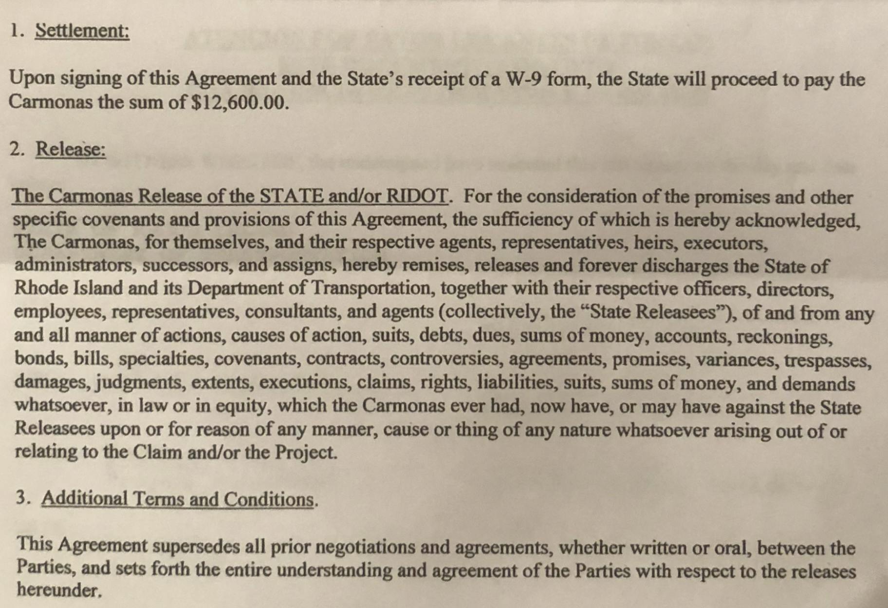 RIDOT made an offer to make the Carmonas — that came with a far-reaching release from liability.