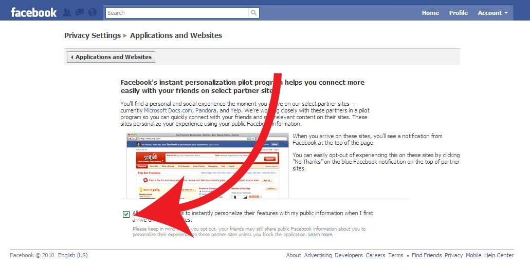In a federal class action lawsuit, a Rhode Island man is claiming the social networking site violated users’ privacy by not getting their permission or even telling them about the new feature. Instead of having the choice to opt in, users instead have to opt out—assuming they even know about Instant Personalization, not to mention where to find it.