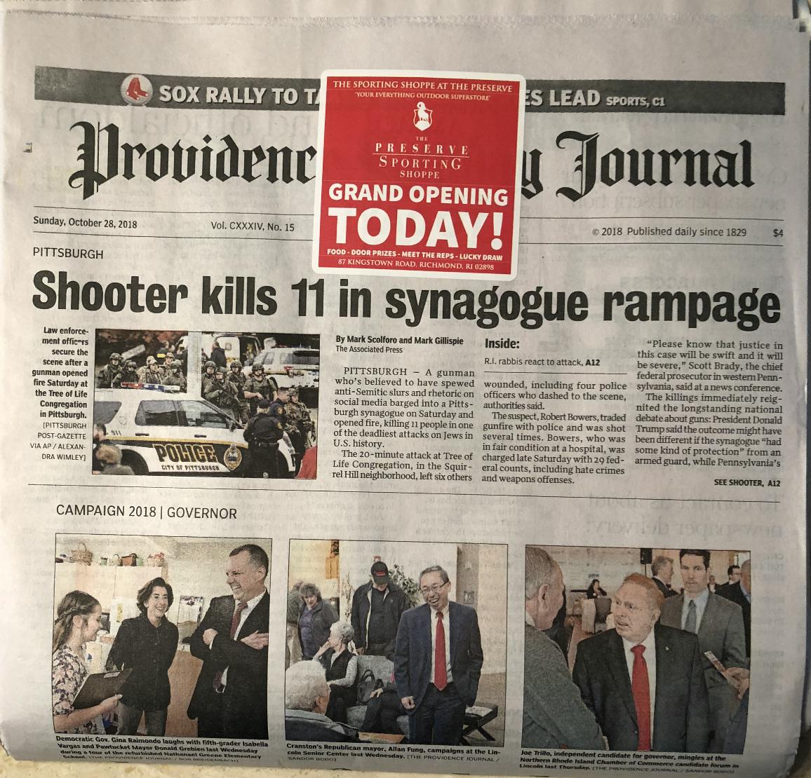 Providence Journal Gun Ad Placed on Top of Mass Shooting Story at Temple