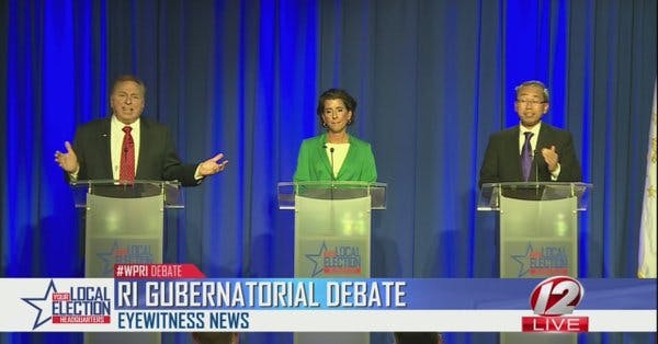 The debates for Governor turned into a verbal battle between GOP candidate Allan Fung and Independent candidate Joe Trillo with Raimondo looking like the Cheshire Cat.