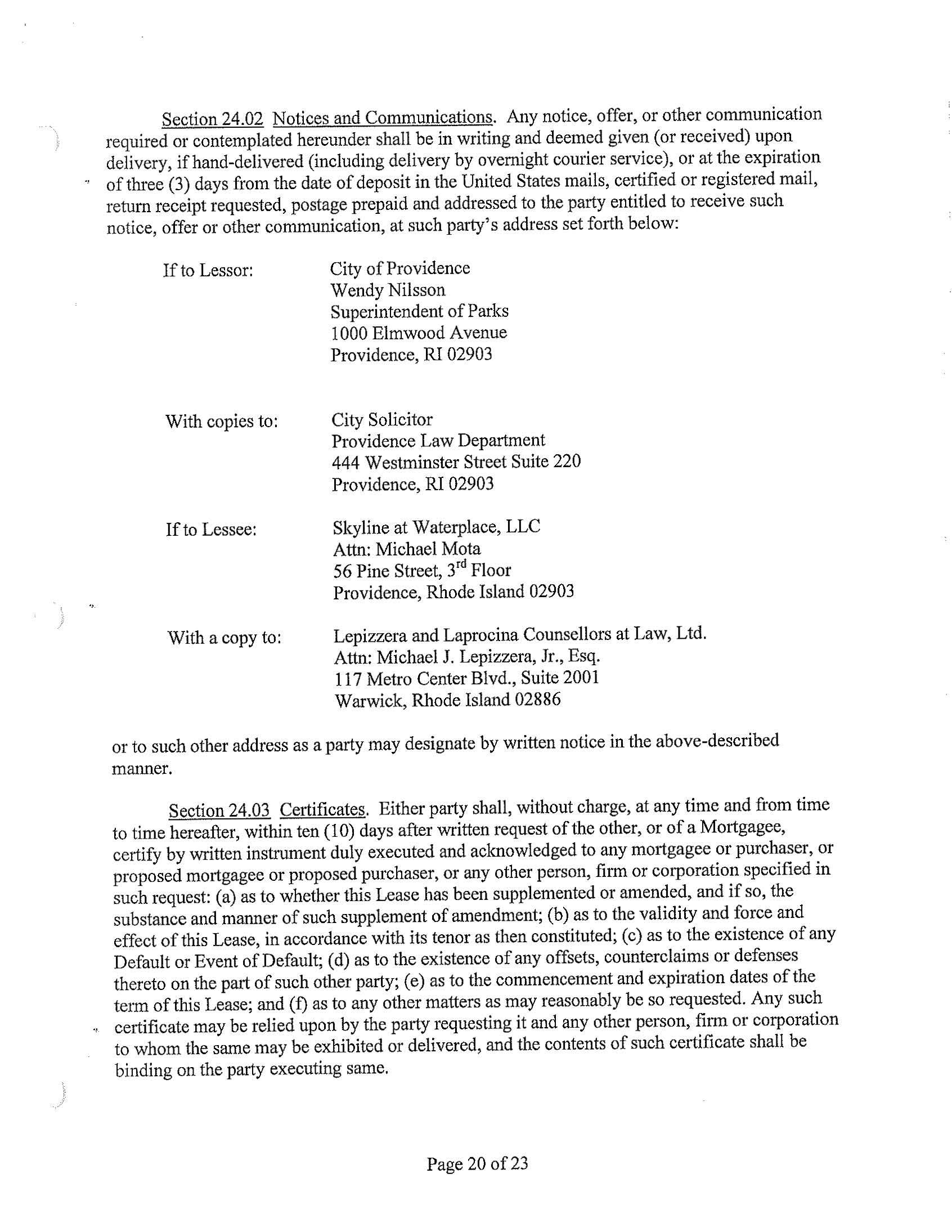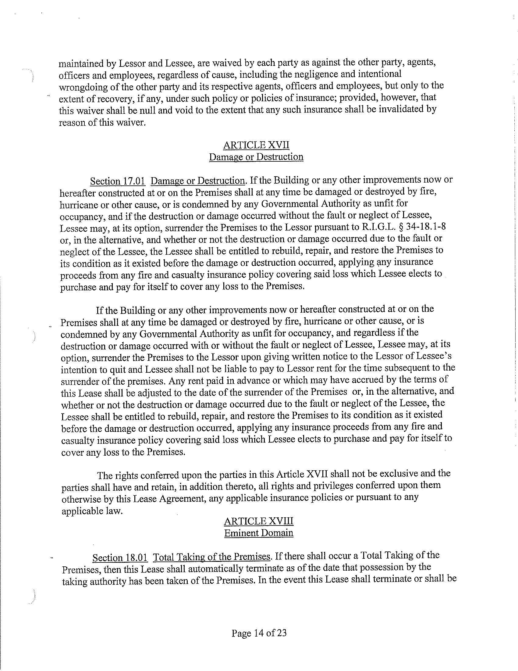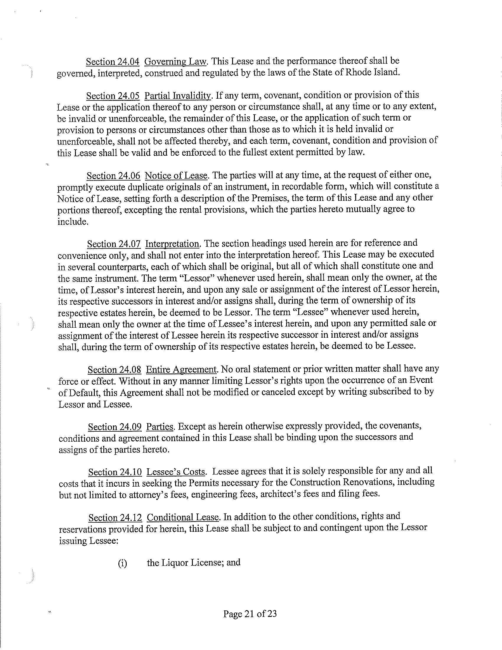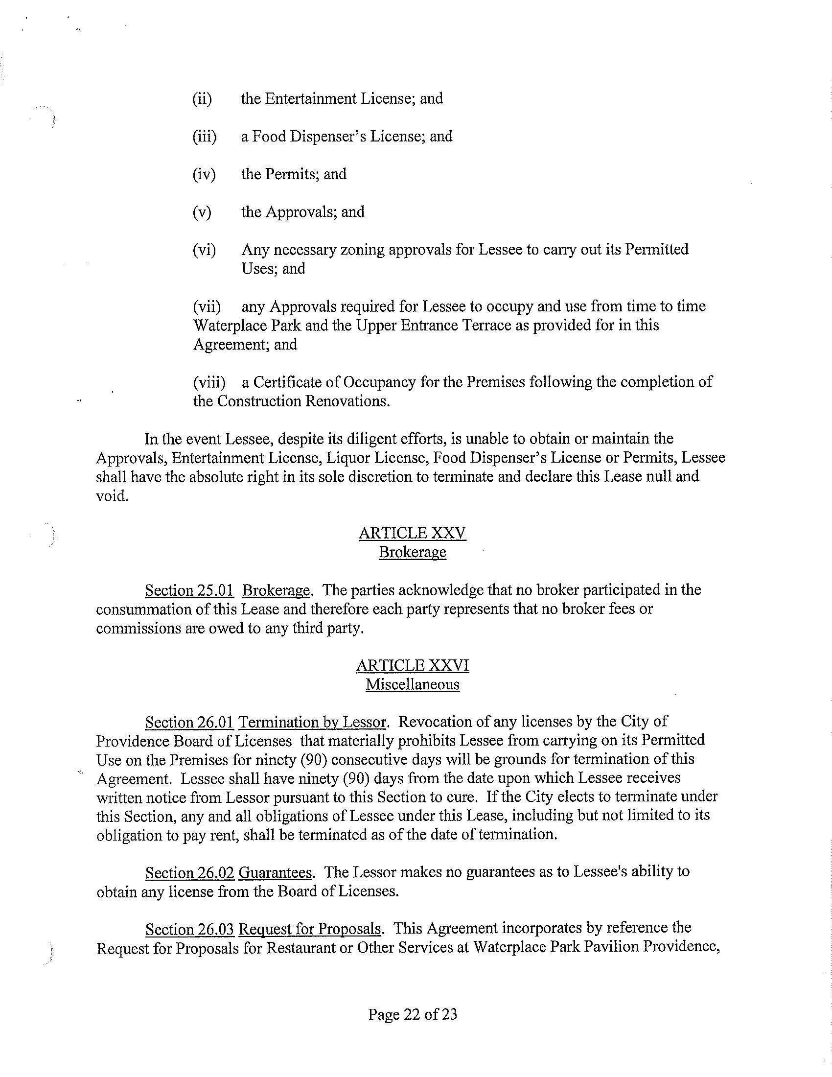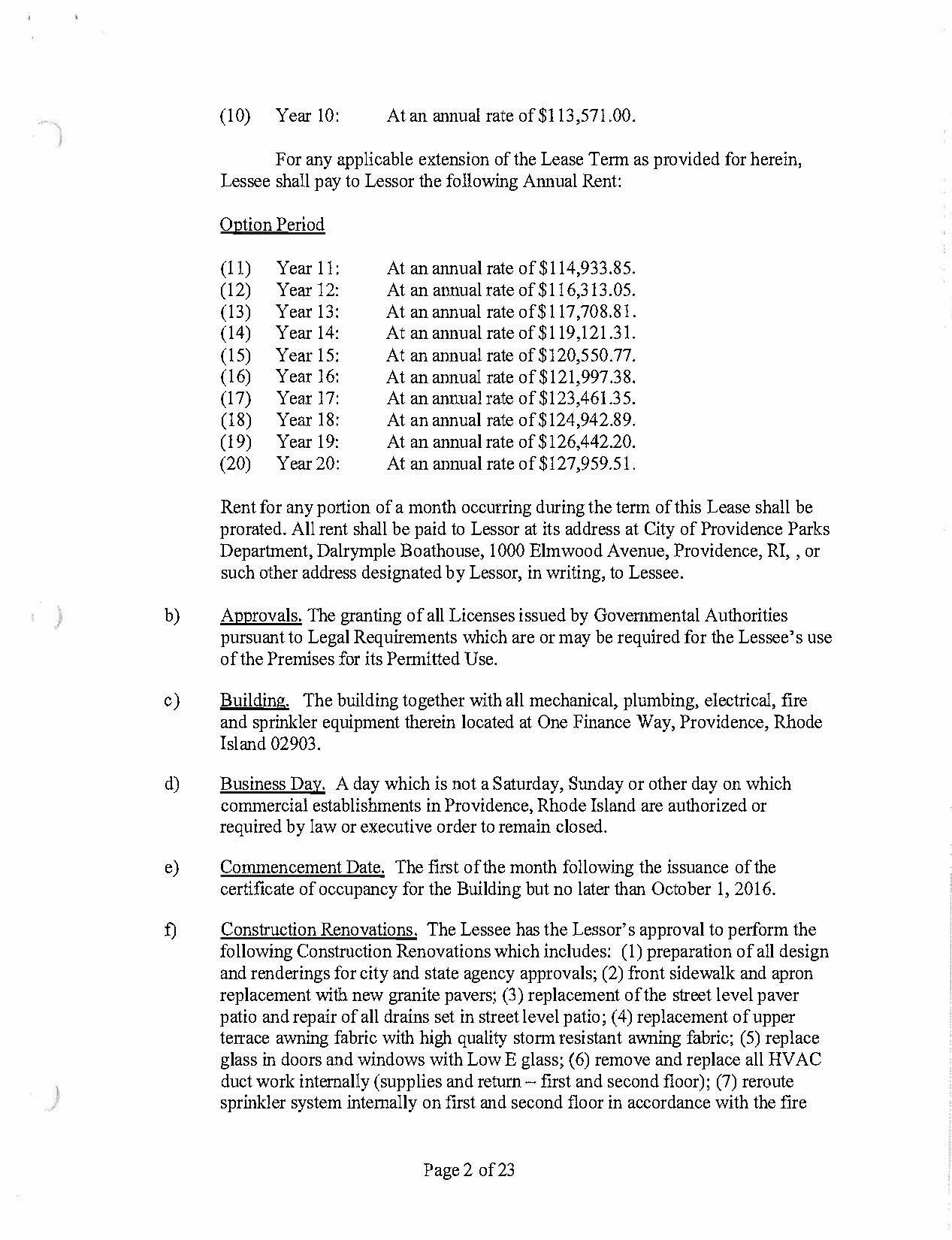 Mota and Pontarelli will pay less than one-third of their first year's payments. According to the lease signed with the city of Providence, the lease could be terminated 15 days after missing a payment.