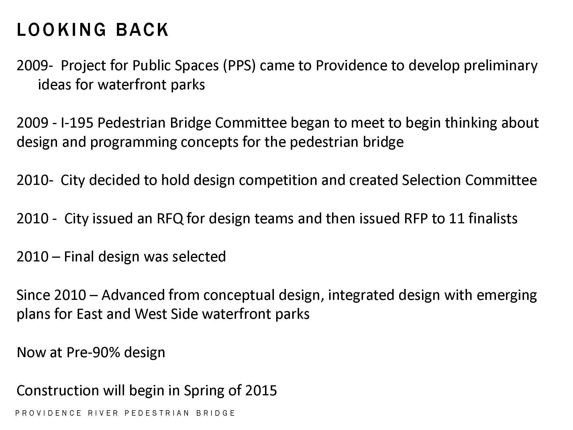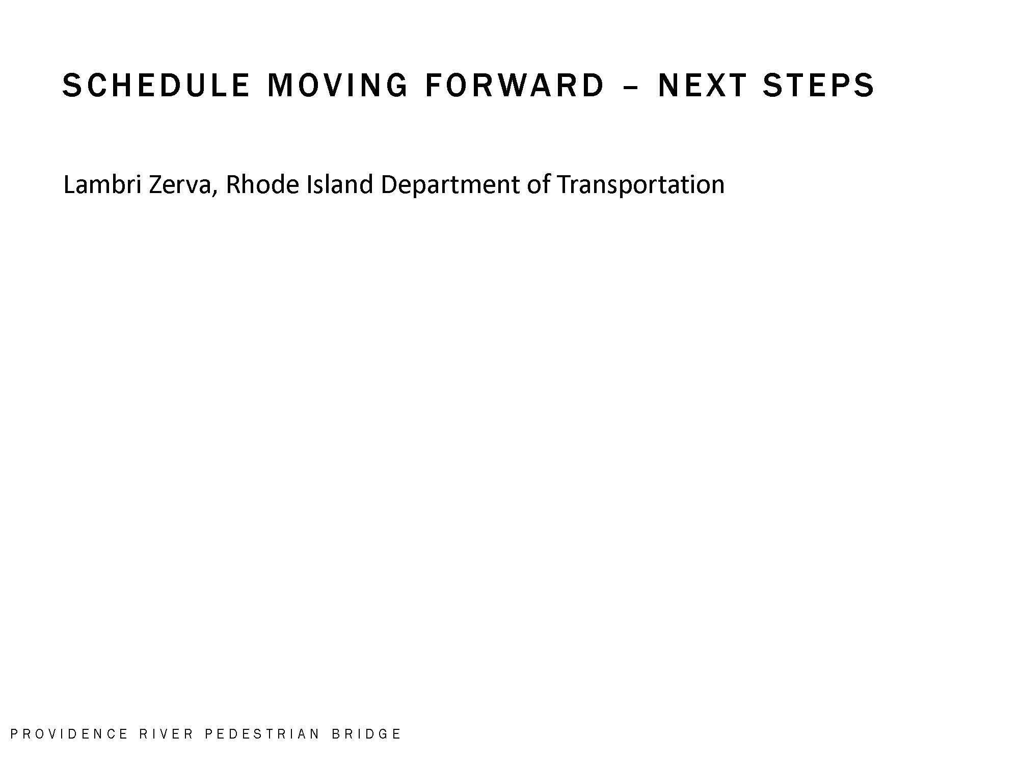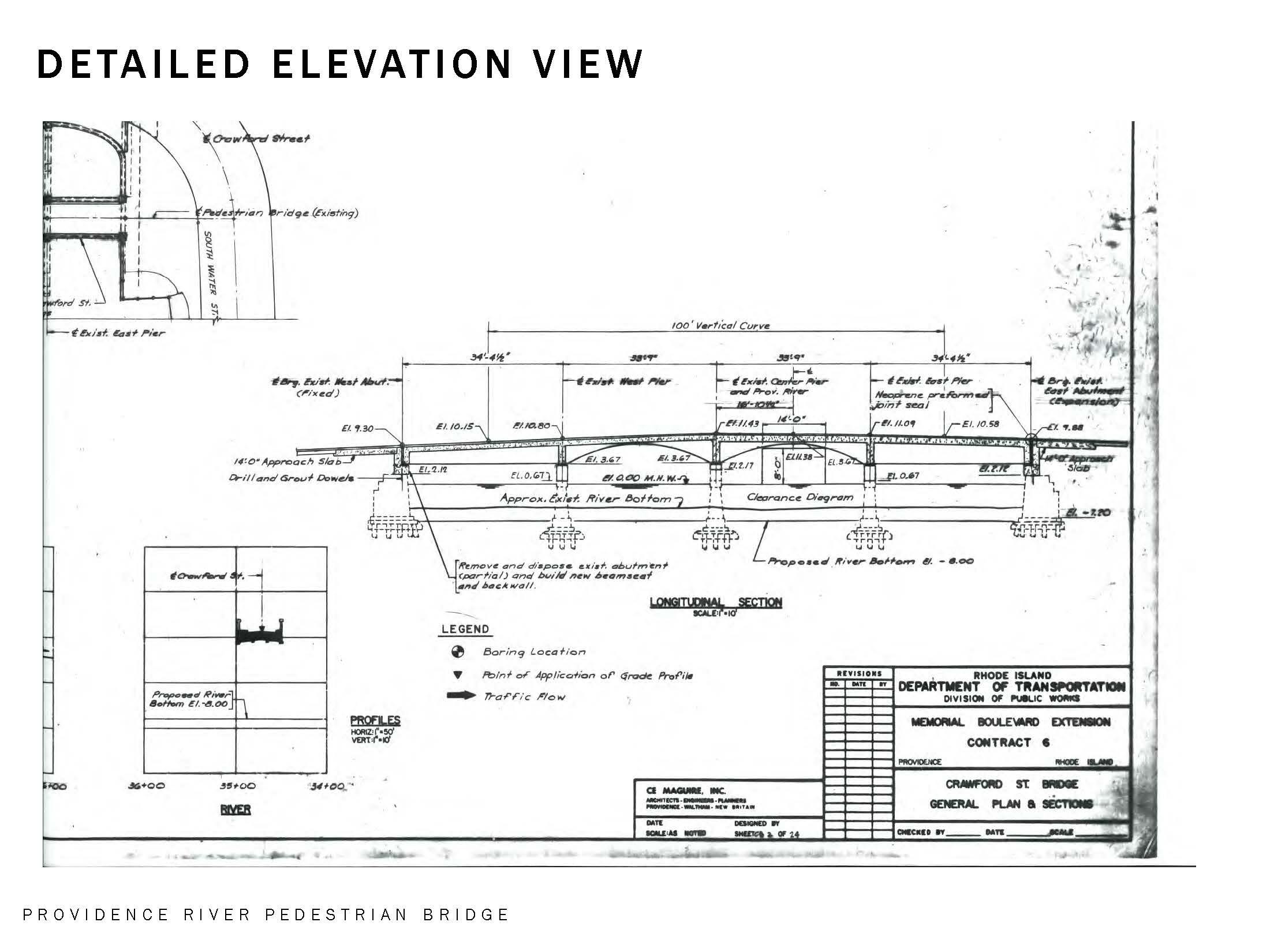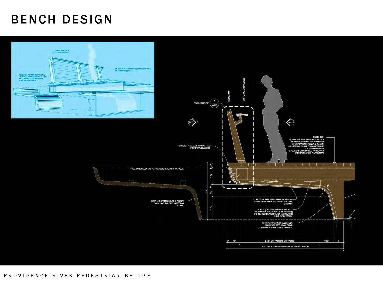 “The Providence River Pedestrian Bridge (project cost is $21.9 million) is not a typical highway bridge. It includes architectural features and uses specially fabricated items not usually associated with our bridges,” said Charles St. Martin, spokesman for the RIDOT.